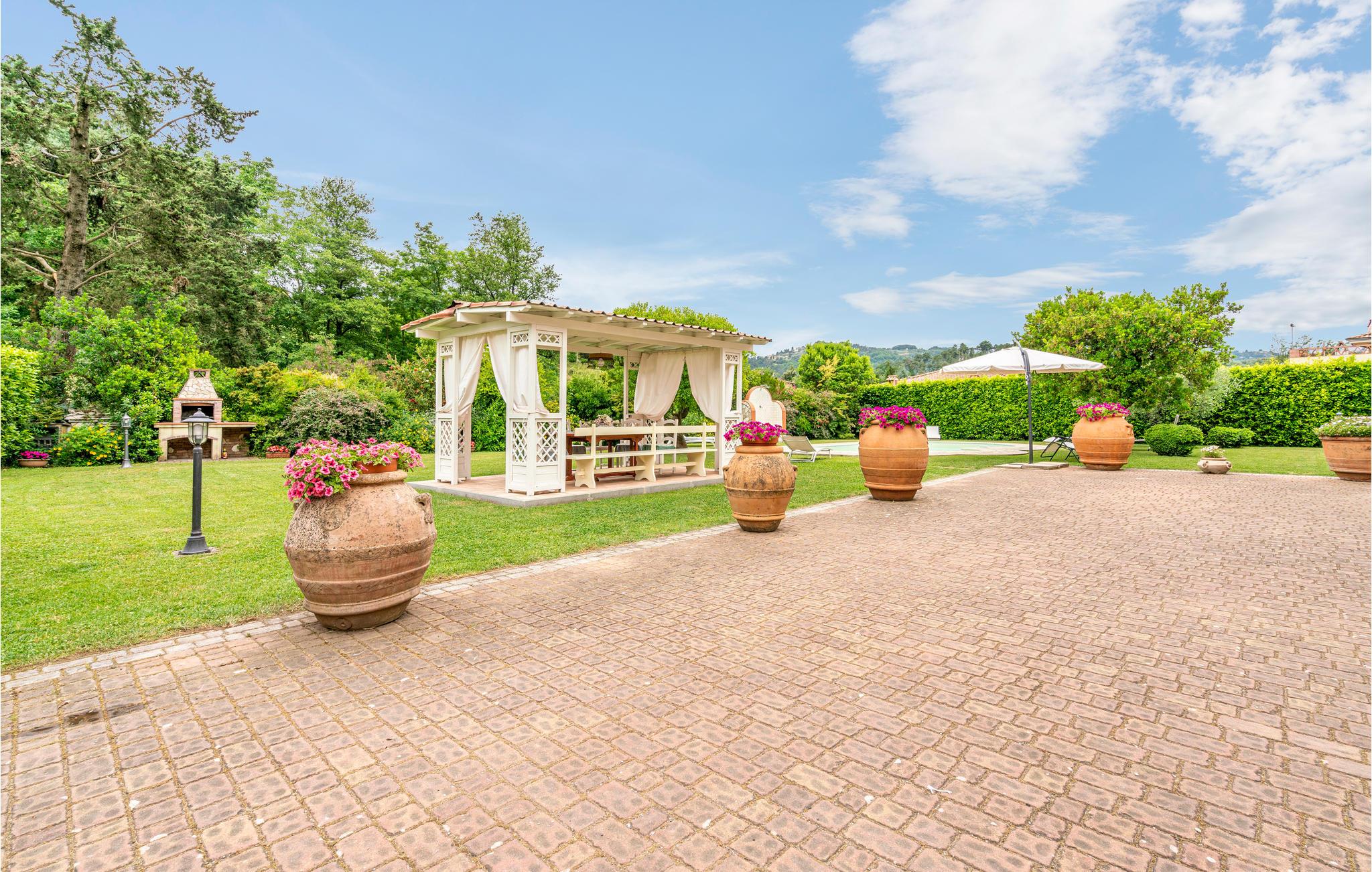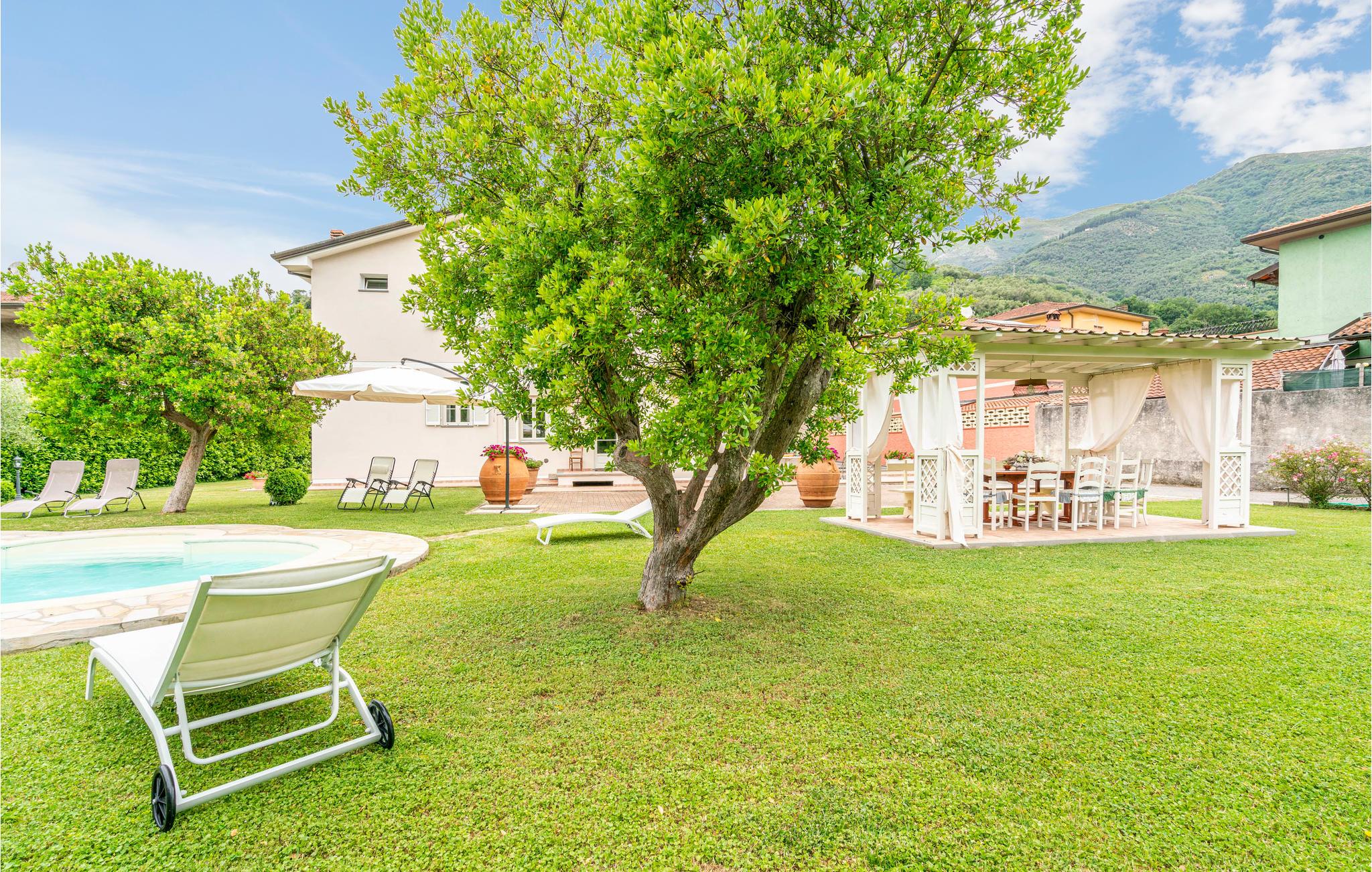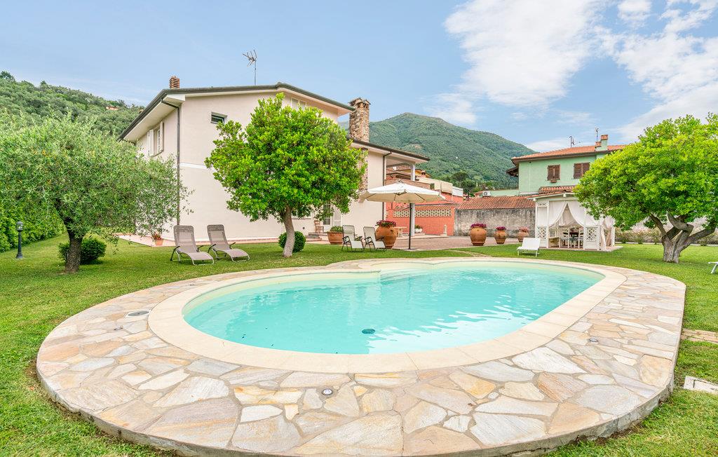 Schönes Ferienhaus mit Pool und privatem Garten, am Anfang des Dorfes Nocchi gelegen und nur 3 km von Camaiore entfernt. Dank seiner Lage bietet es einen herrlichen Blick auf die Landschaft. Das Haus ist von einem großen, gepflegten und für Mahlzeiten im Freien ausgestatteten Garten mit Pool umgeben. Parkplatz auf dem Grundstück mit automatischem Tor. Die Unterkunft ist auf drei Etagen verteilt. Das Erdgeschoss ist nicht intern mit den anderen Ebenen verbunden. Im Erdgeschoss gibt es eine große Küche, ein Wohnzimmer, zwei Schlafzimmer und zwei Badezimmer. Auf der ersten Etage befindet sich eine große Küche und Wohnzimmer mit Sat-TV. Drei Stufen führen zum Schlafbereich mit geräumigen und gepflegten Zimmern. Einige Stufen führen zu einem Doppelzimmer mit Zugang zu einer Terrasse mit Sitzecke, ideal zum Entspannen beim Lesen eines Buches oder einfach, um die Aussicht zu bewundern. Im Souterrain des Hauses wohnt der Hausmeister, der für Instandhaltung und Gartenpflege zuständig ist und gerne bei Fragen zur Verfügung steht. Alle Einrichtungen des Hauses stehen ausschließlich den Gästen zur Verfügung. Die Lage erlaubt Spaziergängern, viele Wege in der Landschaft zu genießen, einschließlich der berühmten Via Francigena. In 25 km Entfernung befindet sich die Stadt Lucca, die für ihre historischen Denkmäler und die alte Stadtmauer aus dem 16. Jahrhundert bekannt ist. Viareggio - das Herz der Versilia - mit seiner Promenade mit Restaurants und Designerboutiquen ist 15 km entfernt. Das wunderbare Florenz ist 110 km von hier entfernt und einen Besuch wert, um Santa Croce, die Uffizien, Ponte Vecchio, die Piazza della Signoria, den Palazzo Pitti und vieles mehr zu bewundern.