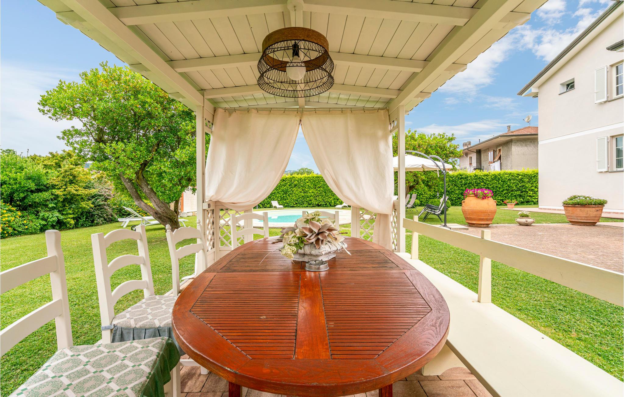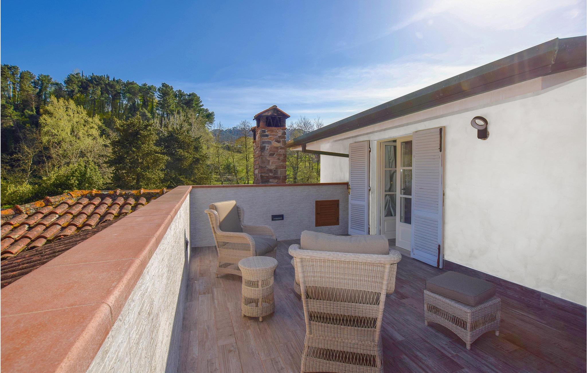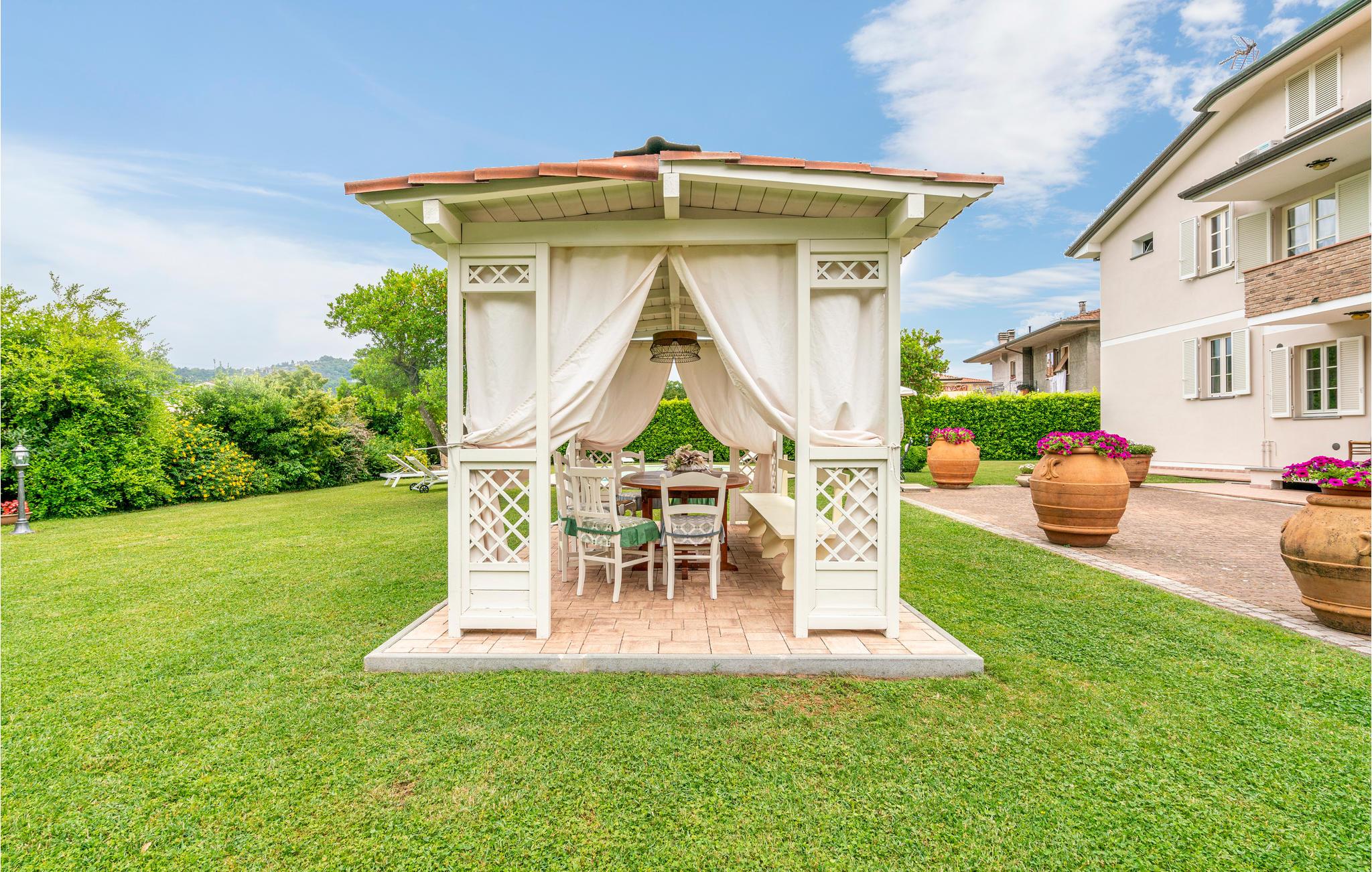 Schönes Ferienhaus mit Pool und privatem Garten, am Anfang des Dorfes Nocchi gelegen und nur 3 km von Camaiore entfernt. Dank seiner Lage bietet es einen herrlichen Blick auf die Landschaft. Das Haus ist von einem großen, gepflegten und für Mahlzeiten im Freien ausgestatteten Garten mit Pool umgeben. Parkplatz auf dem Grundstück mit automatischem Tor. Die Unterkunft ist auf drei Etagen verteilt. Das Erdgeschoss ist nicht intern mit den anderen Ebenen verbunden. Im Erdgeschoss gibt es eine große Küche, ein Wohnzimmer, zwei Schlafzimmer und zwei Badezimmer. Auf der ersten Etage befindet sich eine große Küche und Wohnzimmer mit Sat-TV. Drei Stufen führen zum Schlafbereich mit geräumigen und gepflegten Zimmern. Einige Stufen führen zu einem Doppelzimmer mit Zugang zu einer Terrasse mit Sitzecke, ideal zum Entspannen beim Lesen eines Buches oder einfach, um die Aussicht zu bewundern. Im Souterrain des Hauses wohnt der Hausmeister, der für Instandhaltung und Gartenpflege zuständig ist und gerne bei Fragen zur Verfügung steht. Alle Einrichtungen des Hauses stehen ausschließlich den Gästen zur Verfügung. Die Lage erlaubt Spaziergängern, viele Wege in der Landschaft zu genießen, einschließlich der berühmten Via Francigena. In 25 km Entfernung befindet sich die Stadt Lucca, die für ihre historischen Denkmäler und die alte Stadtmauer aus dem 16. Jahrhundert bekannt ist. Viareggio - das Herz der Versilia - mit seiner Promenade mit Restaurants und Designerboutiquen ist 15 km entfernt. Das wunderbare Florenz ist 110 km von hier entfernt und einen Besuch wert, um Santa Croce, die Uffizien, Ponte Vecchio, die Piazza della Signoria, den Palazzo Pitti und vieles mehr zu bewundern.