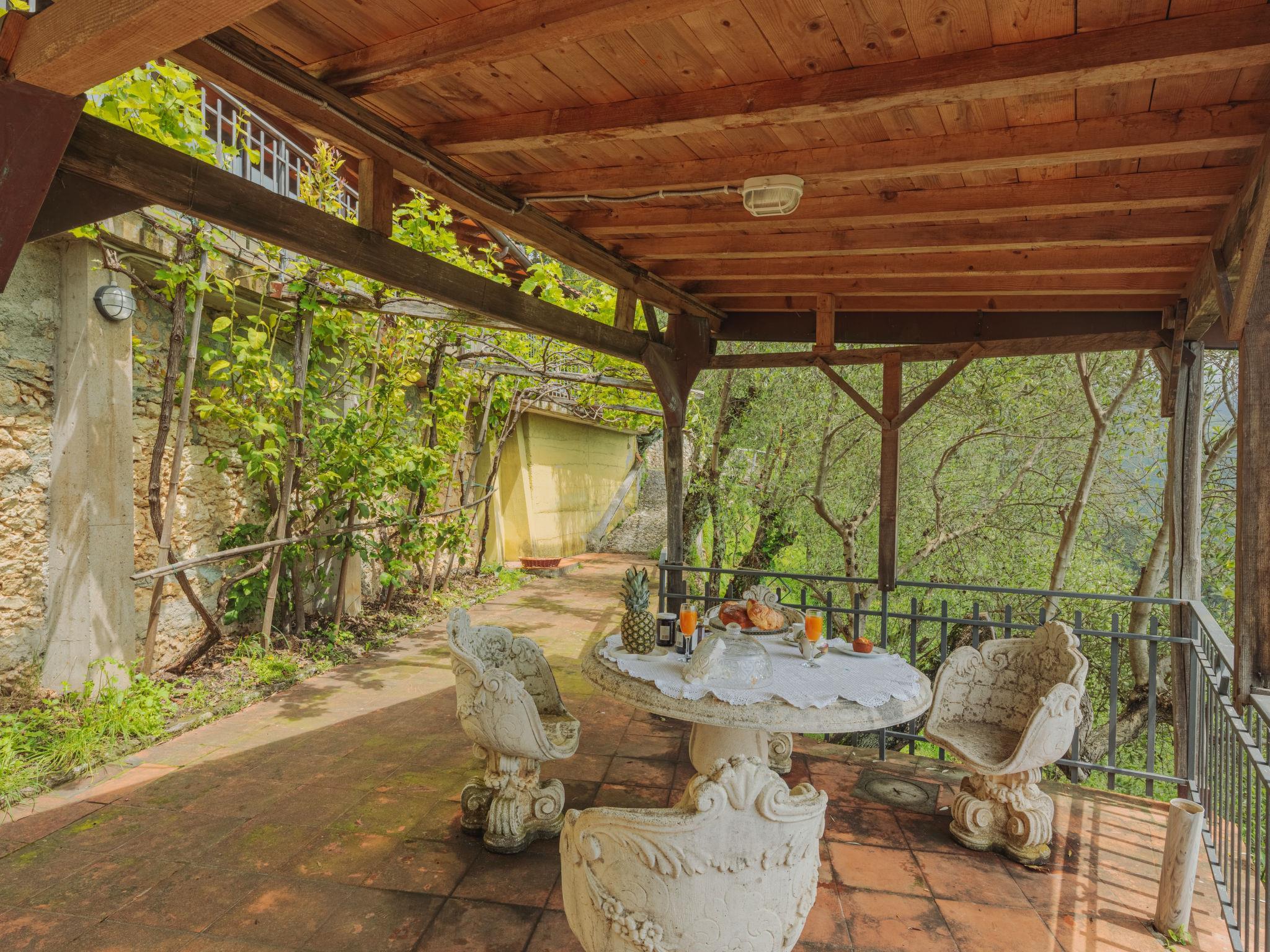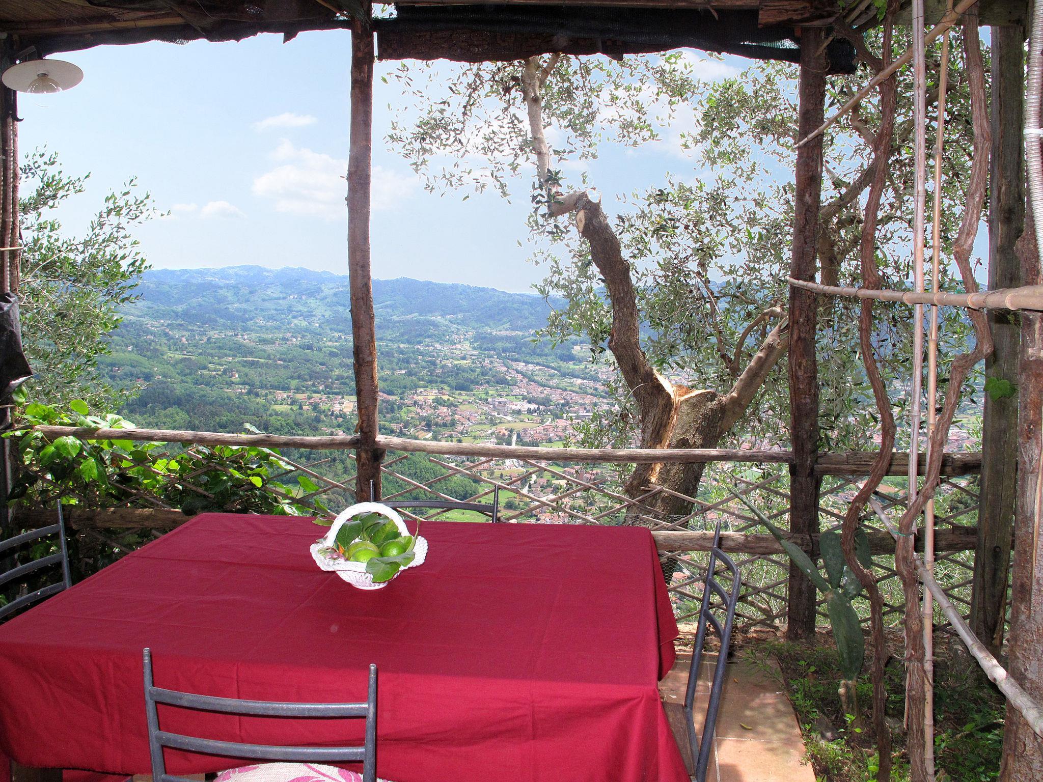 7-Zimmer-Haus 150 m2 auf 2 Stockwerken. Rustikal und mit viel Holz eingerichtet: grosses Wohnzimmer mit offenem Kamin, Esstisch und Sat-TV. Kleine, offene Küche (Backofen, 4 Flammen, Toaster, Wasserkocher, Tiefkühler, elektrische Kaffeemaschine). Dusche/WC. Ölheizung. Obergeschoss: (steile Treppe) 1 Zimmer mit 1 Doppelbett. 1 Zimmer mit 1 Doppelbett und Dusche/WC. 2 Zimmer, jedes Zimmer mit 2 Betten (80 cm), Bad/WC. (Aussentreppe) Zwischenstock mit 1 Doppelbett (160 cm), Dusche/WC. Kleine Küche (Backofen, 4 Flammen, elektrische Kaffeemaschine) mit Esstisch. Ölheizung (extra). Holzdielenboden. Grosse Terrasse überdacht, Gartensitzplatz, Laube. Terrassenmöbel, Gartengrill, Liegestühle, Abstellkammer. Sehr schöne Sicht auf die Berge, das Tal, den Wald und Riviera della Versilia. Zur Verfügung: Waschmaschine, Bügeleisen, Kinderhochstuhl, Babybett bis 2 Jahre. Internet (WLAN, gratis). Bitte beachten: Nichtraucher-Unterkunft. Maximal 2 Haustiere/Hunde erlaubt. Rauchmelder, Feuerlöscher. Keine interne Verbindung zwischen den separaten Wohneinheiten. Bei Belegung mit weniger Personen als der maximalen Personenzahl steht das Nebengebäude nicht zur Verfügung. Bei Belegung mit weniger Personen als der maximalen Personenzahl stehen nicht alle Schlafzimmer zur Verfügung. IT046005C2L37KG2TU