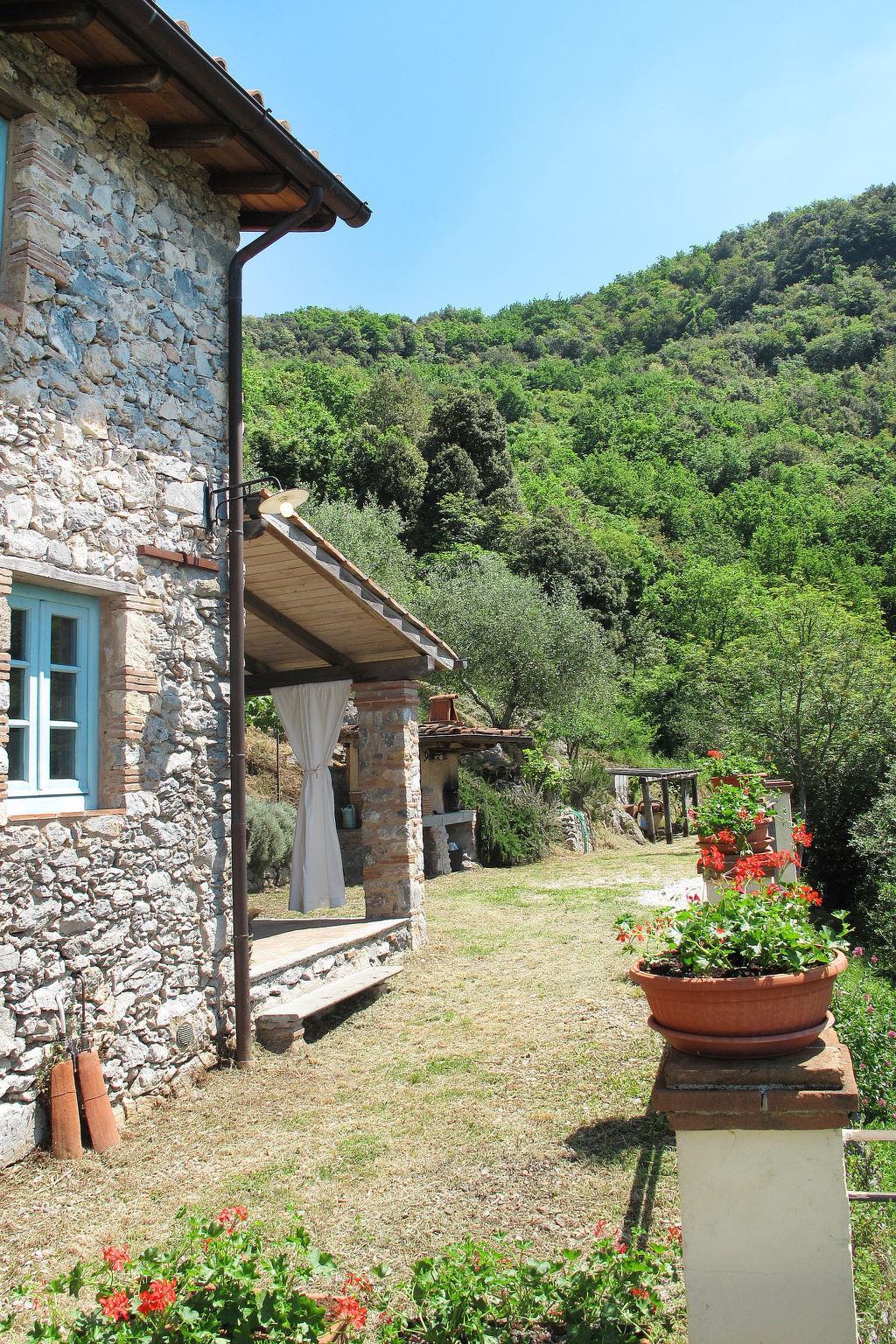 Metato 8 km von Camaiore: Gemütliches, freistehendes Rustico "Olivella", 400 m.ü.M., umgeben von Bäumen. 8.5 km vom Zentrum von Camaiore, 1.5 km vom Zentrum von Metato, ausserhalb des Ortes, 41 km vom Zentrum von Pisa, alleinstehende, sonnige Lage am Hang, direkt am Waldrand, 14 km vom Meer, 14 km vom Strand. Zur Alleinbenutzung: terrassierter Garten, 5'000 m2 (nicht eingezäunt) mit Bäumen, Naturgarten, Wiese, Aufstellpool (4 x 3 m, 100 cm tief, saisonale Verfügbarkeit: 06.Mai. - 30.Sep.). Im Hause: Zentralheizung, Heizung vor Ort zu zahlen (28.Mar. - 30.Okt.), Heizung nur verfügbar von 31.Okt. - 27.Mar.. Steile, schmale Zufahrt (600 m Naturweg). Parkplatz (für 2 Autos) auf dem Grundstück. Supermarkt 5 km, Restaurant 5 km, Bushaltestelle 550 m, Bahnstation "Viareggio" 17.5 km, Sandstrand "Lido di Camaiore" 14.5 km. Nahe gelegene Sehenswürdigkeiten: Forte dei Marmi 27 km, Candalla Waterfalls 5 km, Grotta del Tambugione 1 km, Lucca 41 km, Riomaggiore (5 Terre) 84 km, Firenze 127 km. Bekannte Seen in der Umgebung sind gut erreichbar: Torre del Lago 27 km. Wandergebiete: Grotta all´Onda 13 km. Bitte beachten: Fahrzeug empfohlen. Ab Hof Verkauf von bäuerlichen Produkten.