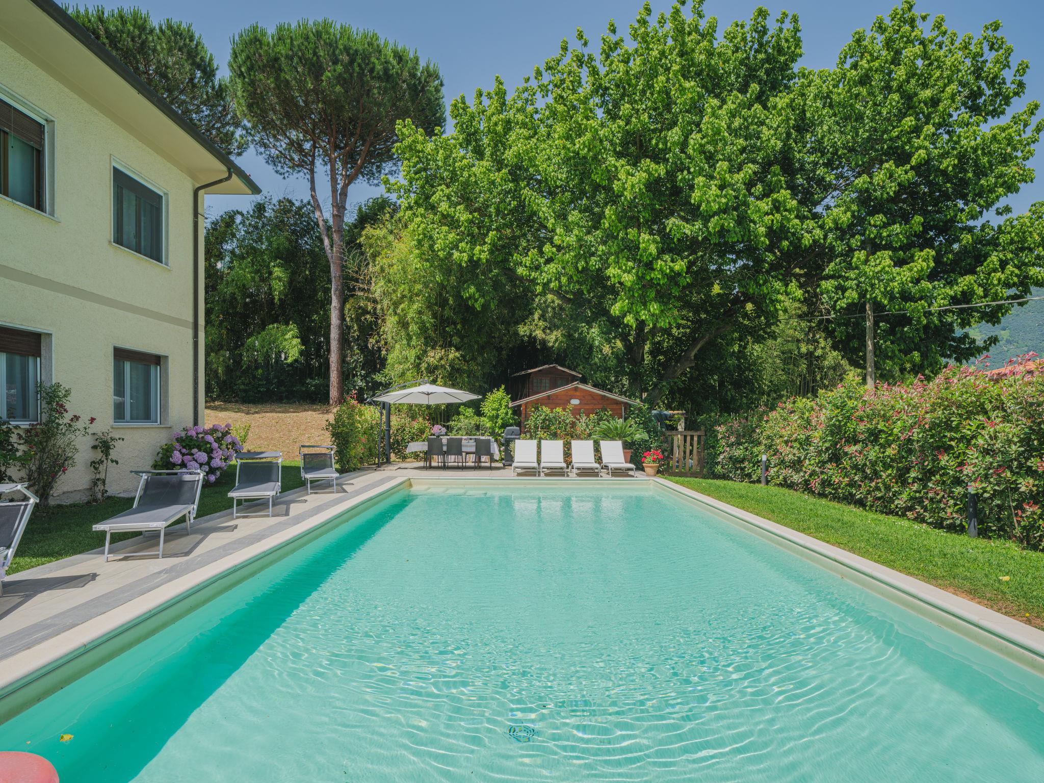 Zweifamilienhaus "Gerry House", renoviert im Jahre 2024, umgeben von Feldern. 2 Wohnungen im Ferienhaus. 2.4 km vom Zentrum von Camaiore, am Ortsrand, 8.5 km vom Zentrum von Lido di Camaiore, 26 km vom Zentrum von Lucca, 8.5 km vom Meer, 8.5 km vom Strand. Zur Mitbenutzung: Schwimmbad (12 x 6 m, 130 cm tief, saisonale Verfügbarkeit: 04.Mai. - 04.Okt.). Aussendusche, Gartenmöbel, Grill, Poolpflege durch den Besitzer/Gärtner. Zur Alleinbenutzung: Grundstück mit Rasen und Pflanzen, Naturgarten. Im Hause: Zentralheizung, Waschmaschine (zur Mitbenutzung), Heizung vor Ort zu zahlen (20.Mar. - 30.Okt.), Heizung nur verfügbar von 31.Okt. - 19.Mar.. Parkplatz beim Haus. Lebensmittelgeschäft 1.3 km, Supermarkt 1.4 km, Restaurant 1.6 km, Bar 950 m, Bäckerei 750 m, Fahrradverleih 11 km, Bushaltestelle 750 m, Bahnstation "Viareggio" 110 m, Sandstrand "Lido di Camaiore" 8.5 km. Nahe gelegene Sehenswürdigkeiten: Pietrasanta 9 km, Forte dei Marmi 16 km, Marina di Pietrasanta 12 km, Pisa 32 km, Carrara Cave Fantiscritti 45 km, Riomaggiore 5 Terre 78 km. Bekannte Seen in der Umgebung sind gut erreichbar: Torre del Lago 17 km, Lago di Massaciuccoli 24 km. Wandergebiete: Antro del Corchia Levigliani 28 km, Grotta all´Onda Casoli 12 km. Bitte beachten: Fahrzeug empfohlen. Der Besitzer akzeptiert keine Jugendgruppen. Weitere Unterkünfte sind buchbar. Die Nachbarschaft ist sehr lärmempfindlich. Ruhe und gutes Benehmen wird erwartet.