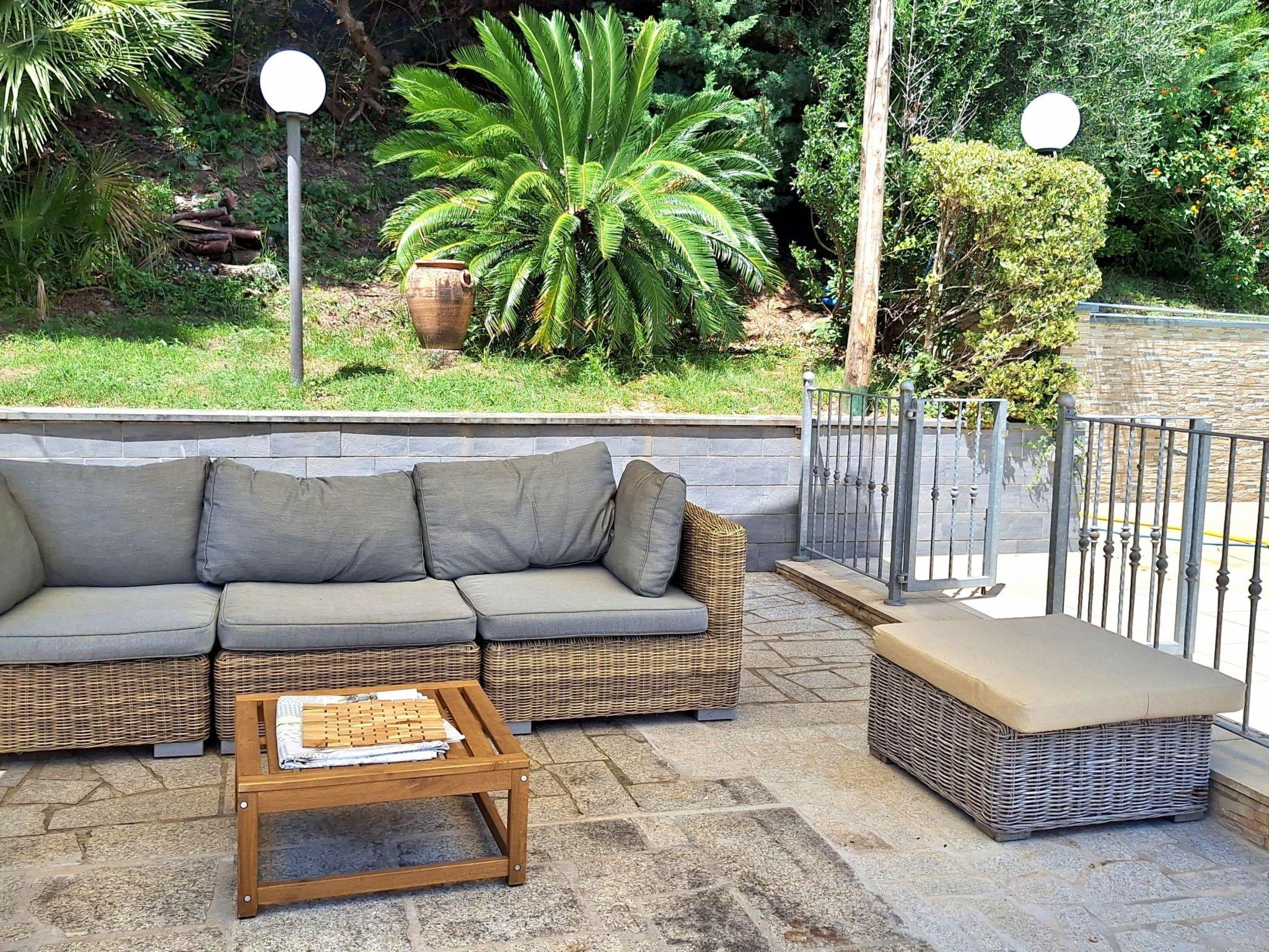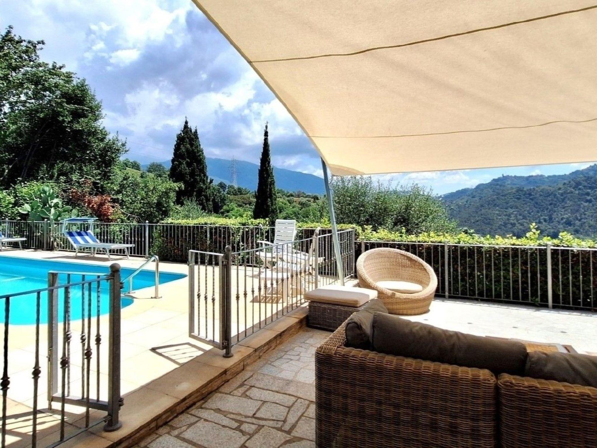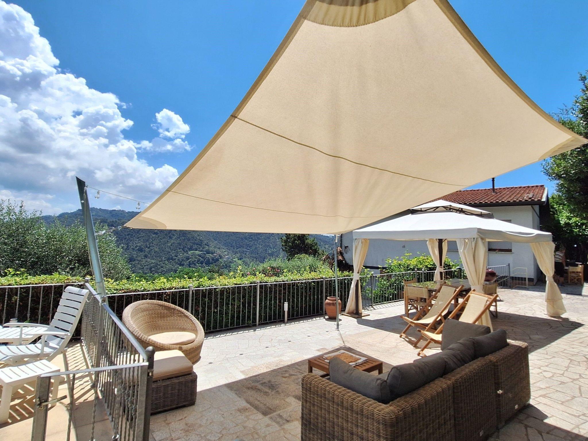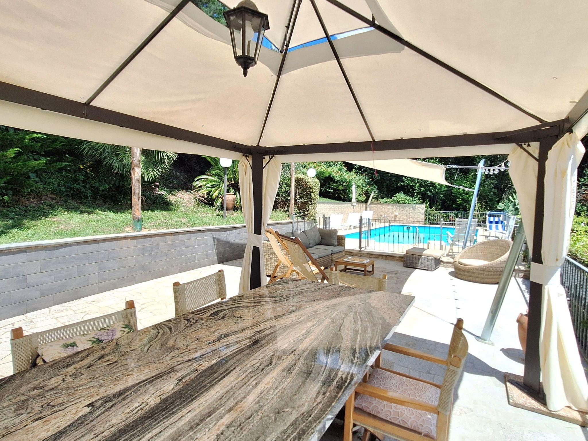 Der Außenbereich: Auf der Hauptebene befindet sich der große und brandneue 12 Meter lange Swimmingpool und die Panoramaterrasse, die mit komfortablen Außenmöbeln ausgestattet ist, beide aus dem Jahr 2011.
