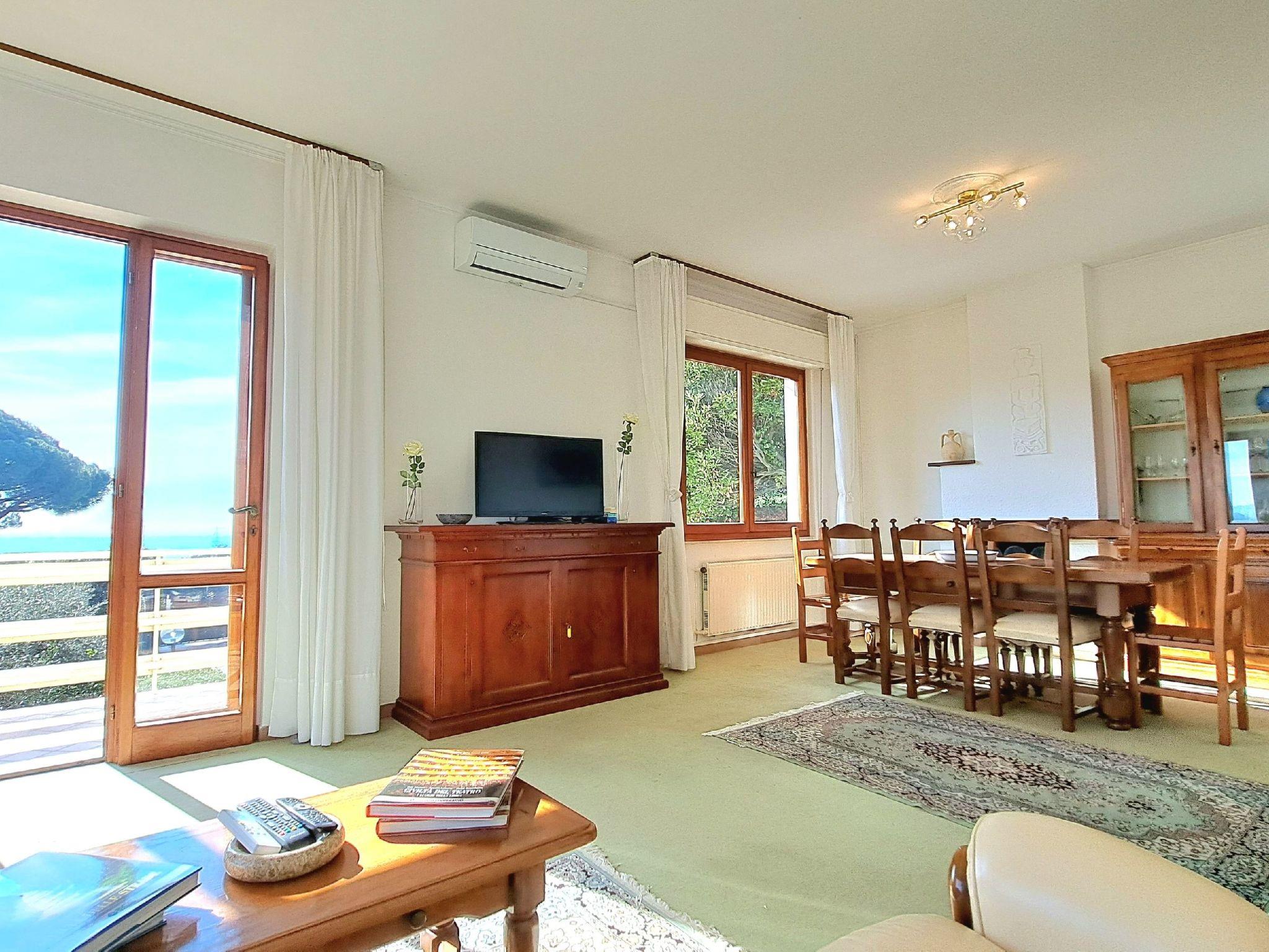 großes Wohnzimmer mit Terrasse mit Blick auf das Meer,