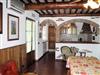 Ausstattung: Ansprechende, rustikale Einrichtung mit viel Holz. Cotto- und Parkettböden. Teils Holzbalkendecken. Sat-TV. Internetzugang (WLAN, inklusive). Keine Heizmöglichkeit. Die Wohnfläche von ca. 100 m² befindet sich Ebenerdig. Wohnraum mit Sitzcouch, Kamin (nur Dekoration) und Essplatz, durch offenen gemauerten Rundbogen zur Küche (Flammen, Mikrowelle, Kühlschrank, Kaffeemaschine). Schlafzimmer mit französischem Bett (1,60 m breit) und Balkonausgang. Zweibettzimmer (Betten 0,80 m breit, zusammenstellbar). Bad mit Dusche/WC.