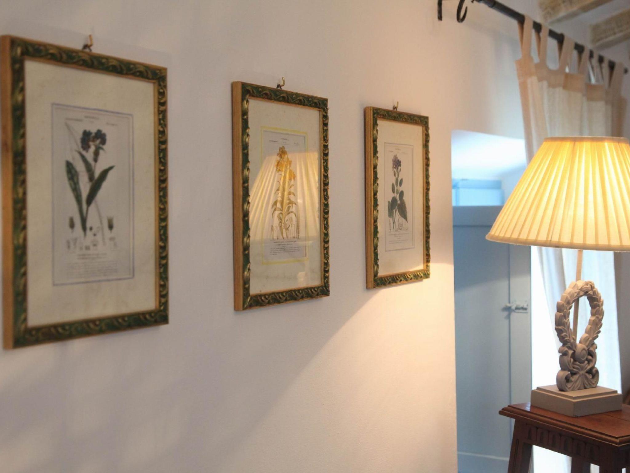 Das Haus erstreckt sich über 3 Etagen und wurde von den Eigentümern selbst sorgfältig renoviert (es ist ihr "Traumnest"), wobei die ursprüngliche Architektur respektiert wurde. Wi-Fi Internet und Moskitonetze sind vorhanden. Erdgeschoss: Küche (Kühlschrank, Backofen, Mikrowelle, Gasherd, Kaffeemaschine, Toaster), Esstisch und Bad mit Dusche. Am Eingang gibt es einen kleinen Raum mit einer Waschmaschine. Erster Stock: schönes Wohnzimmer mit Doppelschlafcouch, Kamin, Sofas und zwei Fenstern mit schöner Aussicht; TV, CD- und DVD-Player, Ausgang zur Terrasse und zum Garten. Zweiter Stock: Doppelzimmer mit Klimaanlage und zusätzlichem Einzelbett.