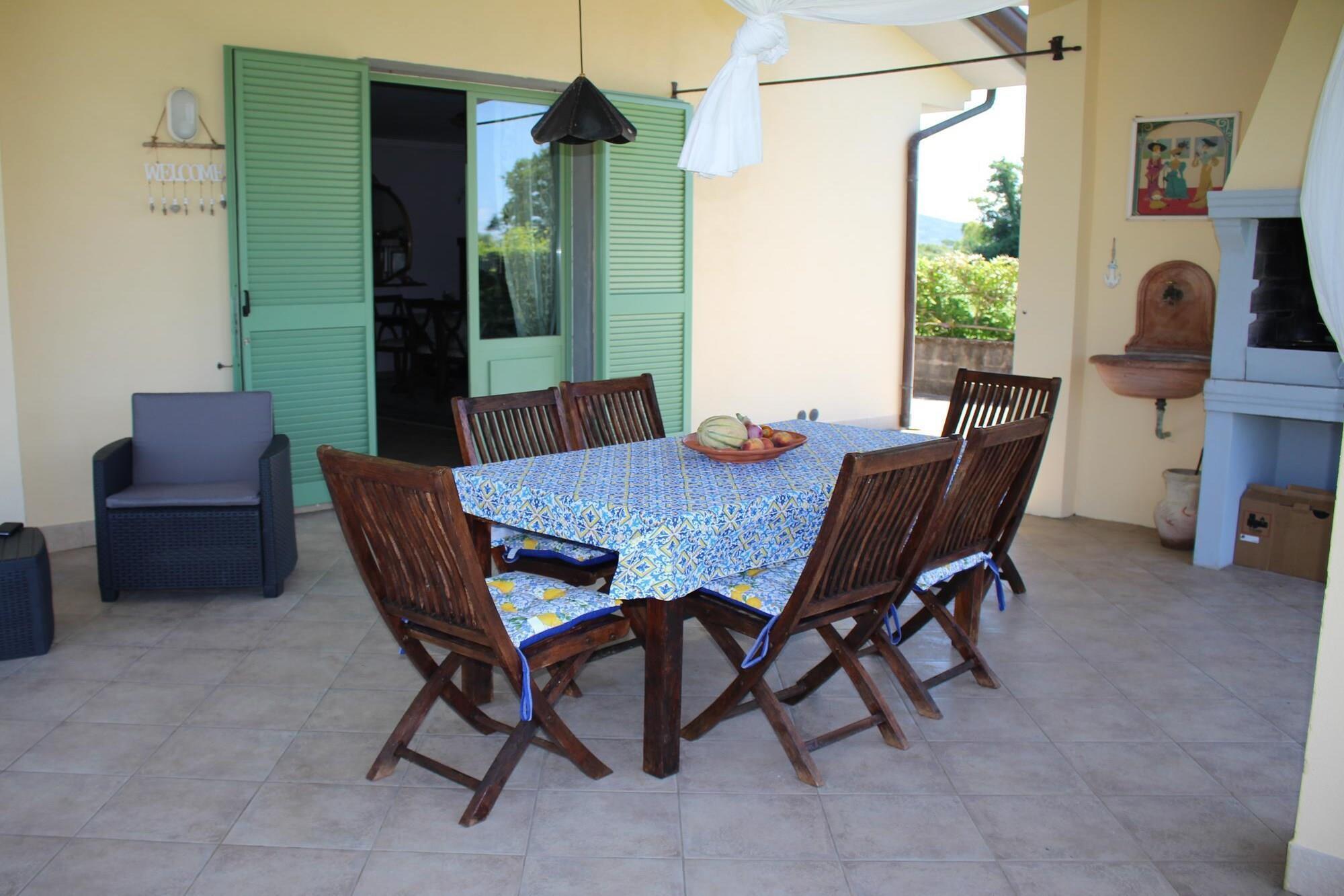 Parterre: (Küche(Kochplatte(5 Kochplatten, Gas), Toaster, Kaffeemaschine, Backofen, Mikrowelle, Spülmaschine, Kühl-/Gefrierkombination), Wohn/Esszimmer(TV(Satellit, Deutsch Fernsehsender)), Schlafzimmer(Doppelbett), Schlafzimmer(2x Einzelbett), Schlafzimmer(Französisches Bett), Schlafzimmer mit Badezimmer(Doppelbett, Dusche, Toilette, Bidet), Badezimmer(Whirlwanne, Toilette, Bidet), Badezimmer(Dusche, Toilette, Bidet), Abstellraum) Grill, Dusche(im Garten), Waschmaschine, Heizung(Gas), Terrasse(überdacht), Dachterasse, Garten, Gartenmöbel, Liegen, Parkplatz, Sonnenschirm, Klimaanlage (kostenpflichtig), Pool(alleinige Nutzung, im Garten, geöffnet von Mai bis einschließlich Sep)