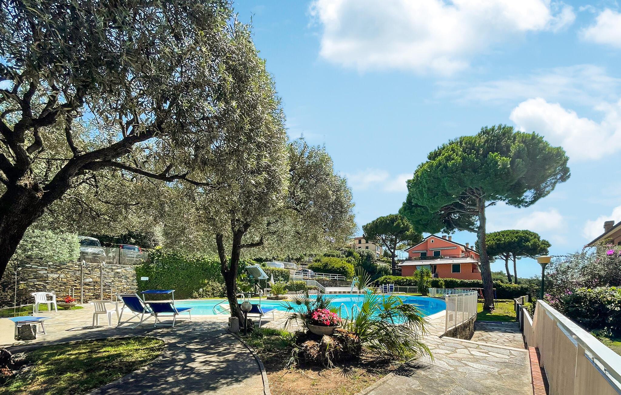 Entspannen Sie sich in dieser hellen und praktischen Ferienwohnung mit Zugang zum Pool.