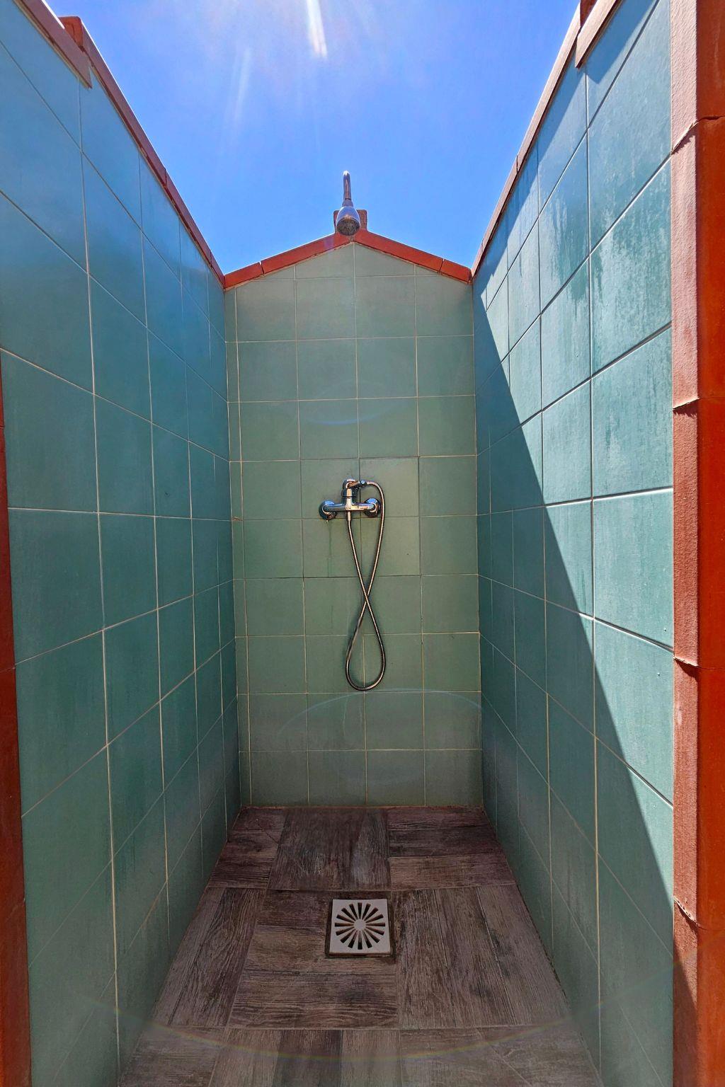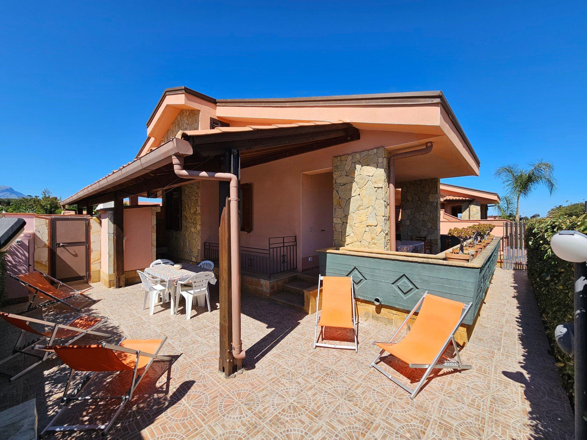 Der Außenbereich der Villa hat eine Veranda, die als Essbereich genutzt werden kann, einen großen Garten und einen Grillplatz. Im Garten gibt es auch eine Dusche, eine Toilette, ein Waschbecken und ein Fußwaschbecken, die für lange Nachmittage beim Sonnenbaden oder bei der Rückkehr vom Meer sehr nützlich sind. Der Privatparkplatz für Autos und Motorräder ist kostenlos.