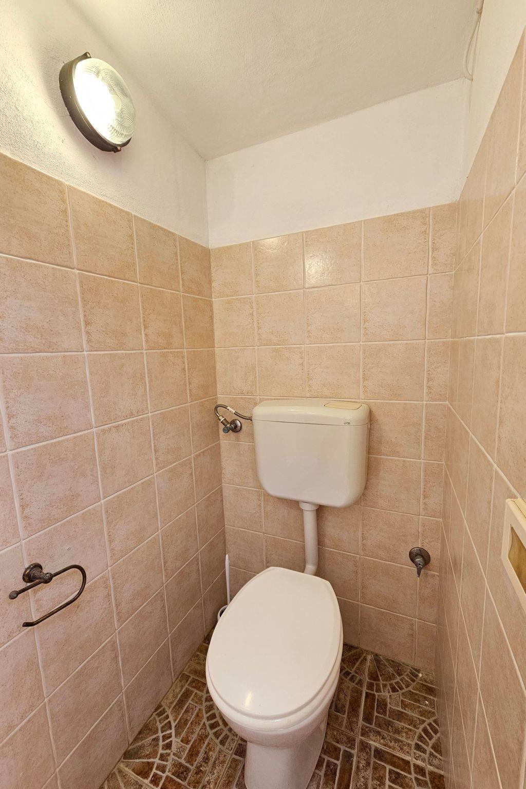 Der Außenbereich der Villa hat eine Veranda, die als Essbereich genutzt werden kann, einen großen Garten und einen Grillplatz. Im Garten gibt es auch eine Dusche, eine Toilette, ein Waschbecken und ein Fußwaschbecken, die für lange Nachmittage beim Sonnenbaden oder bei der Rückkehr vom Meer sehr nützlich sind. Der Privatparkplatz für Autos und Motorräder ist kostenlos.