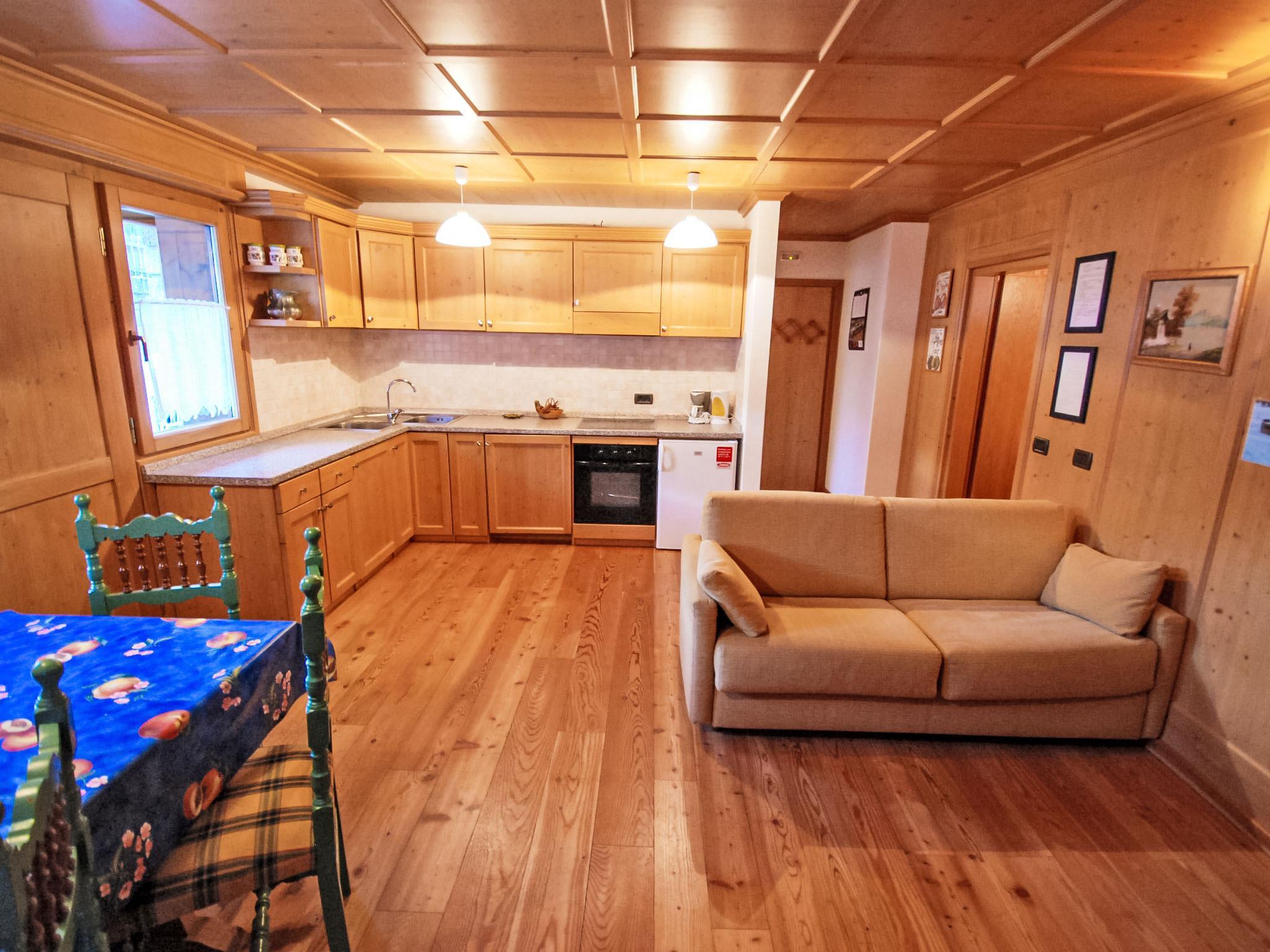 2-Zimmer-Wohnung 50 m2, unteres Geschoss. Schön und mit viel Holz eingerichtet: Wohn-/Schlafzimmer mit 1 Doppeldiwanbett (140 cm, Länge 200 cm), Esstisch und Sat-TV (Flachbildschirm). 1 Zimmer mit 2 Betten. Grosse Kochnische (4 Kochplatten, Backofen, Geschirrspüler). Dusche/Bidet/WC. Zur Verfügung: Waschmaschine. Internet (Wireless LAN, gratis). Parkplatz (1 Auto). Bitte beachten: Maximal 1 Haustier/Hund erlaubt. Feuerlöscher. IT022039B4MA9453LE