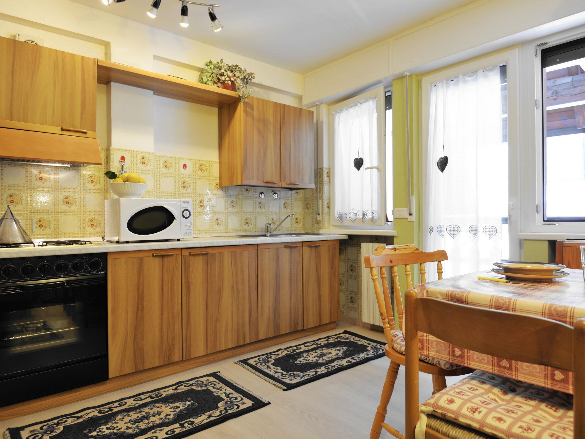 2-Zimmer-Wohnung 45 m2 im 2. Stock. Zweckmässig und komfortabel eingerichtet: Wohn-/Esszimmer mit 1 Doppeldiwanbett, Esstisch und TV (Flachbildschirm). Ausgang zum Balkon. 1 Doppelzimmer. Kochnische (4 Kochplatten, Backofen, Geschirrspüler, Mikrowelle). Dusche/Bidet/WC. Boiler. Balkon. Abstellkammer. Sicht auf die Berge und das Tal. Zur Verfügung: Waschmaschine, Haartrockner. Internet (Wireless LAN, gratis). Garage. Bitte beachten: geeignet für Familien. Nichtraucher-Unterkunft. Feuerlöscher, kein Fahrstuhl. IT022036C2Q2A2W9P6