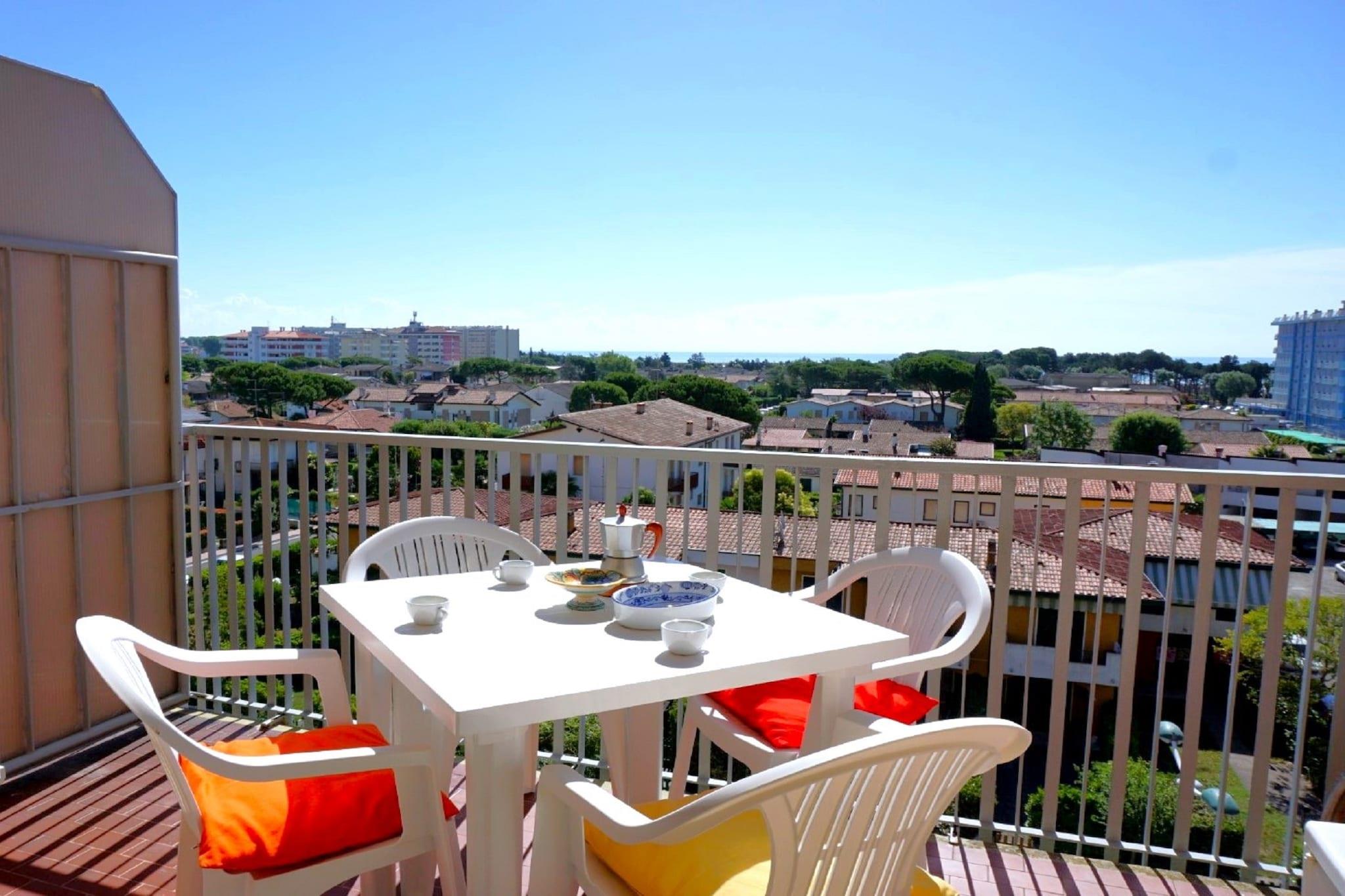 Strandkomfort mit privater Terrasse Nur 500 Meter von den Sandstränden von Caorle entfernt bietet dieses haustierfreundliche Apartment für 5 Gäste einen hellen und einladenden Aufenthalt im 5. Stock. Das gemütliche Wohnzimmer verfügt über ein Doppelschlafsofa, einen Fernseher, einen Esstisch und eine Sitzecke – ideal zum Entspannen nach einem Tag am Meer. Die offene Küche ist komplett ausgestattet mit Herd, Dunstabzugshaube, Mikrowelle, Kühl-Gefrierkombination und Waschbecken – ideal für die Zubereitung von Mahlzeiten zu Hause. Praktische Raumaufteilung mit modernen Annehmlichkeiten Das Apartment verfügt über ein Schlafzimmer mit einem Doppelbett und einem Einzelbett und bietet so flexible Schlafmöglichkeiten für Familien oder Gruppen. Das Badezimmer ist mit Dusche, Waschbecken, WC und Bidet ausgestattet. Für Ihren Komfort bietet die Unterkunft eine Klimaanlage und Zugang zu einer privaten Terrasse, auf der Sie Ihren Morgenkaffee genießen oder die Abendbrise genießen können. Kostenloses WLAN und Parkplätze am Haus sorgen für zusätzlichen Komfort. Erstklassige Lage in Caorle mit haustierfreundlichen Vorteilen Die Wohnung liegt in einer ruhigen Gegend und dennoch in der Nähe von allem. Sie ist nur 150 Meter von Geschäften und 200 Meter von Restaurants entfernt und bietet so einfachen Zugang zu den wichtigsten Dingen des täglichen Bedarfs und Restaurants. Mit ihrer fantastischen Lage, dem nötigen Komfort und der haustierfreundlichen Atmosphäre ist diese Wohnung der perfekte Ausgangspunkt für einen erholsamen Urlaub an der venezianischen Küste.