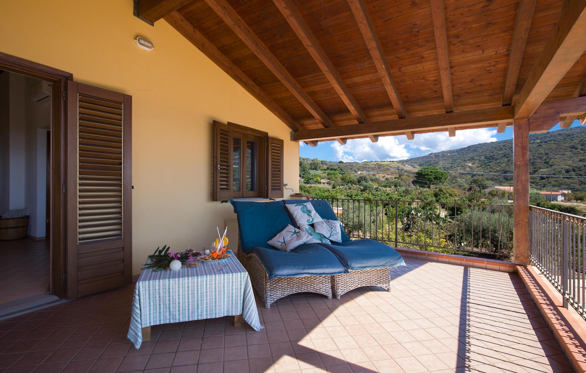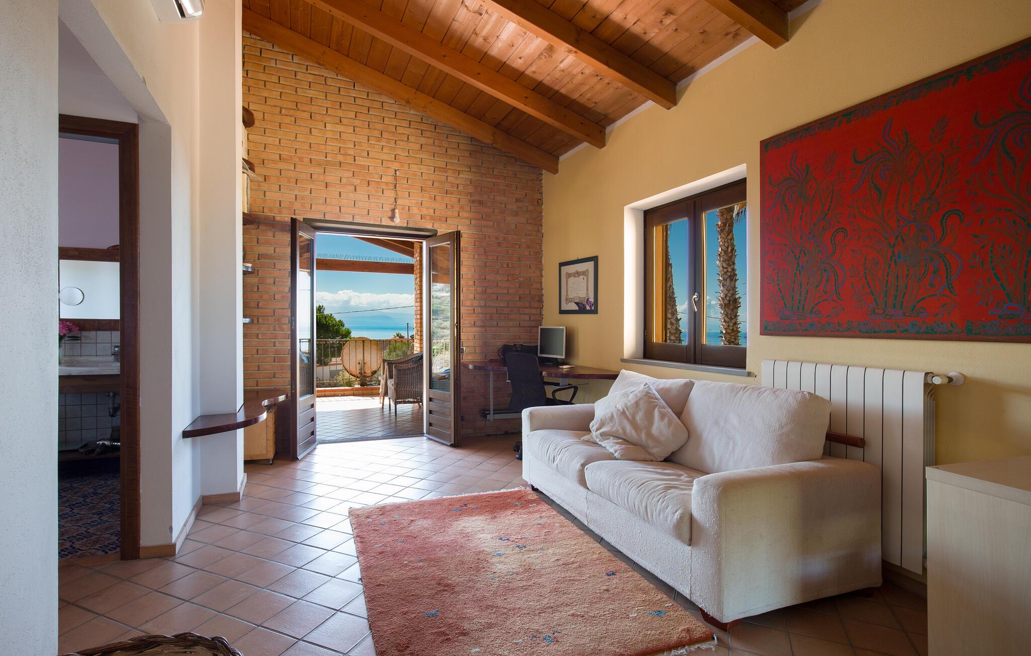 Ferienwohnung in einem Zwei-Familienhaus im Grünen auf dem Vorgebirge von Santa Maria di Ricadi in Kalabrien. Sie ist nur wenige hundert Meter vom Meer und wenige Kilometer von Tropea und seinen Stränden entfernt. Hier verbringen Sie Ihren Urlaub in einem der eindrucksvollsten Abschnitte der tyrrhenischen Küste. Die Ferienwohnung ist von Obstbäumen und Wiesen umgeben und erstreckt sich über zwei Ebenen: im Erdgeschoss befindet sich Esszimmer mit Kochnische, Badezimmer und ein Doppelschlafzimmer, im Obergeschoss (Treppen ohne Geländer): Schlafzimmer mit Doppelbett, Badezimmer mit Badewanne, kleines Wohnzimmer mit Schlafcouch und schöne Terrasse, wo Sie wunderbare Sonnenuntergänge bewundern können. Die Gäste haben einen Teil des Außenbereichs zur exklusiven Nutzung und einen Teil in Gemeinschaft mit den Gästen von IKK334. Lamezia Terme (Flughafen) ca. 70 km. WLAN: 10 GB/Woche.