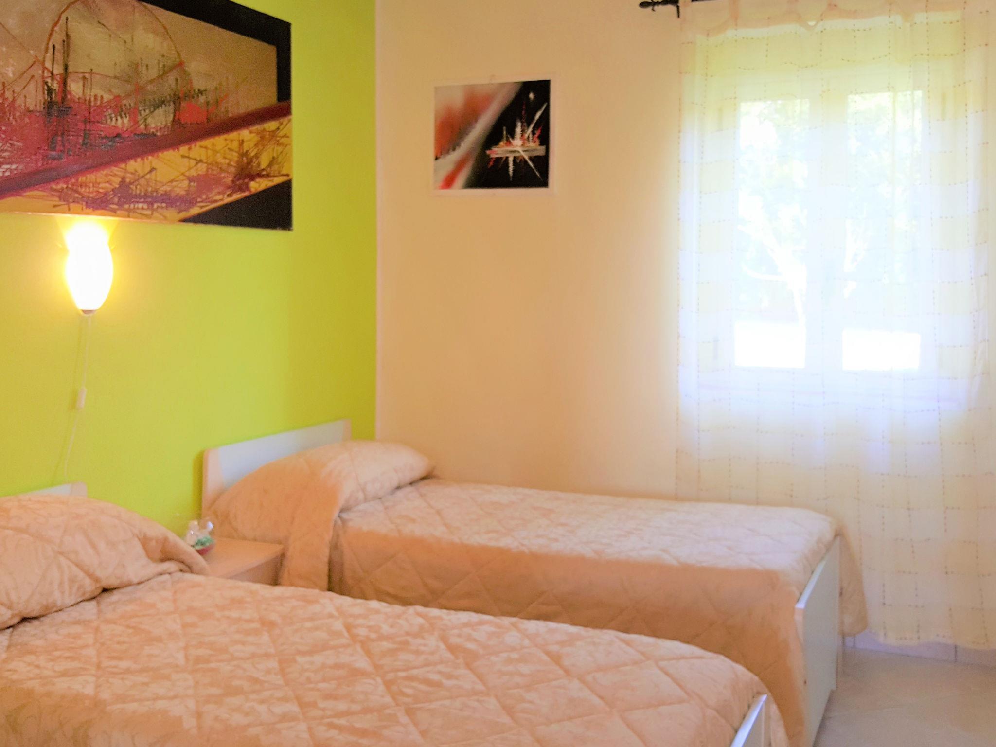 3-Zimmer-Wohnung 50 m2. Einfach und zweckmässig eingerichtet: Wohn-/Esszimmer mit 1 Doppeldiwanbett und TV. 1 Doppelzimmer mit Klimaanlage und Warmluftheizung. 1 Zimmer mit 2 Betten, Klimaanlage und Warmluftheizung. Kochnische (4 Kochplatten, elektrische Kaffeemaschine). Dusche/Bidet/WC. Balkon oder Gartensitzplatz. Balkonmöbel. Parkplatz Nr. 1. Geeignet für Familien. 1 kleines Haustier/Hund erlaubt. IT102030A1R496VAFX