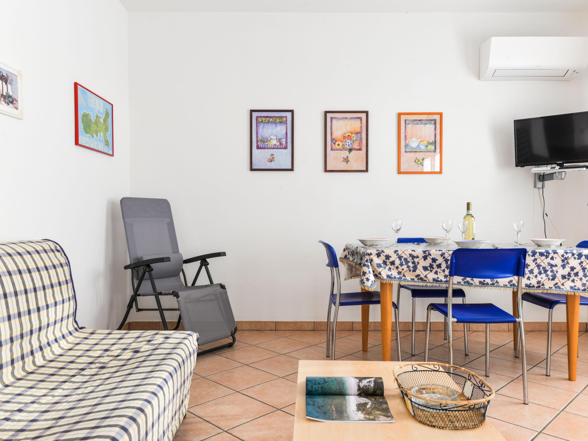 2-Zimmer-Wohnung 45 m2 im 1. Stock. Zweckmässig eingerichtet: Wohn-/Schlafzimmer mit 1 Doppeldiwanbett, Esstisch und Sat-TV. Ausgang zur Terrasse. 1 Zimmer mit 1 franz. Bett (160 cm). Kochnische (4 Kochplatten). Dusche/Bidet/WC. Heizung, Klimaanlage. Terrasse 19 m2. Terrassenmöbel. Schöne Sicht auf das Meer. Zur Verfügung: Fliegengitter, Haartrockner. Internet (WLAN, gratis). Parkplatz (überdacht, eingezäunt, 1 Auto) in 20 m. Bitte beachten: Nichtraucher-Unterkunft. Maximal 1 kleines Haustier/Hund erlaubt. Eigener Eingang. Es werden keine zusätzlichen Gebühren vor Ort fällig. IT049004C2IJW3X8Z4