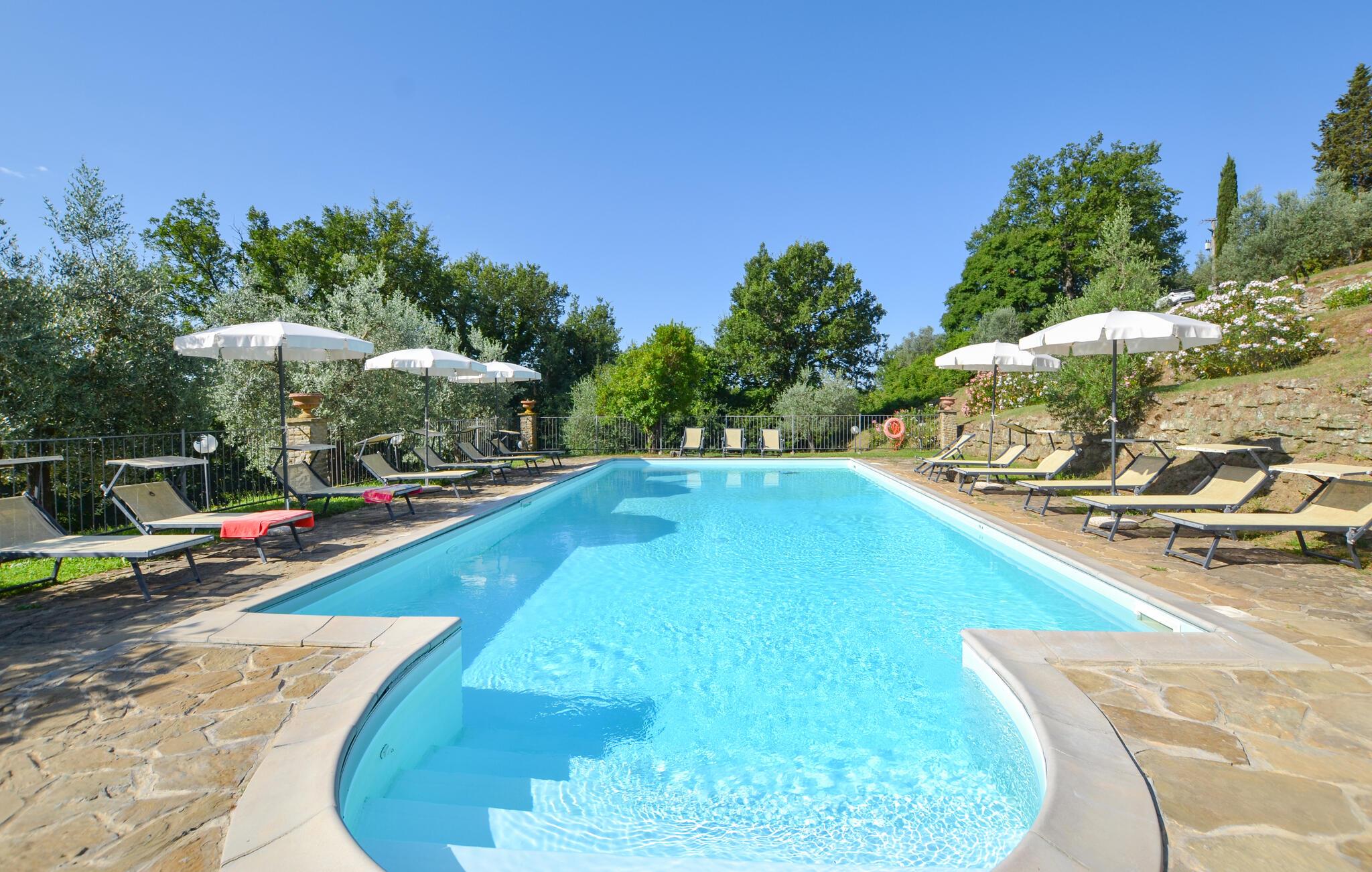 Genießen Sie historisches Flair und einen bezaubernden Panoramablick in diesem großzügigen Ferienhaus mit Pool.