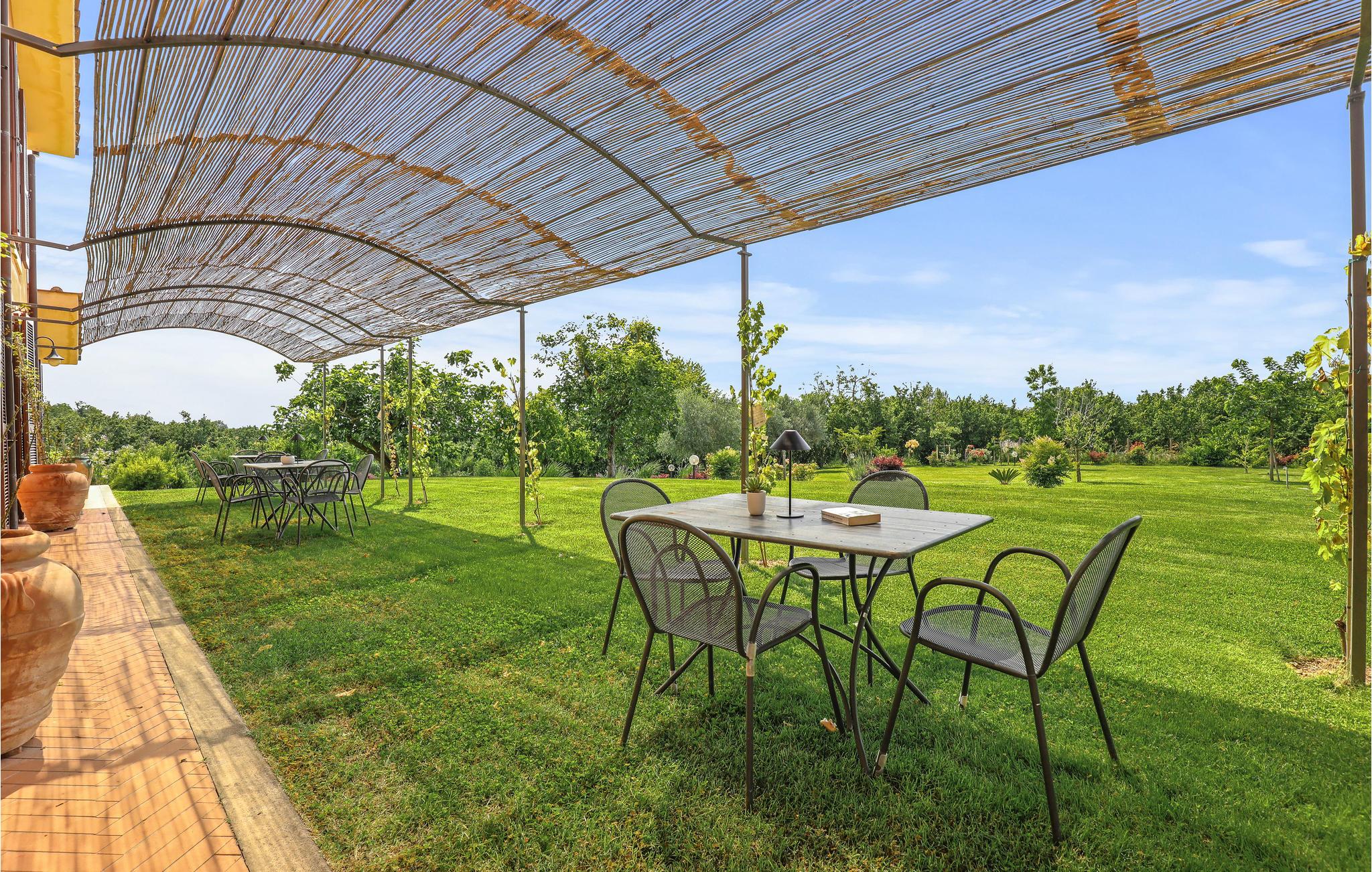 Dieses in Wohnungen unterteilte Landhaus liegt im Herzen der Region Tuscia, zwischen Haselnuss-, Kastanien- und Obstbäumen und 2,5 km vom Zentrum von Capranica entfernt. Den Gästen stehen gemeinschaftlich ein Pool, Außenbereich, Grill und Außendusche zur Verfügung. Jede Wohnung hat einen eigenen Gartensitz. Auf dem Grundstück gibt es einen kleinen hölzernen Fahrradschuppen zur gemeinschaftlichen Benutzung. Gute Lage, um das Land Latiums, die Stadt Viterbo (25 km), die Thermalbäder von San Sisto di Vetralla (7,5 km), die Thermalbäder Terme dei Papi (25 km), den Bracciano- See (19 km) und die etruskische Stadt Tuscania (34 km) zu besichtigen. Vom Bahnhof in Capranica kann man Rom erreichen. Siehe auch IRU178, IRU179, IRU180, IRU181, IRU182, IRU206.
