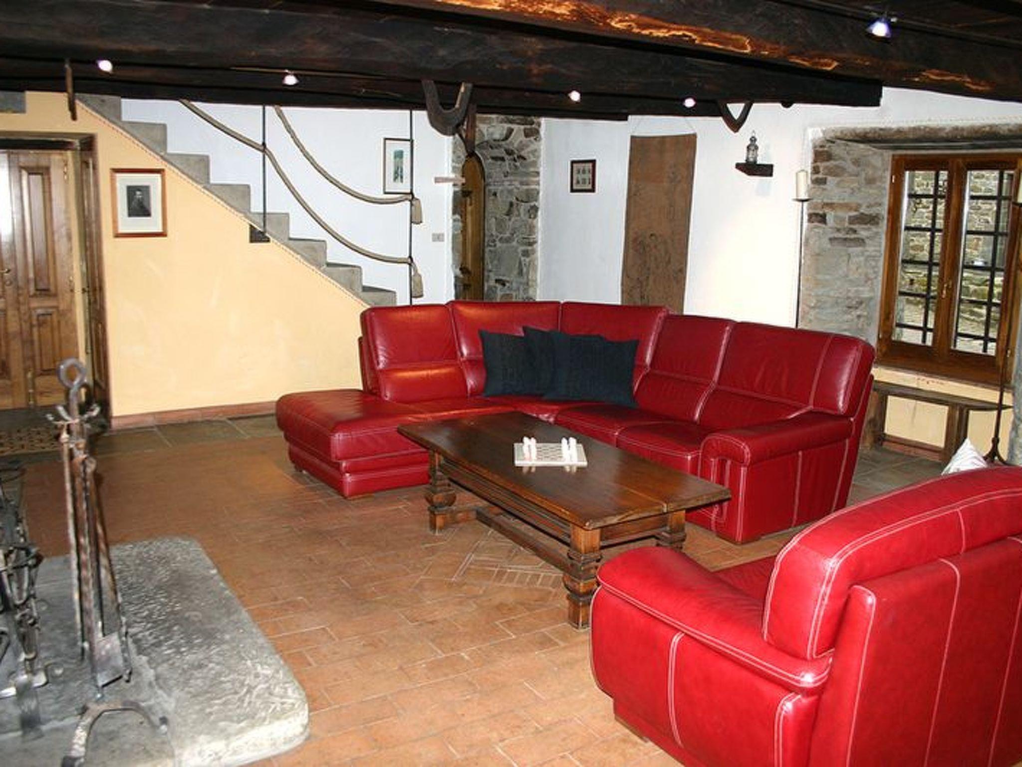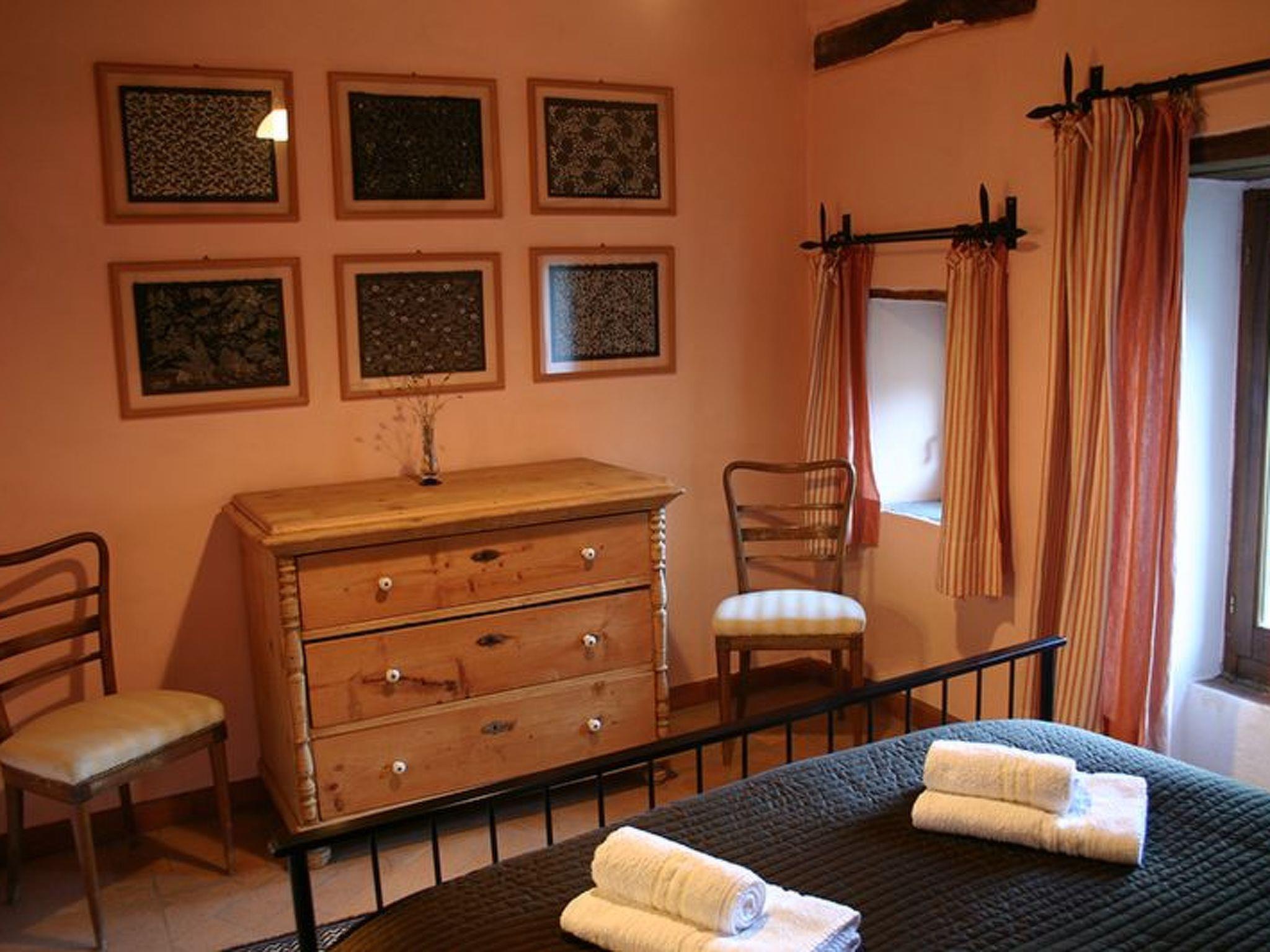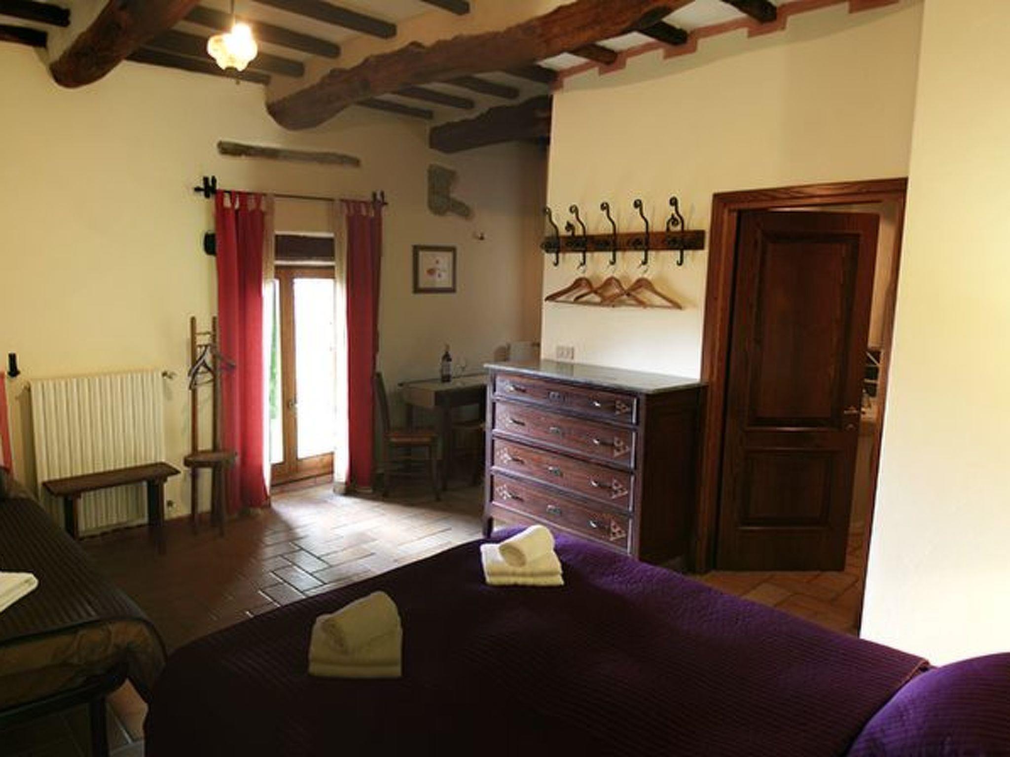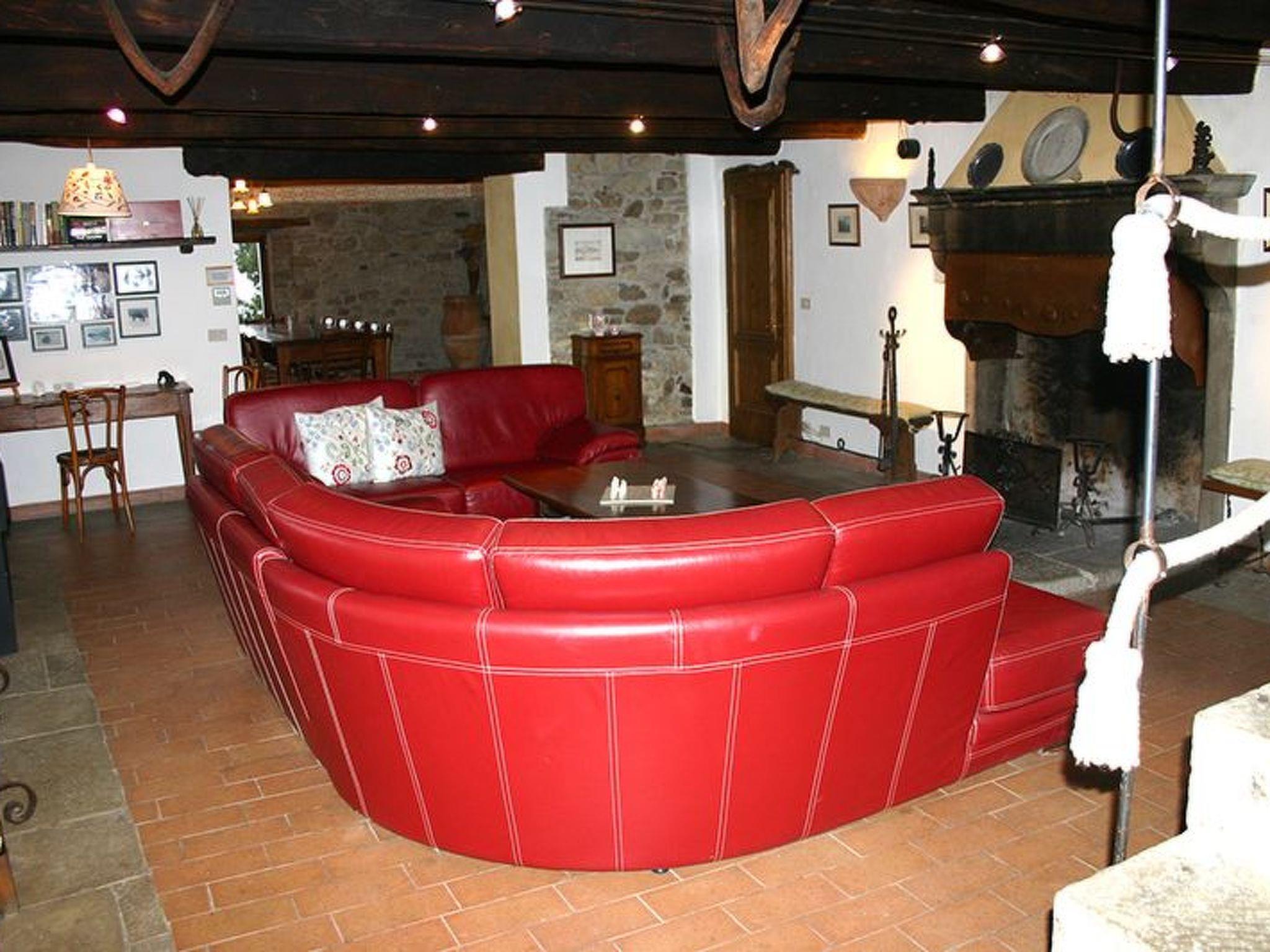 Das Bauernhaus Priello aus dem Jahr 1600 wurde geschmackvoll restauriert, wobei alle ursprünglichen Details erhalten blieben. Im Haupthaus befinden sich drei der vier Schlafzimmer im Obergeschoss, während das vierte Schlafzimmer ein kleines Doppelzimmer ist, das an das Wohnzimmer angrenzt: der perfekte Ort für diejenigen, die nicht gerne Treppen steigen oder kleine Kinder dabei haben. Das Wohnzimmer bietet viele Sitzgelegenheiten rund um den großen Kamin, an dem Sie ein Glas Wein trinken können und, glauben Sie uns, es ist der perfekte Ort für Geschichten. Der Esstisch bietet Platz für 14 Personen, und in der Küche können Sie selbst Brot oder frische Pasta backen. Terrakottaböden im ganzen Haus, eine freiliegende Steintreppe, geflieste Bäder, eine Badewanne mit Wasserfall, freiliegende Balken an jeder Decke und ein traumhafter Blick aus jedem Fenster. Sobald Sie das Haus betreten, werden Sie feststellen, mit welcher Sorgfalt und Aufmerksamkeit dieses herrliche Anwesen renoviert wurde, so dass ein hohes Maß an Komfort gewährleistet ist und gleichzeitig die wunderbare toskanische Atmosphäre erhalten bleibt. Die beiden Wohnungen verfügen über eine Kochnische, ein Bad, ein großes Schlafzimmer und eine private oder gemeinsame Terrasse (je nach Wunsch) direkt vor dem Haus. Die Steinterrasse, die den Pool umgibt, bietet viel Platz zum Sonnenbaden und auch einige schattige Bereiche, so dass Sie die Atmosphäre des Pools genießen können, ohne es zu übertreiben. Ein wahres Paradies, in dem man den ganzen Tag liegen und das Tal bewundern möchte, ohne irgendetwas zu tun.