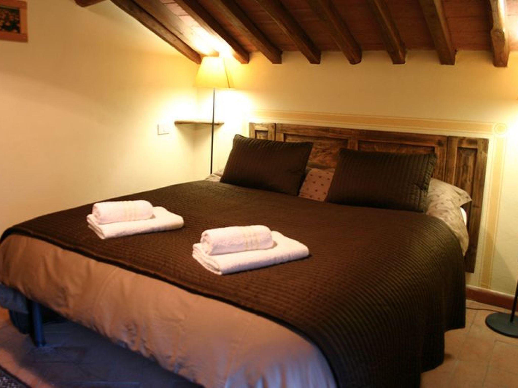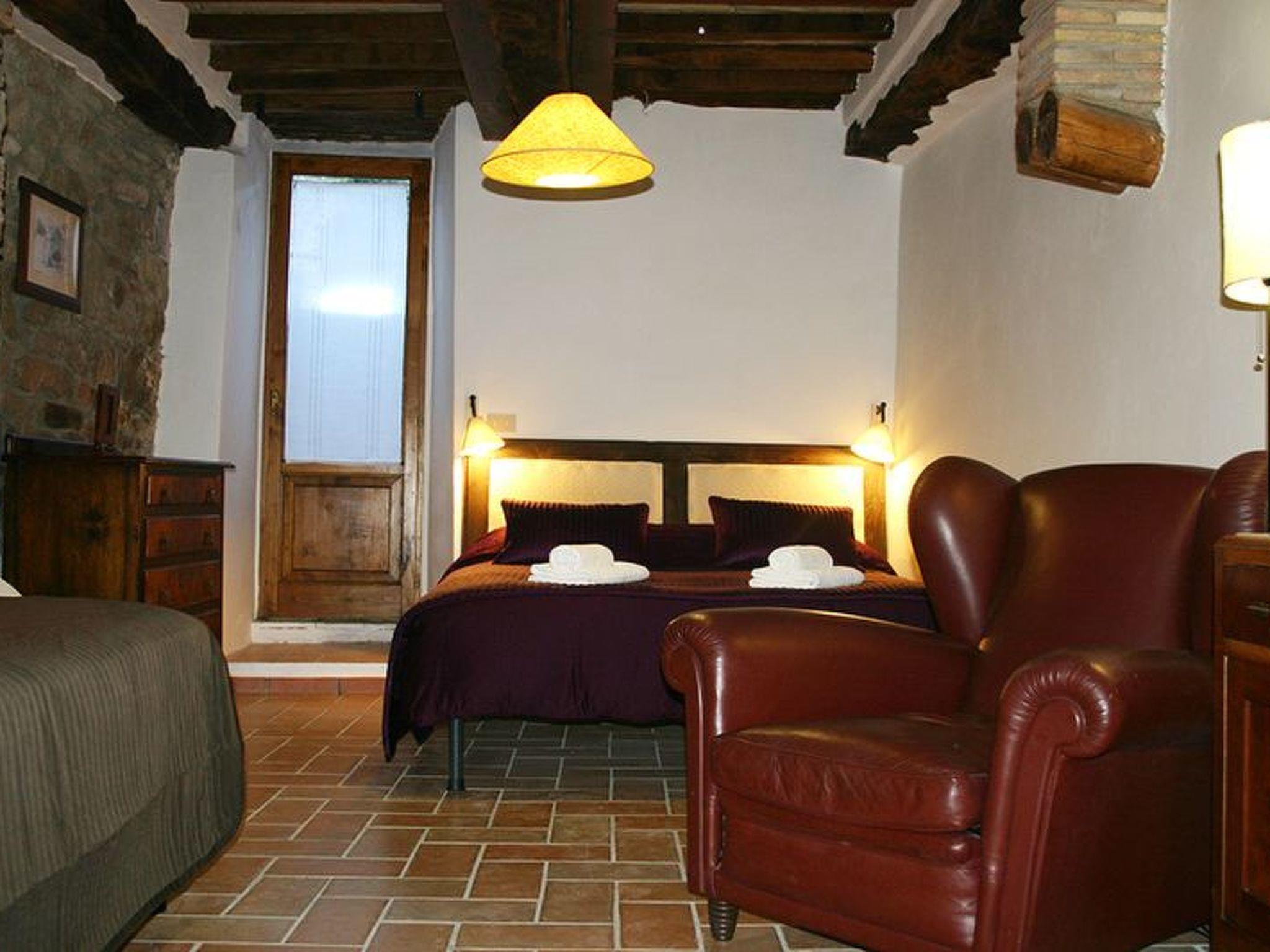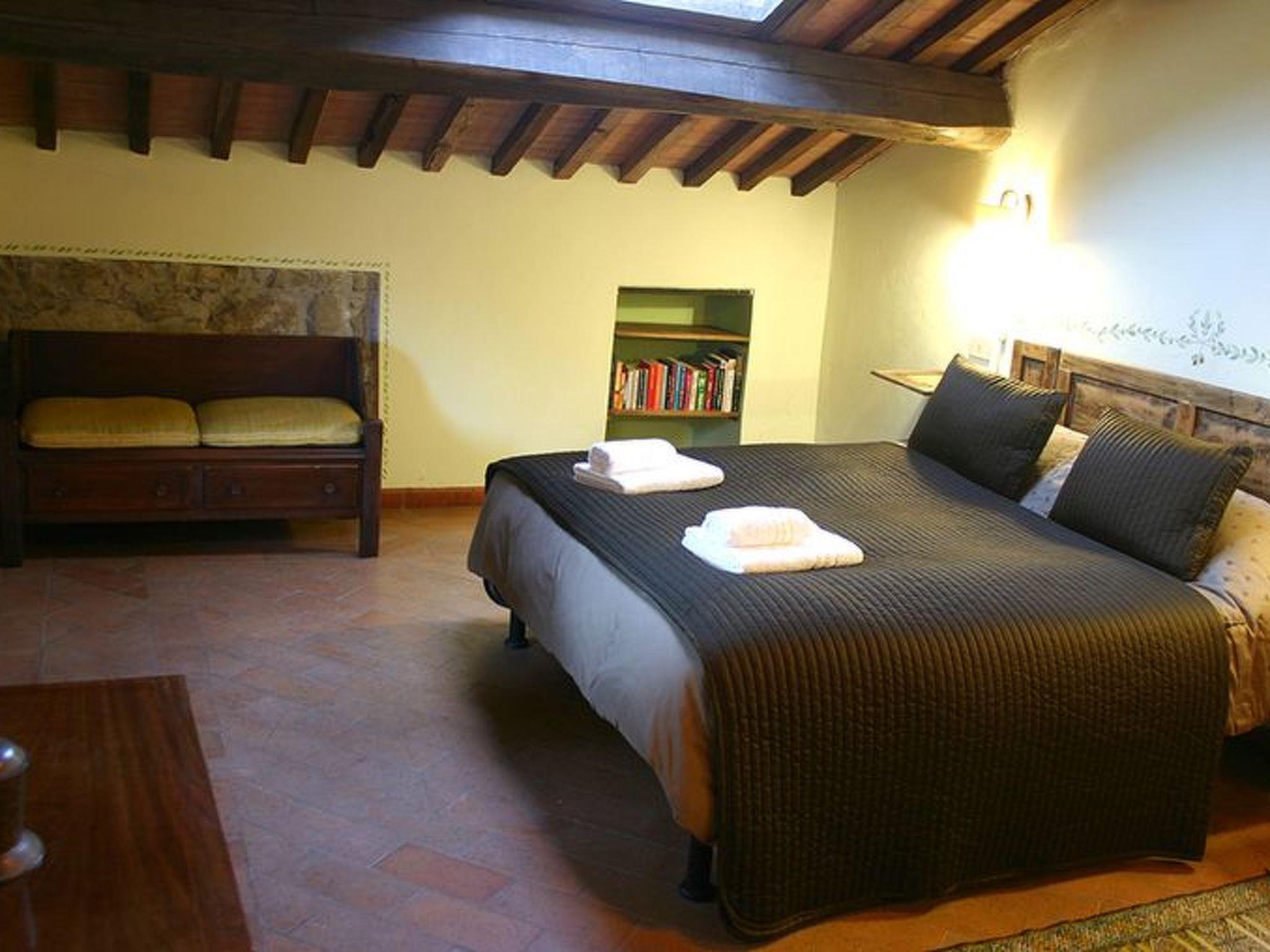Das Bauernhaus Priello aus dem Jahr 1600 wurde geschmackvoll restauriert, wobei alle ursprünglichen Details erhalten blieben. Im Haupthaus befinden sich drei der vier Schlafzimmer im Obergeschoss, während das vierte Schlafzimmer ein kleines Doppelzimmer ist, das an das Wohnzimmer angrenzt: der perfekte Ort für diejenigen, die nicht gerne Treppen steigen oder kleine Kinder dabei haben. Das Wohnzimmer bietet viele Sitzgelegenheiten rund um den großen Kamin, an dem Sie ein Glas Wein trinken können und, glauben Sie uns, es ist der perfekte Ort für Geschichten. Der Esstisch bietet Platz für 14 Personen, und in der Küche können Sie selbst Brot oder frische Pasta backen. Terrakottaböden im ganzen Haus, eine freiliegende Steintreppe, geflieste Bäder, eine Badewanne mit Wasserfall, freiliegende Balken an jeder Decke und ein traumhafter Blick aus jedem Fenster. Sobald Sie das Haus betreten, werden Sie feststellen, mit welcher Sorgfalt und Aufmerksamkeit dieses herrliche Anwesen renoviert wurde, so dass ein hohes Maß an Komfort gewährleistet ist und gleichzeitig die wunderbare toskanische Atmosphäre erhalten bleibt. Die beiden Wohnungen verfügen über eine Kochnische, ein Bad, ein großes Schlafzimmer und eine private oder gemeinsame Terrasse (je nach Wunsch) direkt vor dem Haus. Die Steinterrasse, die den Pool umgibt, bietet viel Platz zum Sonnenbaden und auch einige schattige Bereiche, so dass Sie die Atmosphäre des Pools genießen können, ohne es zu übertreiben. Ein wahres Paradies, in dem man den ganzen Tag liegen und das Tal bewundern möchte, ohne irgendetwas zu tun.