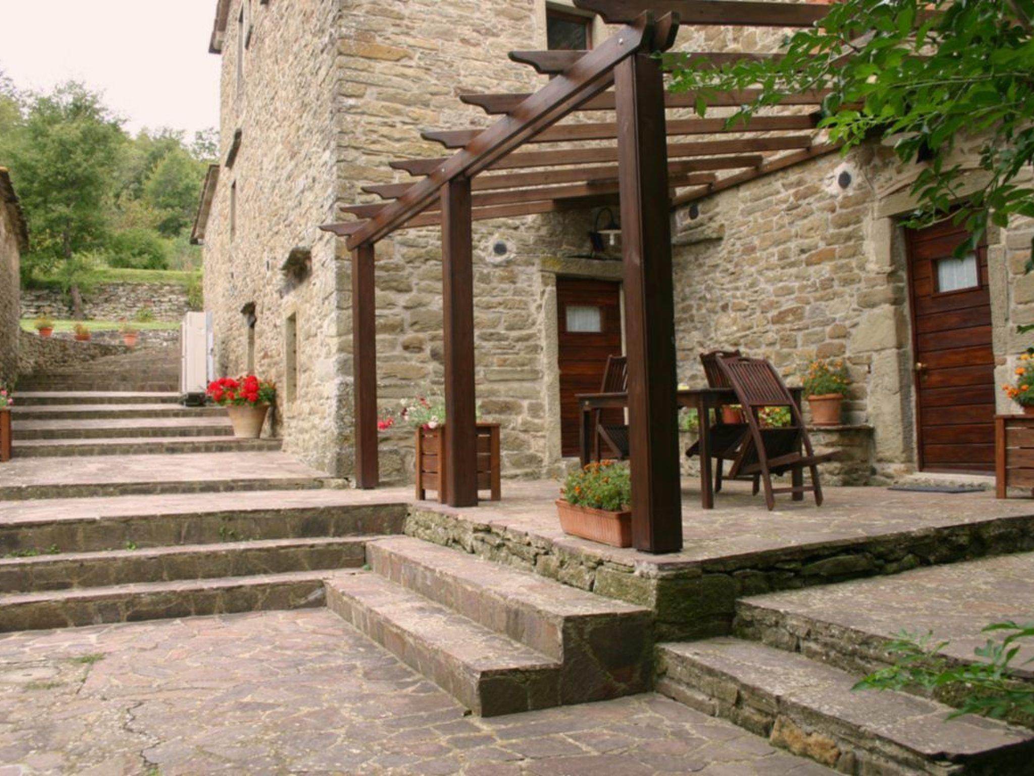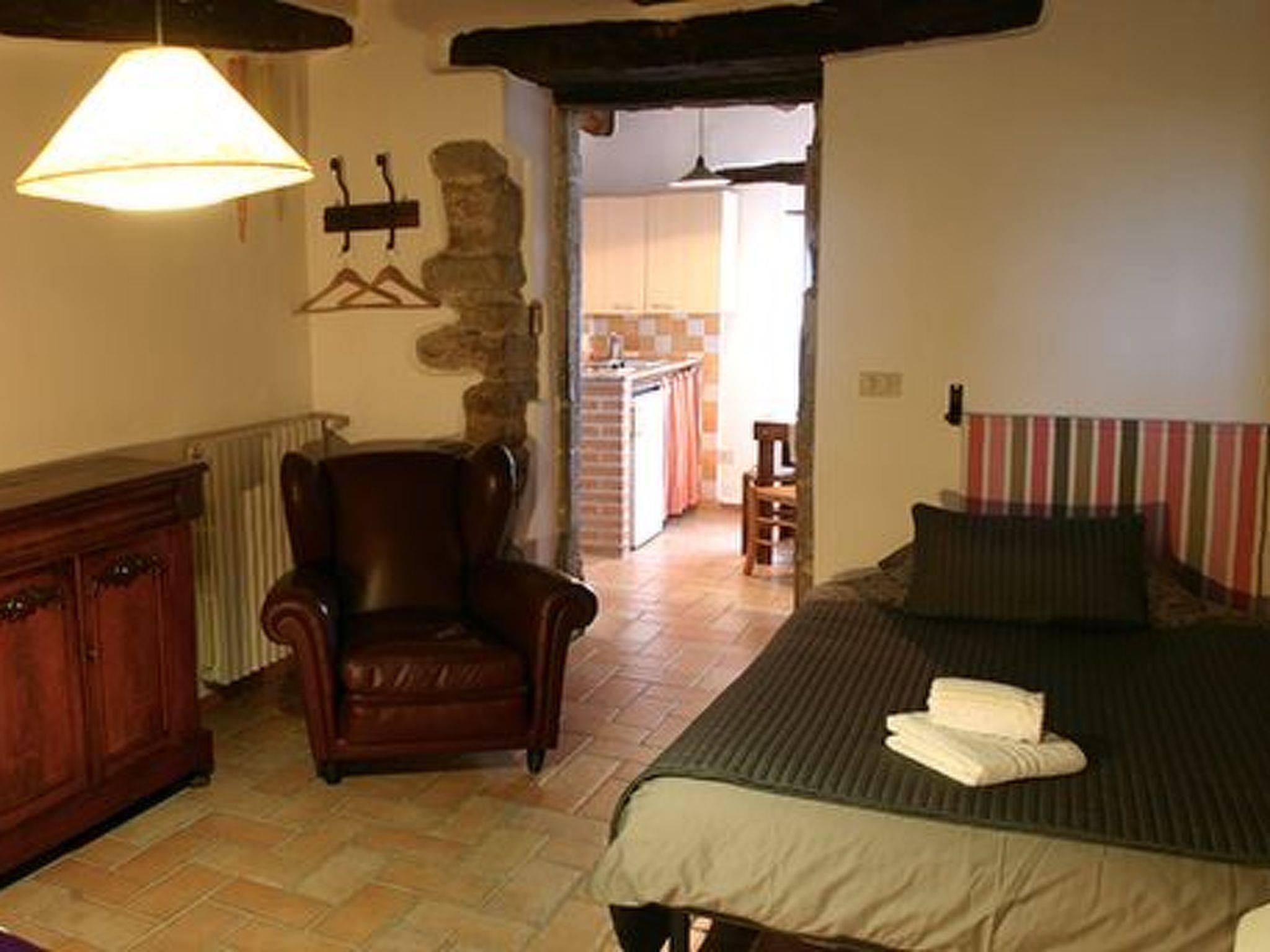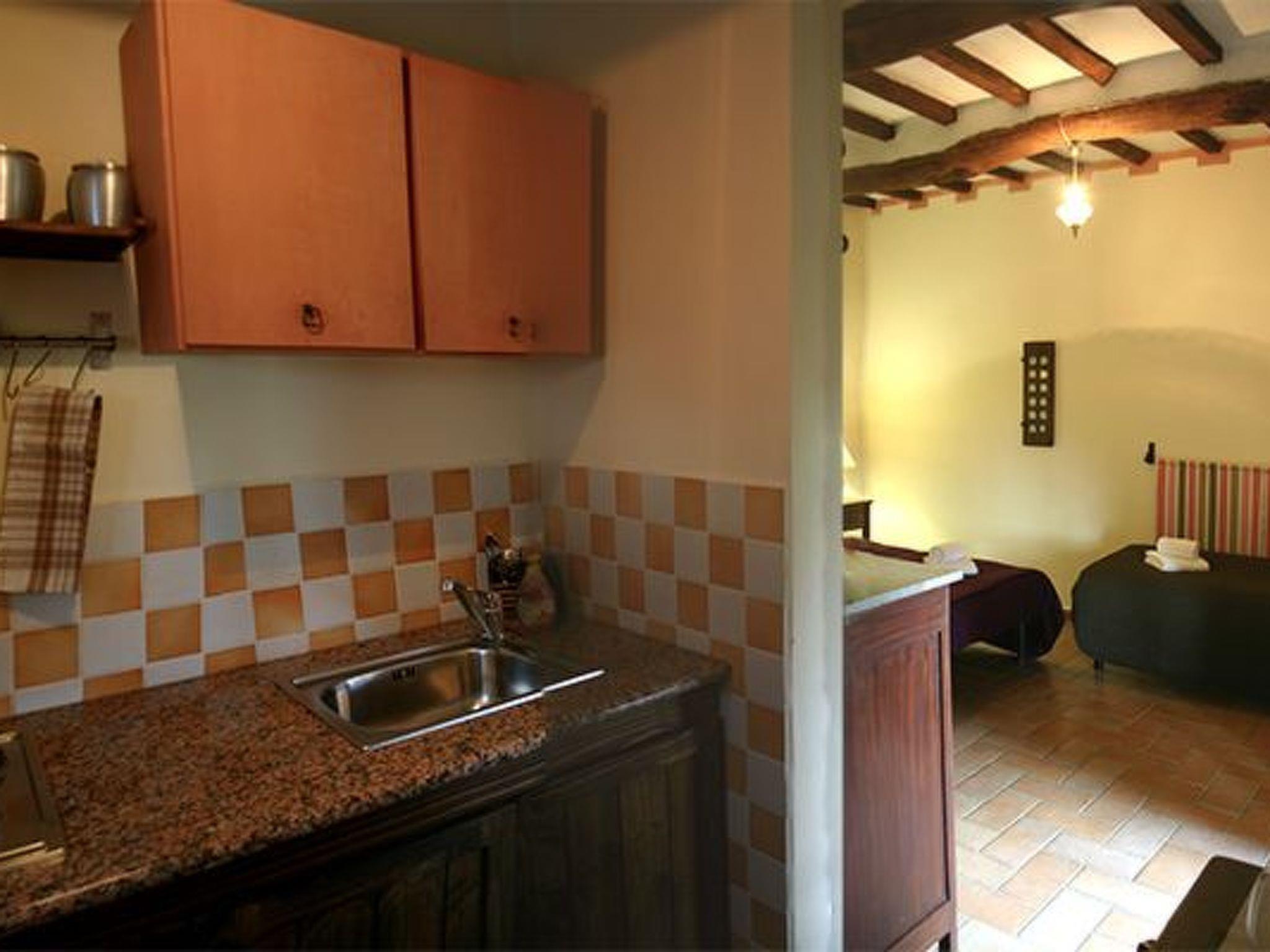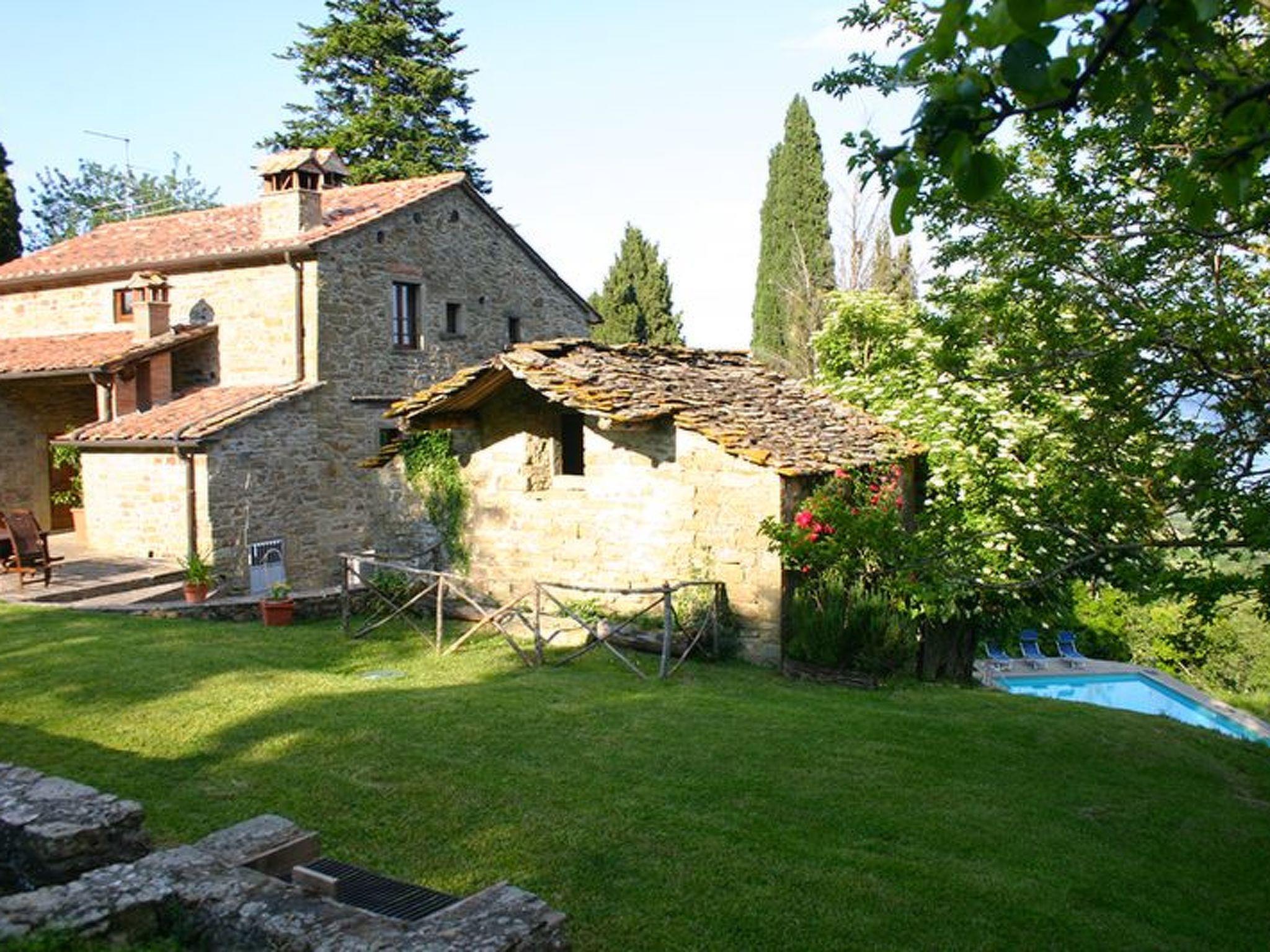 Das Bauernhaus Priello aus dem Jahr 1600 wurde geschmackvoll restauriert, wobei alle ursprünglichen Details erhalten blieben. Im Haupthaus befinden sich drei der vier Schlafzimmer im Obergeschoss, während das vierte Schlafzimmer ein kleines Doppelzimmer ist, das an das Wohnzimmer angrenzt: der perfekte Ort für diejenigen, die nicht gerne Treppen steigen oder kleine Kinder dabei haben. Das Wohnzimmer bietet viele Sitzgelegenheiten rund um den großen Kamin, an dem Sie ein Glas Wein trinken können und, glauben Sie uns, es ist der perfekte Ort für Geschichten. Der Esstisch bietet Platz für 14 Personen, und in der Küche können Sie selbst Brot oder frische Pasta backen. Terrakottaböden im ganzen Haus, eine freiliegende Steintreppe, geflieste Bäder, eine Badewanne mit Wasserfall, freiliegende Balken an jeder Decke und ein traumhafter Blick aus jedem Fenster. Sobald Sie das Haus betreten, werden Sie feststellen, mit welcher Sorgfalt und Aufmerksamkeit dieses herrliche Anwesen renoviert wurde, so dass ein hohes Maß an Komfort gewährleistet ist und gleichzeitig die wunderbare toskanische Atmosphäre erhalten bleibt. Die beiden Wohnungen verfügen über eine Kochnische, ein Bad, ein großes Schlafzimmer und eine private oder gemeinsame Terrasse (je nach Wunsch) direkt vor dem Haus. Die Steinterrasse, die den Pool umgibt, bietet viel Platz zum Sonnenbaden und auch einige schattige Bereiche, so dass Sie die Atmosphäre des Pools genießen können, ohne es zu übertreiben. Ein wahres Paradies, in dem man den ganzen Tag liegen und das Tal bewundern möchte, ohne irgendetwas zu tun.