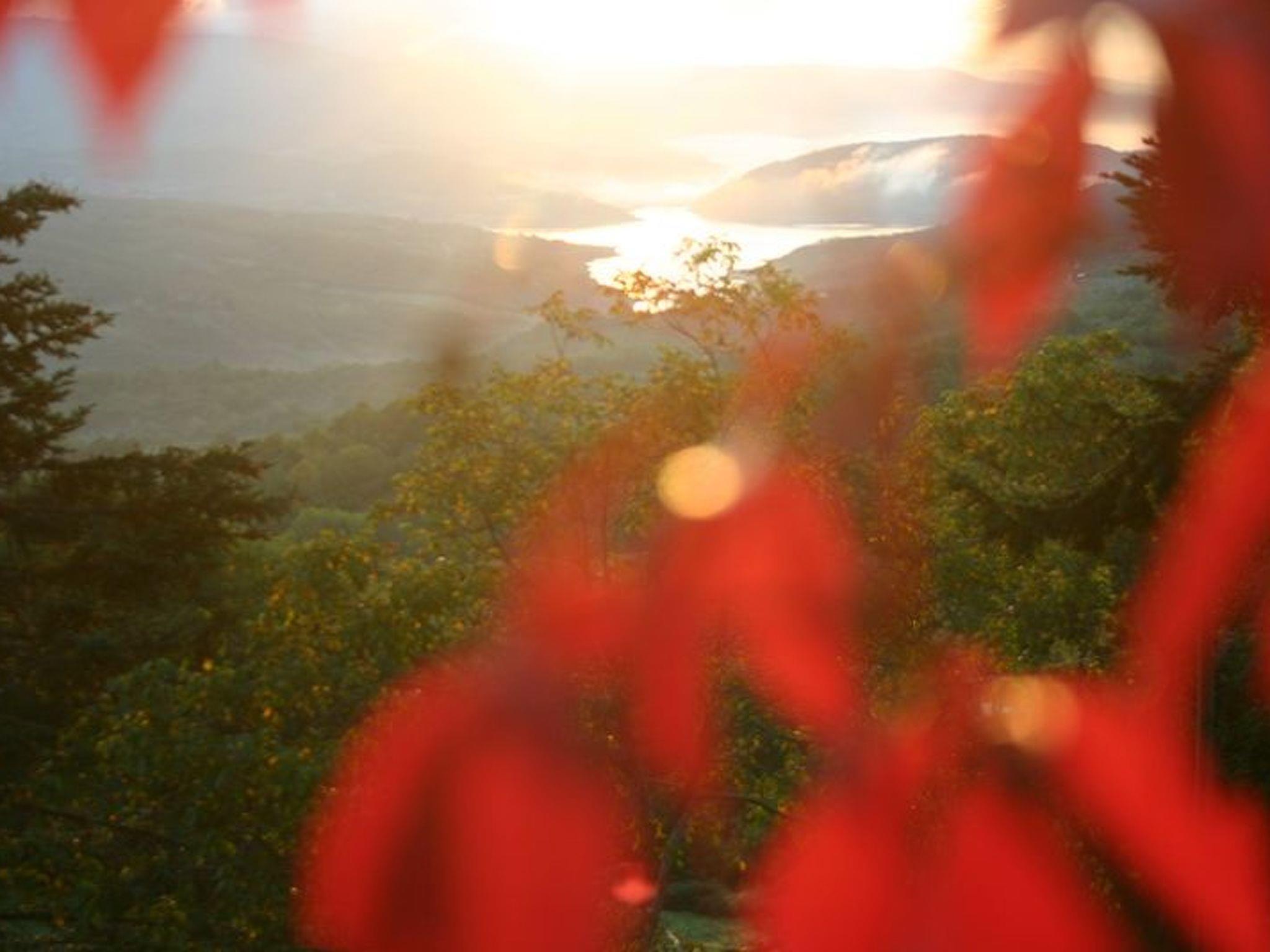 Das Haus im rustikalen Stil verfügt über eine Terrasse, einen Pizzaofen, einen Grill und eine überdachte Terrasse mit Dartpfeilen, wo Sie Ihren Morgenkaffee mit Blick auf den See genießen können.