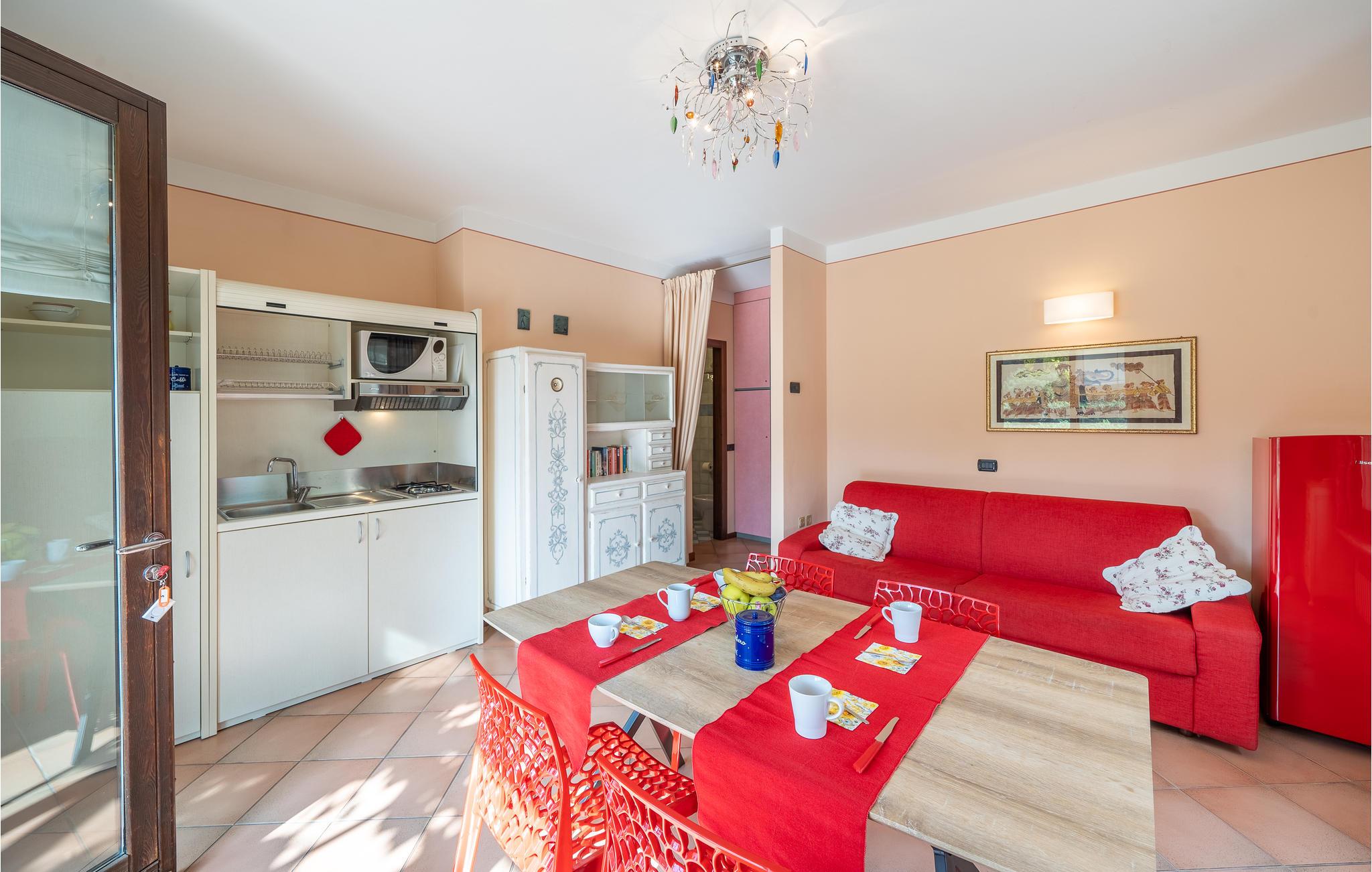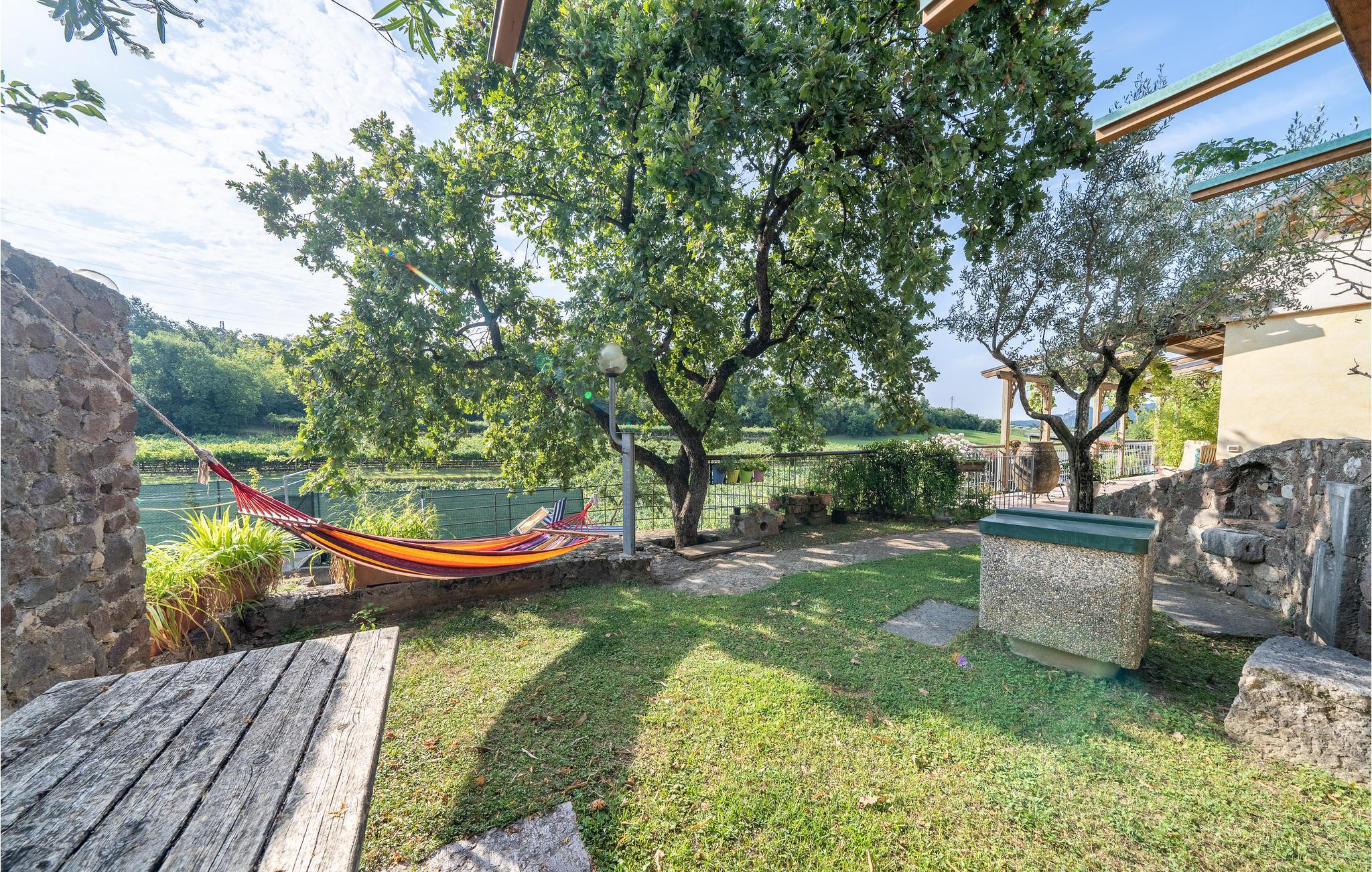 Schöne Ferienwohnung in 7 km Entfernung vom Gardasee mit viel Platz im Freien und herrlichem Blick auf die Weinberge. Die Unterkunft besteht aus einem Wohnzimmer mit einem Doppelschlafsofa, einem Badezimmer mit Dusche und einem Schlafzimmer mit Doppelbett. Der Garten und die Terrasse blicken auf einen schönen Weinberg und sind mit Gartenmöbeln ausgestattet, um alle Bedürfnisse zu erfüllen: Genießen Sie entspannende Momente beim Lesen eines Buches oder angenehme Abende beim Grillen. Der nahe gelegene Gardasee bietet zahlreiche Erholungsmöglichkeiten für Erwachsene und Kinder. Nur 30 km entfernt erwartet Sie die romantische Stadt Verona mit der schönen Arena, in der während der Sommersaison interessante Konzerte stattfinden, und in 140 km Entfernung das einmalige Venedig, das Sie mit seinen Kanälen und Monumenten faszinieren wird.