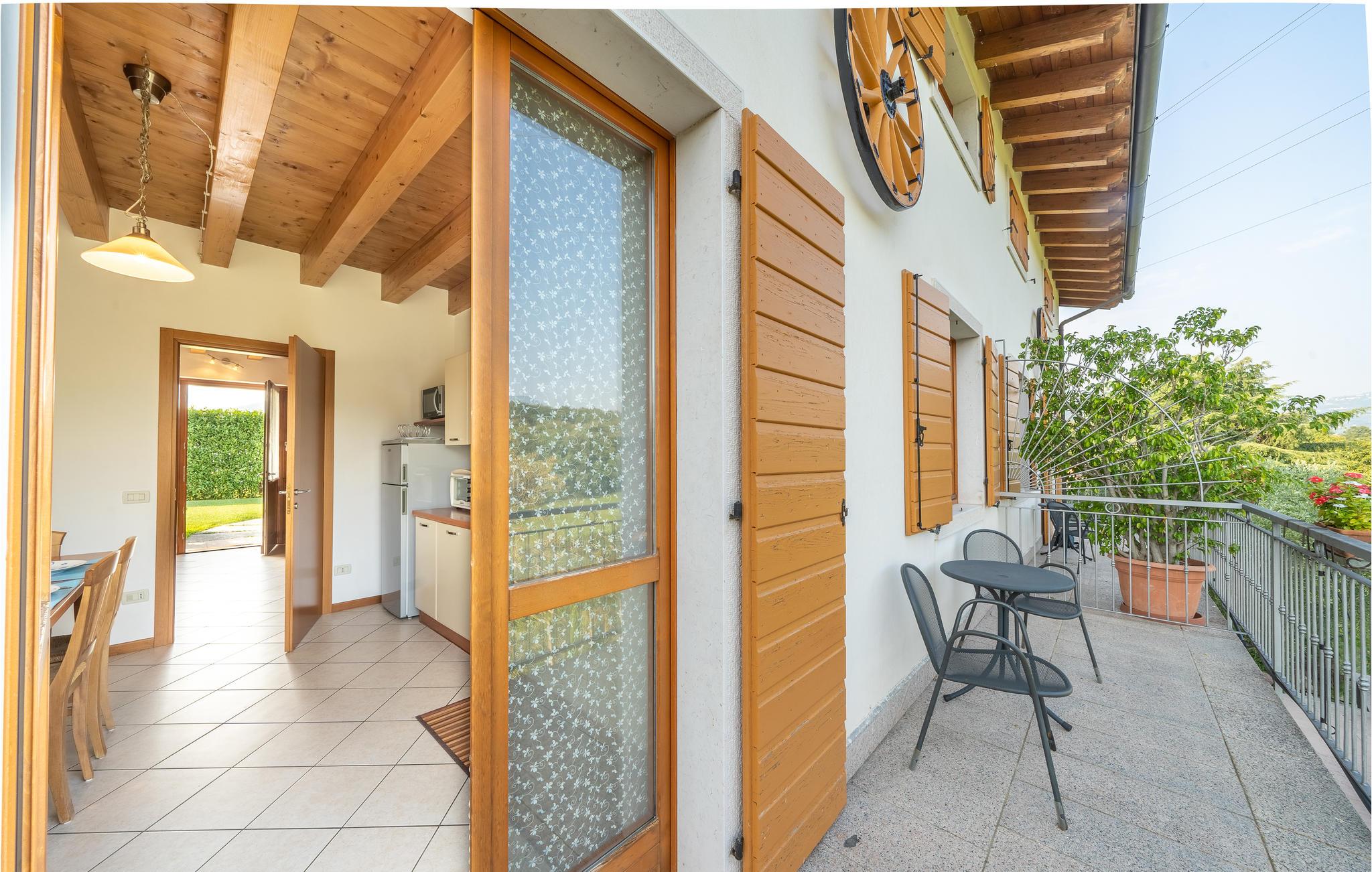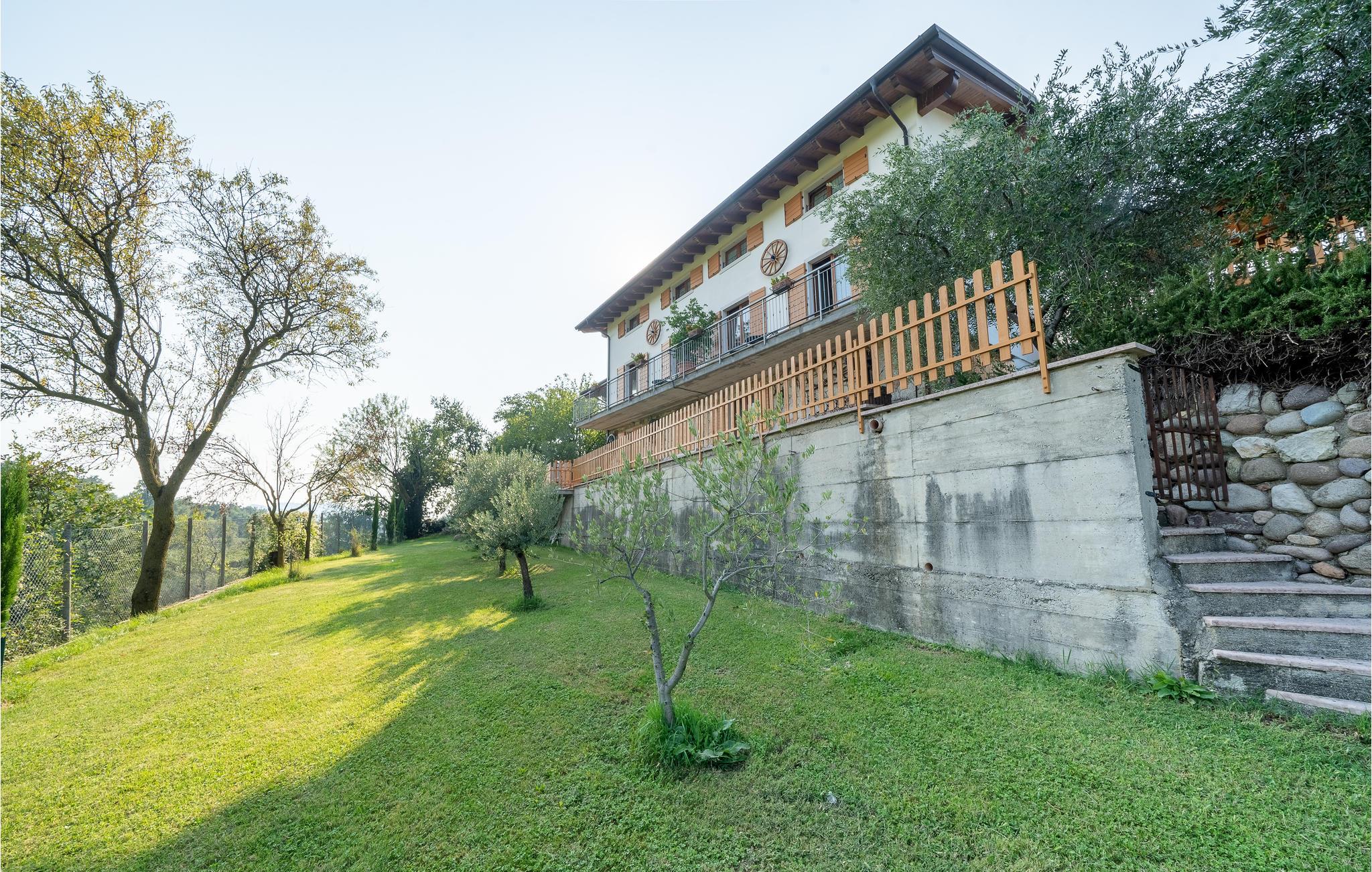 Hier bewohnen Sie eine schöne Doppelhaushälfte mit Gemeinschaftspool, umgeben von Weinbergen und Olivenhainen in Caprino Veronese, nur 7 km vom Ufer des Gardasees entfernt. Dies ist ein idealer Ort zum Entspannen. Die Wohnung ist auf zwei Etagen. Im Erdgeschoss: geräumiger Wohnbereich mit einem Sofa und TV, Küche mit allen Geräten und Esstisch, ein Badezimmer mit Duschkabine und ein Doppelbettzimmer. Im Obergeschoss befindet sich ein zweites Wohnzimmer mit Doppelschlafsofa, zwei Schlafzimmer (ein Doppelzimmer und ein Zweibettzimmer) und ein zweites Bad mit Badewanne. Der Garten ist sehr groß und umgibt das ganze Haus und bietet eine überdachte ausgestattete Fläche, Grill und Pool mit Sonnenliegen und Sonnenschirmen. Reservierter Parkplatz direkt vor dem Gebäude. Die charakteristische Landschaft des Ortes ist der perfekte Rahmen für einen schönen Urlaub. Bei 1 km gibt es verschiedene kommerzielle Aktivitäten mit typischen Produkten der Gegend. 20 km entfernt befindet sich einer der bekanntesten Vergnügungsparks Europas. Siehe auch IVG436.