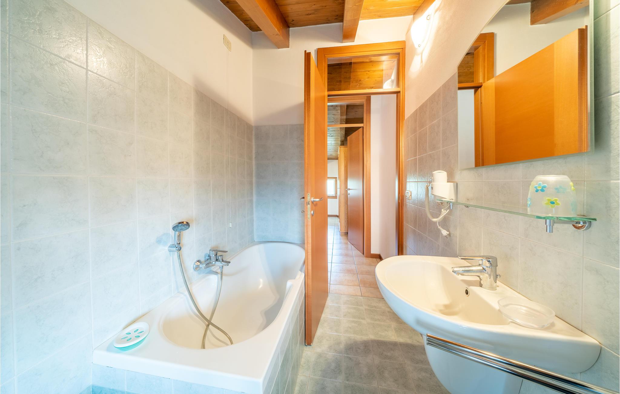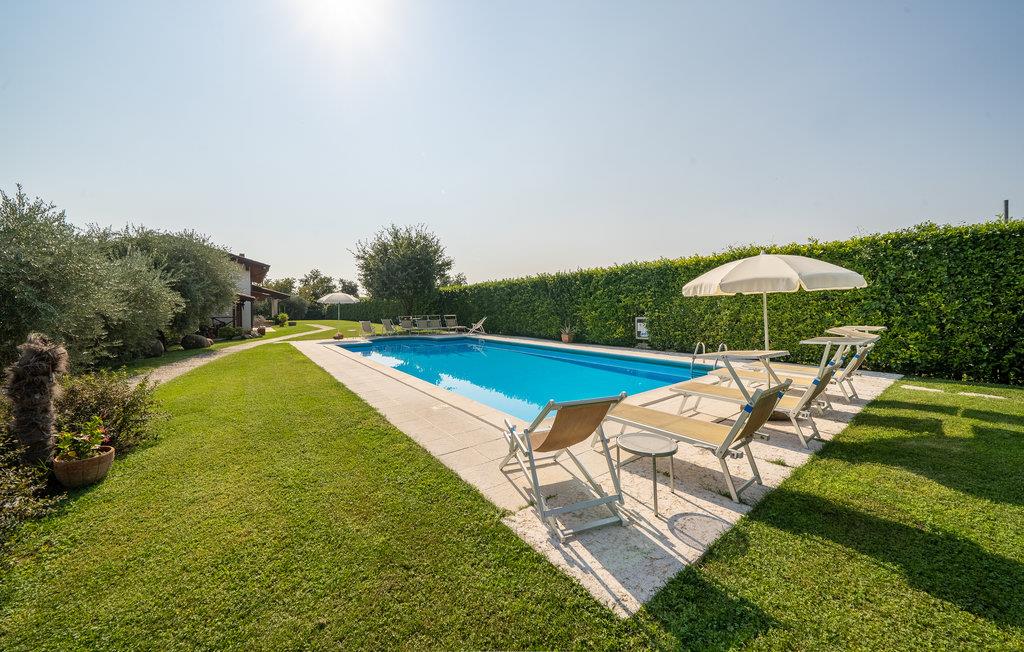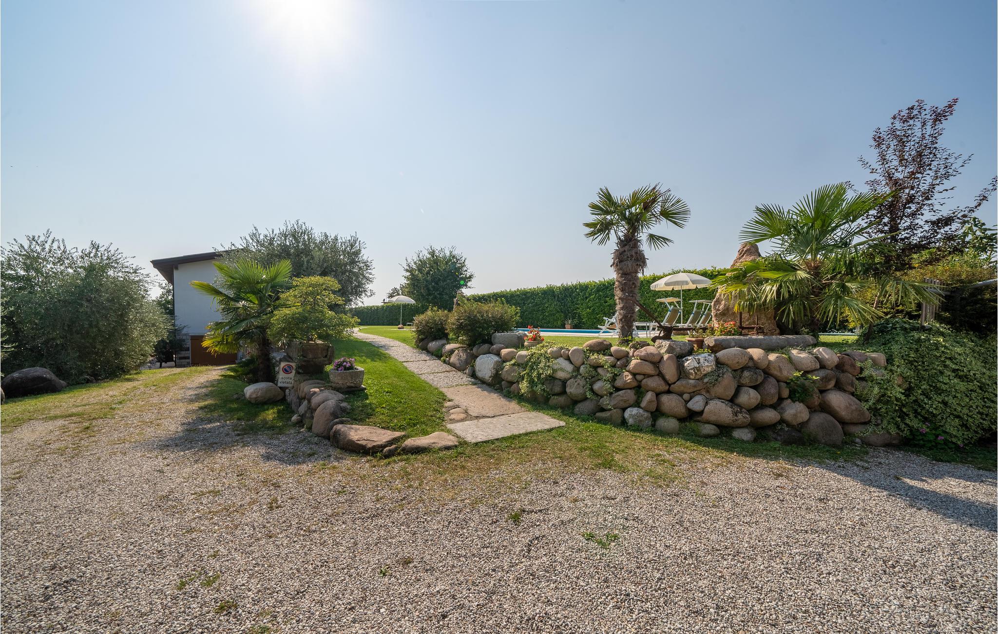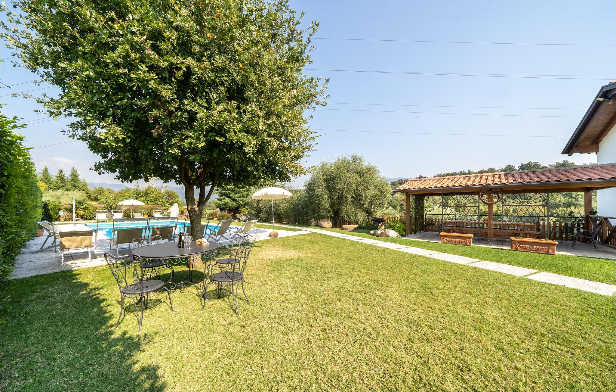 Bei Caprino Veronese, nur 7 km vom Ufer des Gardasees entfernt, befindet sich diese schöne Doppelhaushälfte mit Gemeinschaftspool, umgeben von Weinbergen und Olivenhainen. Dies ist ein idealer Ort zum Entspannen. Die Wohnung ist auf zwei Etagen. Im Erdgeschoss: geräumiger Wohnbereich mit einem Sofa und TV, Küche mit allen Geräten und Esstisch, ein Badezimmer mit Duschkabine und ein Doppelbettzimmer. Im Obergeschoss befindet sich ein zweites Wohnzimmer mit Doppelschlafsofa, zwei Schlafzimmer (ein Doppelzimmer und ein Zweibettzimmer) und ein zweites Bad mit Badewanne. Der Garten ist sehr groß und umgibt das ganze Haus und bietet eine überdachte ausgestattete Fläche, Grill und Pool mit Sonnenliegen und Sonnenschirmen. Reservierter Parkplatz direkt vor dem Gebäude. Die charakteristische Landschaft des Ortes ist der perfekte Rahmen für einen schönen Urlaub. Bei 1 km gibt es verschiedene kommerzielle Aktivitäten mit typischen Produkten der Gegend. 20 km entfernt befindet sich einer der bekanntesten Vergnügungsparks Europas. Siehe auch IVG435.