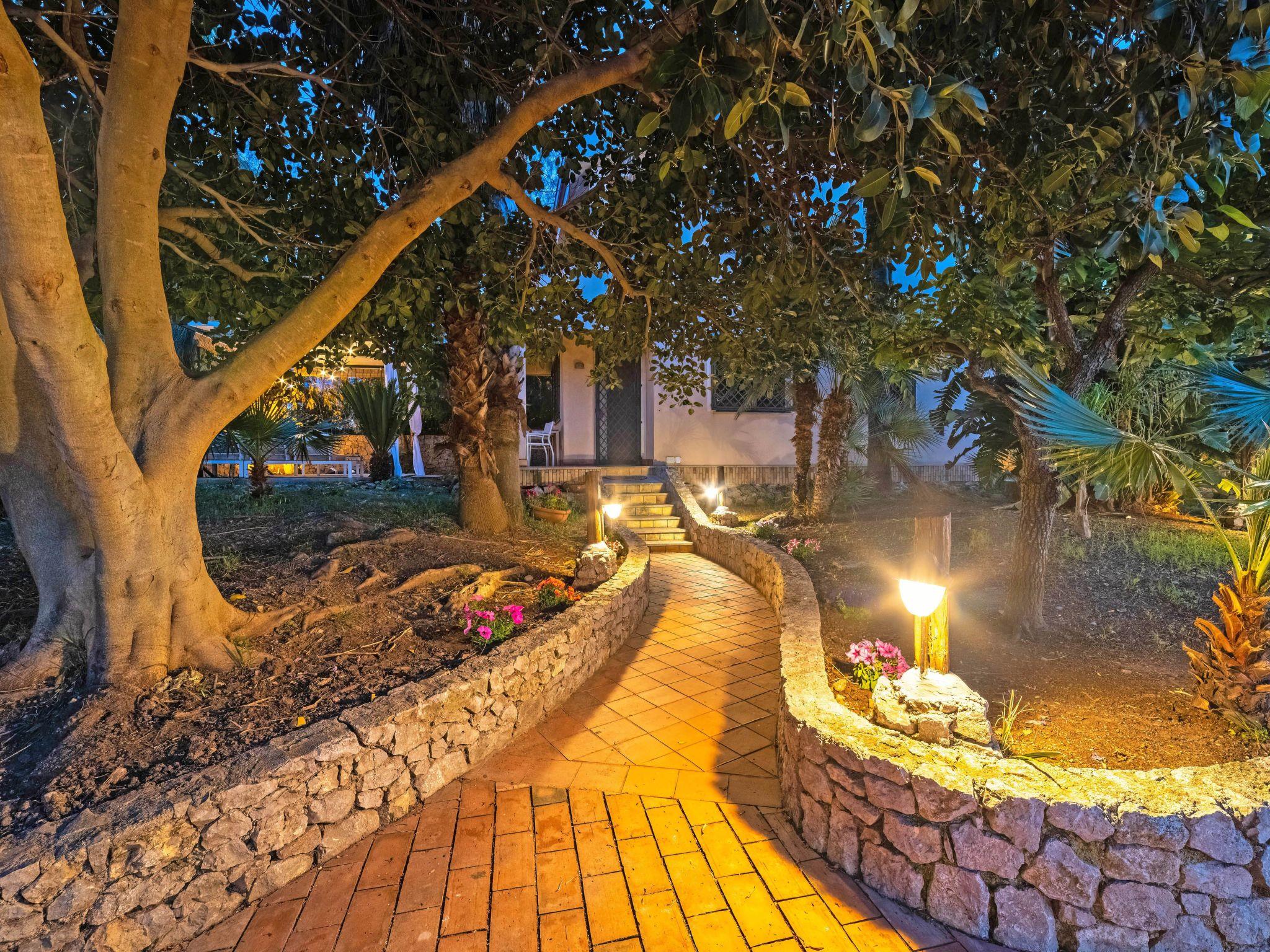 Mamma Manda ist vollständig von einem üppigen Park mit tropischen und mediterranen Pflanzen umgeben. Hier befindet sich der schöne Swimmingpool (15x5 m) und daneben der Grillplatz, ideal für unvergessliche sizilianische Mahlzeiten. Hängematten, Liegestühle, Sonnenschirme, Liegestühle, Kissen, Sessel... werden Ihren Aufenthalt im Park sehr angenehm machen.