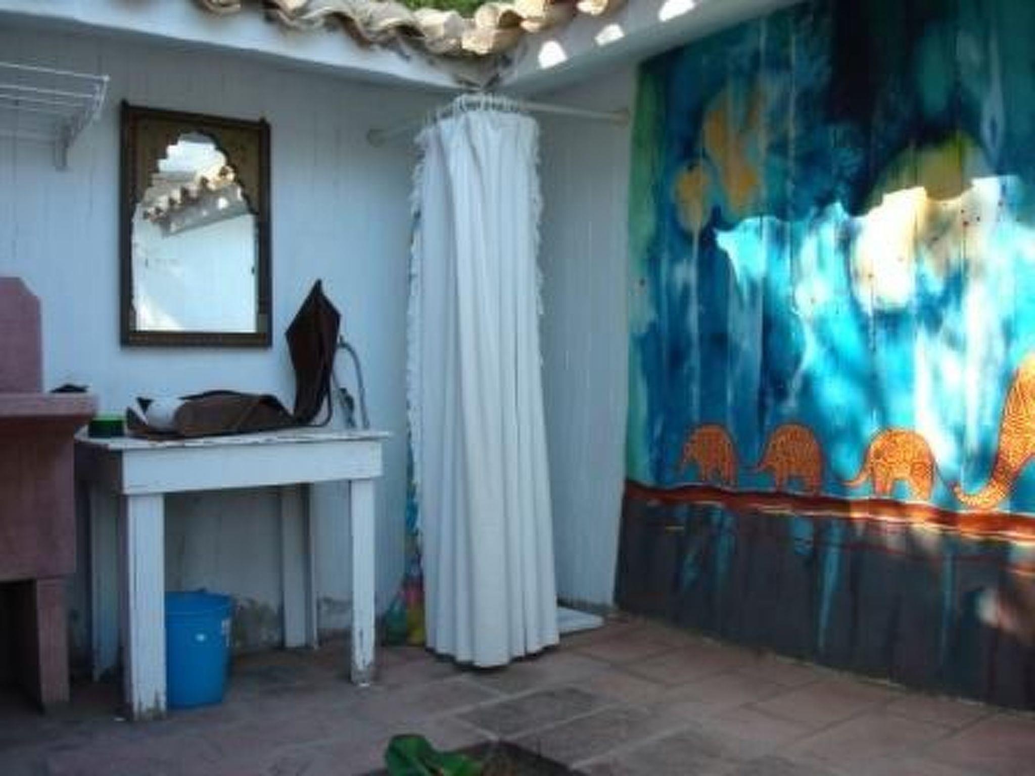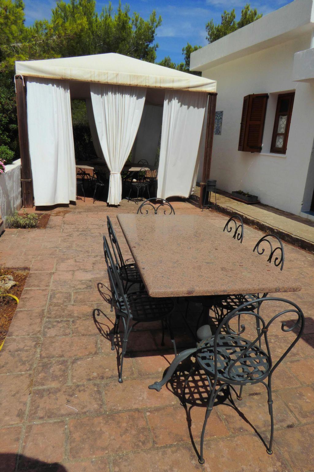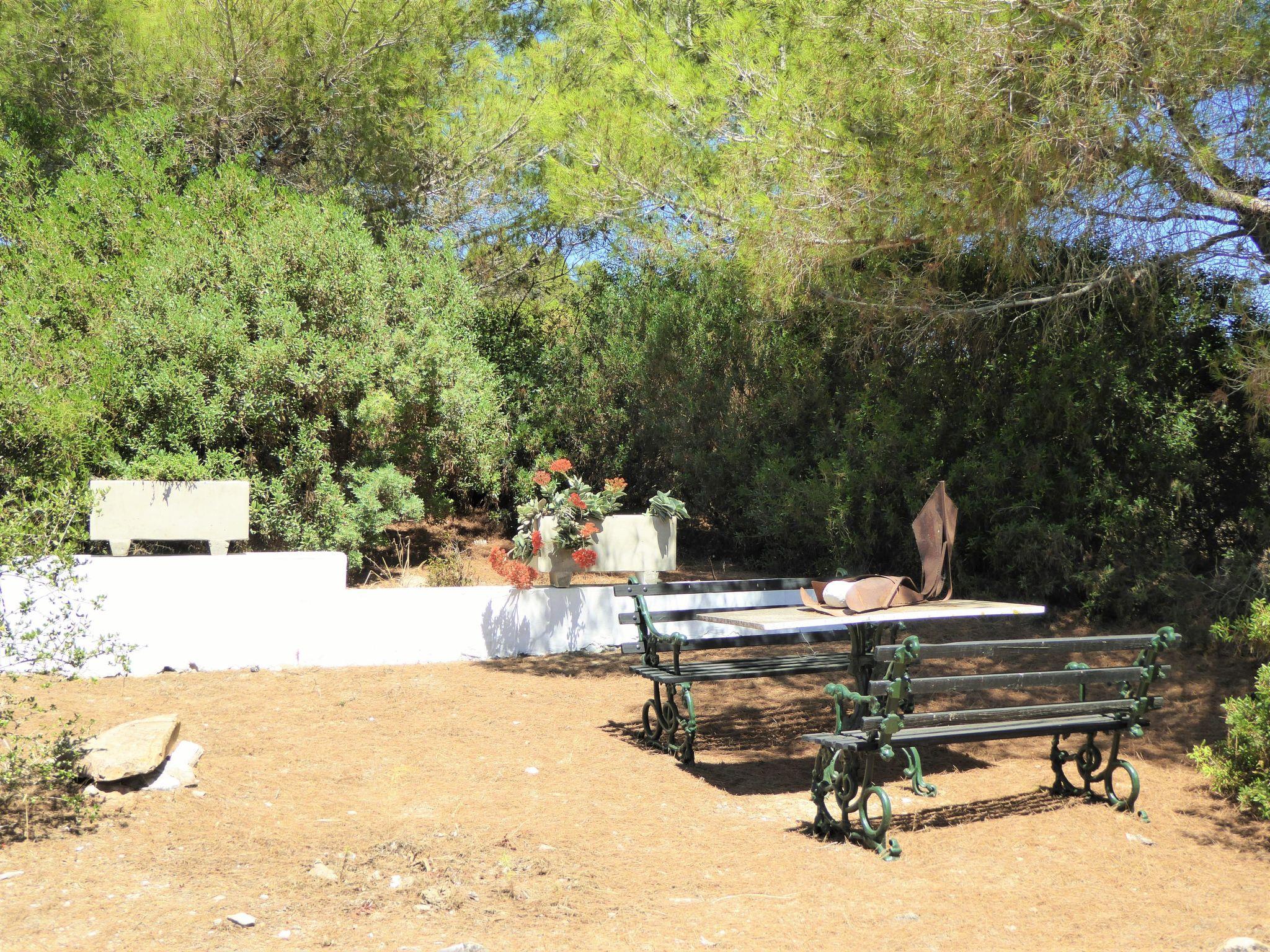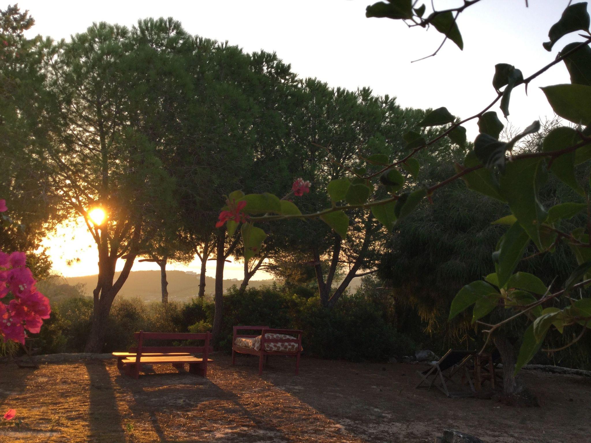 Das Haus befindet sich auf einem Grundstück mit mediterraner Macchia. Zur Entspannung gibt es einen Aufenthaltsraum mit fünf Hängematten unter den Aleppo-Kiefern. Die Gäste können unter den Bäumen parken. Im Außenbereich finden Sie eine Gartenlaube, Steintische, einen Holzofen, einen Grill und Bänke in einer landschaftlich reizvollen Umgebung. Außerdem gibt es ein mit Fresken versehenes Bad mit zwei Warmwasserduschen.