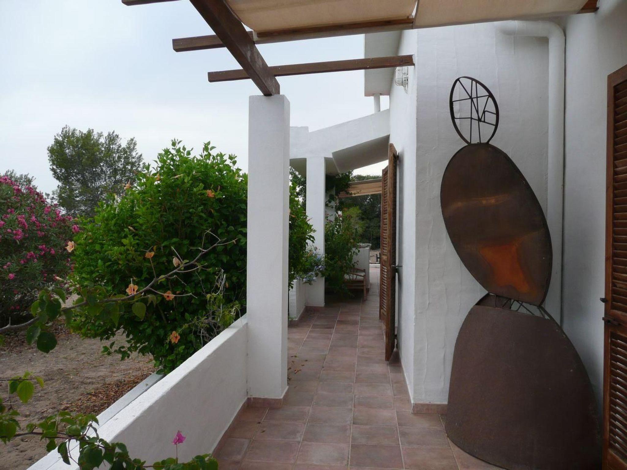Die Villa ist in zwei Etagen aufgeteilt. Im Erdgeschoss befindet sich ein großes Wohnzimmer mit Sofas (10 Sitzplätze), einem Kamin, einem Flachbild-Satellitenfernseher und einem Kühlschrank mit Gefrierfach. Vom Wohnzimmer aus gelangt man in eine kleine Küche mit Gasherd und Backofen, Mikrowelle, Kaffeemaschine und einer Spüle mit zwei Waschbecken und natürlich Schränken mit Tellern, Besteck und Gläsern. Von der Küche aus gelangt man direkt auf die Terrasse, wo ein großer Esstisch mit 10 Plätzen steht. Ebenfalls im Erdgeschoss befindet sich ein Schlafzimmer mit zwei Einzelbetten (80x190 cm), die auf Wunsch zu einem Doppelbett zusammengestellt werden können, einem Einbauschrank und einem direkten Ausgang auf die Terrasse. Ein weiteres, kleineres Schlafzimmer mit zwei Einzelbetten (80x190 cm), die auf Wunsch zu einem Doppelbett zusammengestellt werden können, einem Einbauschrank und einem Fenster. Vor den beiden Zimmern befindet sich ein Badezimmer mit Toilette, Bidet, Dusche und Waschbecken. Eine Treppe führt vom Wohnzimmer zum Dachboden. Hier gibt es ein Einzelbett (80x190 cm), eine Waschmaschine und Zugang zu einem kompletten Badezimmer. Eine Tür führt zu einem großen Dachboden mit drei Einzelbetten, die nach Belieben kombiniert werden können, einem Schrank am Boden und zwei Fenstern. Vom Dachboden aus hat man Zugang zu einer Terrasse, die zum Garten hinunterführt. Die drei Schlafzimmer sind mit Klimaanlagen ausgestattet. In einem kleinen Abstellraum neben dem Haus befinden sich ein weiterer Kühlschrank, eine kleine Gefriertruhe und eine Spülmaschine. Außerdem gibt es in unmittelbarer Nähe des Hauses einen drahtlosen Internetzugang.