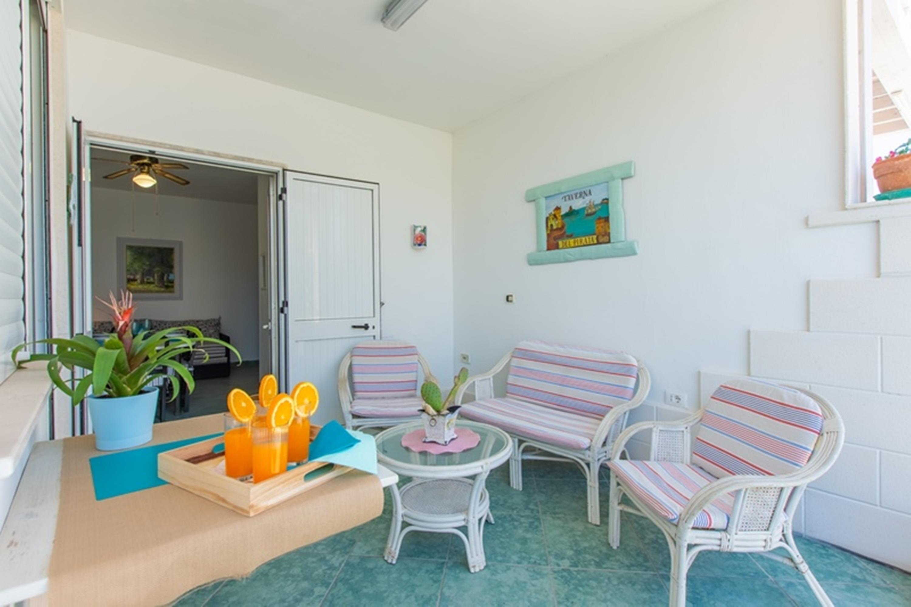 Es befindet sich im Erdgeschoss und besteht aus einer Küche mit direktem Zugang zur Veranda, einem Wohnzimmer, zwei Doppelzimmern und einem Schlafsofa im Wohnzimmer, einem Badezimmer mit Dusche und einem zweiten und komfortablen Badezimmer mit Außendusche.
