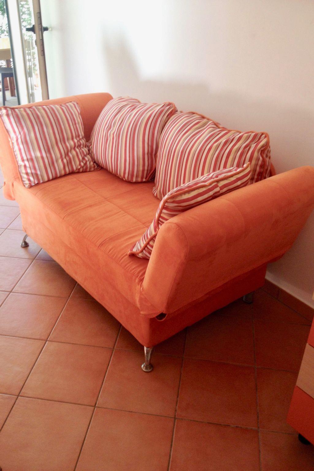 Das Innere der Wohnung hat eine Fläche von 32 Quadratmetern. Sie ist sorgfältig eingerichtet, um einen komfortablen Aufenthalt zu gewährleisten. Das Schlafzimmer mit Doppelbett ist gemütlich und hell, und im Wohnzimmer gibt es ein Schlafsofa für einen dritten Gast.
