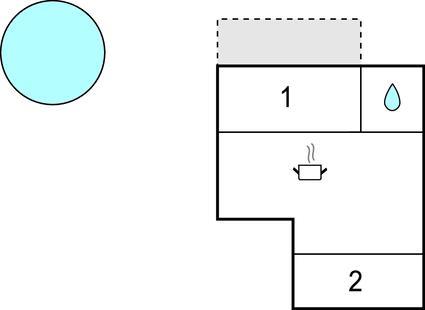Badezimmer 6m2 (nr. 1) - WC. Warmes und kaltes Wasser. Dusche