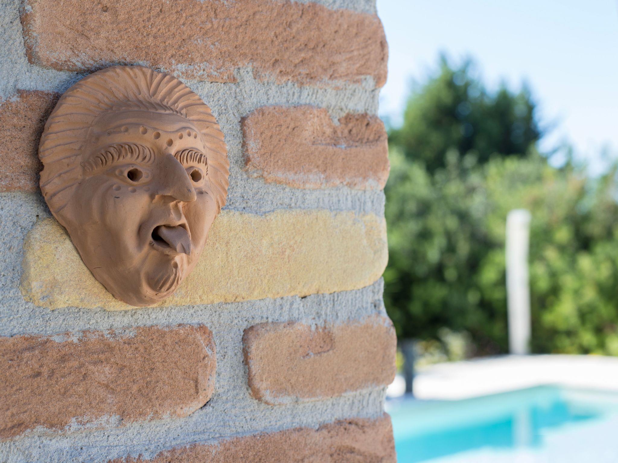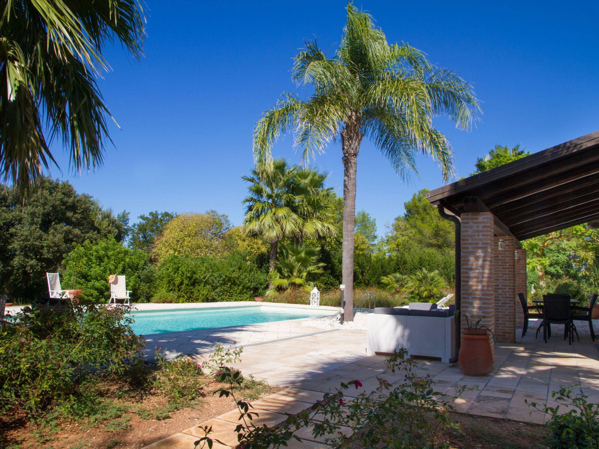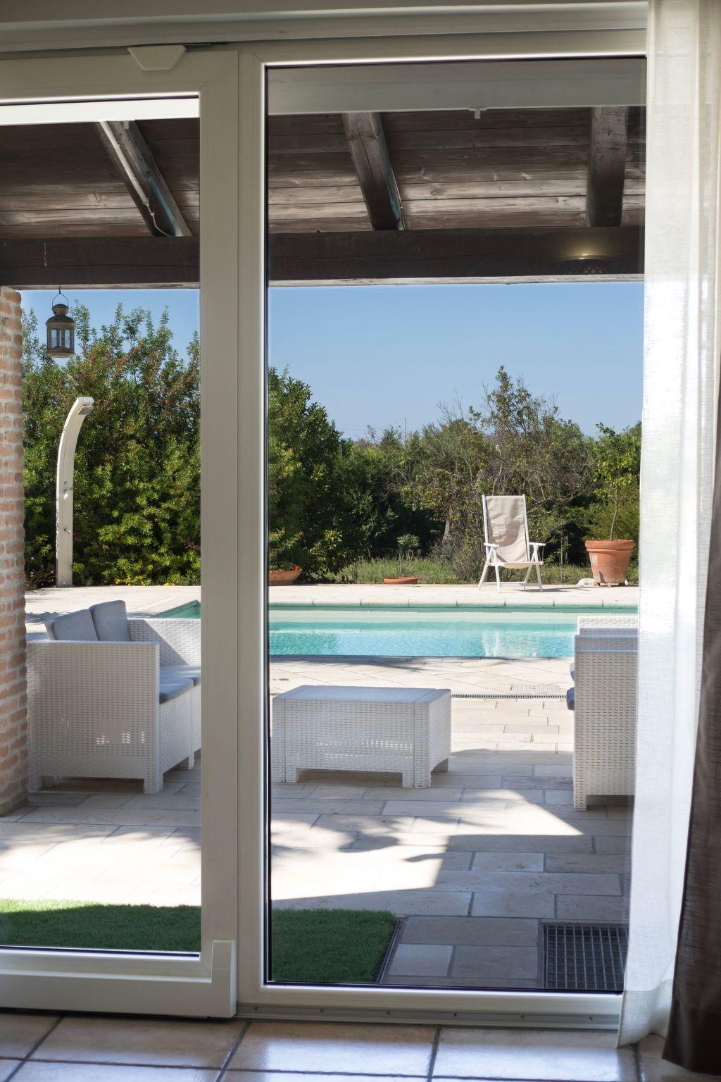 Die komplett eingezäunte Anlage umfasst einen Pinienwald mit Parkplatz, einen Obstgarten, ein Reservat mit Bäumen und Pflanzen verschiedenster Arten, die den Gästen einen gesunden und erholsamen Aufenthalt im Grünen bieten. Das chlorfreie Salzwasserschwimmbad (5 x 12 m) steht ausschließlich den Gästen zur Verfügung. Es ist mit bequemen Liegestühlen ausgestattet, auf denen man sich herrlich entspannen kann. Er wird im Juni geöffnet und im Oktober geschlossen. Ein Teil des Gartens ist für einen Grill mit Steinofen ausgestattet. Für Ausflüge und Wanderungen in der nahen Umgebung können Sie die beiden Fahrräder benutzen, die zur Villa gehören. Es gibt einen großen Parkplatz für Autos am Rande des Pinienwaldes.
