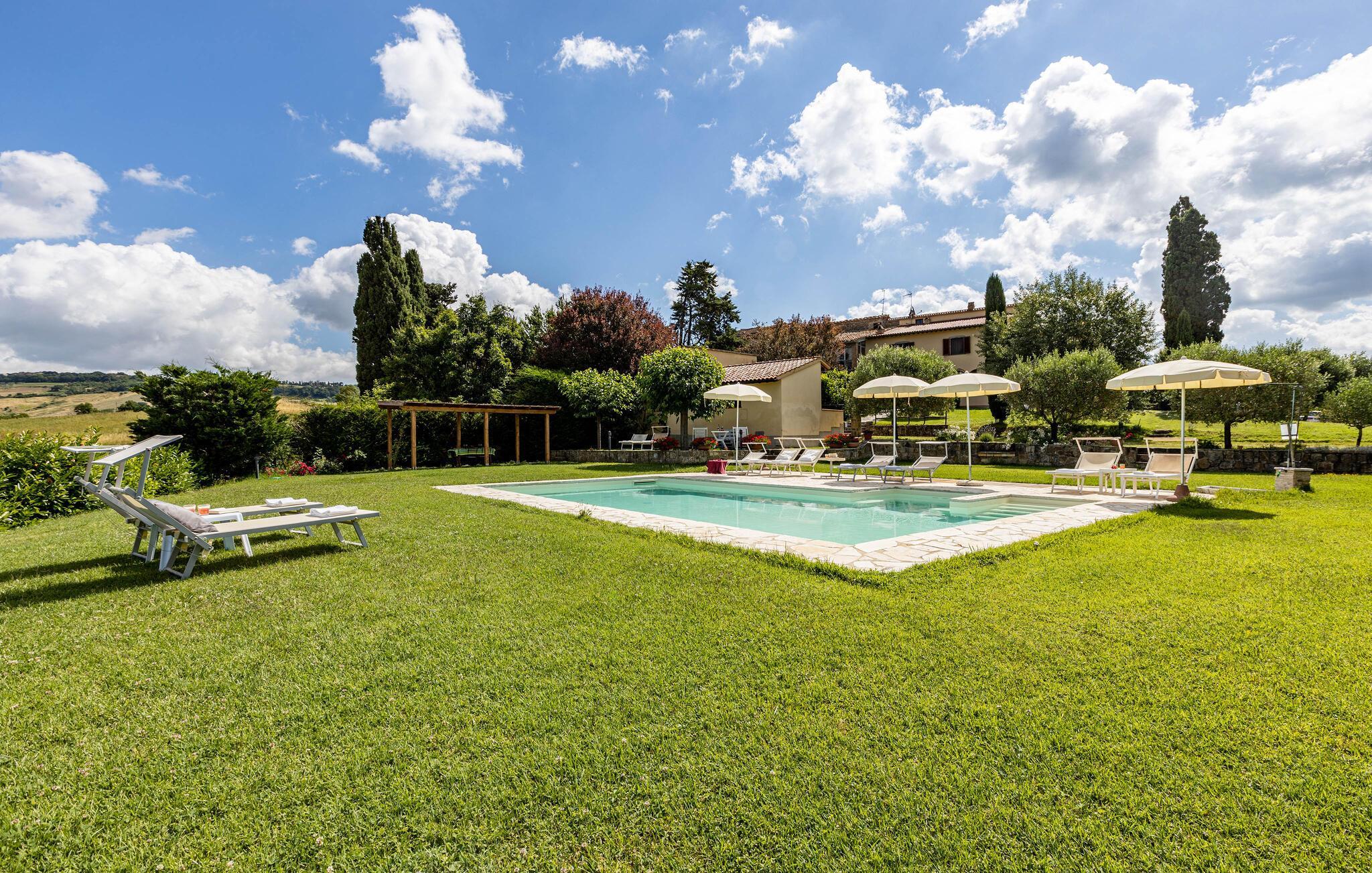 Schönes Ferien-Reihenhaus in einem Bauernhaus in drei Einheiten unterteilt, mit Gemeinschaftspool, in der grünen Landschaft in der Nähe von Casole d'Elsa und nur etwa 1 km von seinem historischen Zentrum gelegen. Casole d'Elsa ist eine kleine Stadt in der Provinz Siena, berühmt für ihren Palio Pferderennen im Juli, sowie für die zahlreichen kulturellen Initiativen, die im Sommer stattfinden, wie die traditionelle Messe "Festa del Borgo Nero", das Food Festival "Steak in Der Platz ", wo Sie Ihr bevorzugtes Fleisch von den Metzgern des historischen Zentrums kaufen können und es von lokalen Experten zubereitet haben. Oder auch das Gitarrenfestival, das alljährlich die berühmtesten Gitarristen Italiens beherbergt. Die Ferienwohnung ist auf zwei Ebenen aufgeteilt und verfügt über zwei große ausgestattete Terrassen, auf denen Sie im Freien essen und dabei die spektakuläre Aussicht auf die umliegende Landschaft bewundern können. Der Außenbereich und Gemeinschaftspool erwarten Sie nach einem Tag in den nahe gelegenen Städten Siena (40 km), Florenz (60 km), Colle di Val d'Elsa (10 km), die Kristallstadt San Gimignano (25) km und Volterra die Stadt Alabaster bei 24 km. Die Strände von Cecina und Follonica sind ca. eine Autostunde entfernt. Es ist möglich, zwei Zusatzbetten auf Anfrage zu bestellen (gegen Bezahlung vor Ort). Im gleichen Gebäude befindet sich auch ITS309.