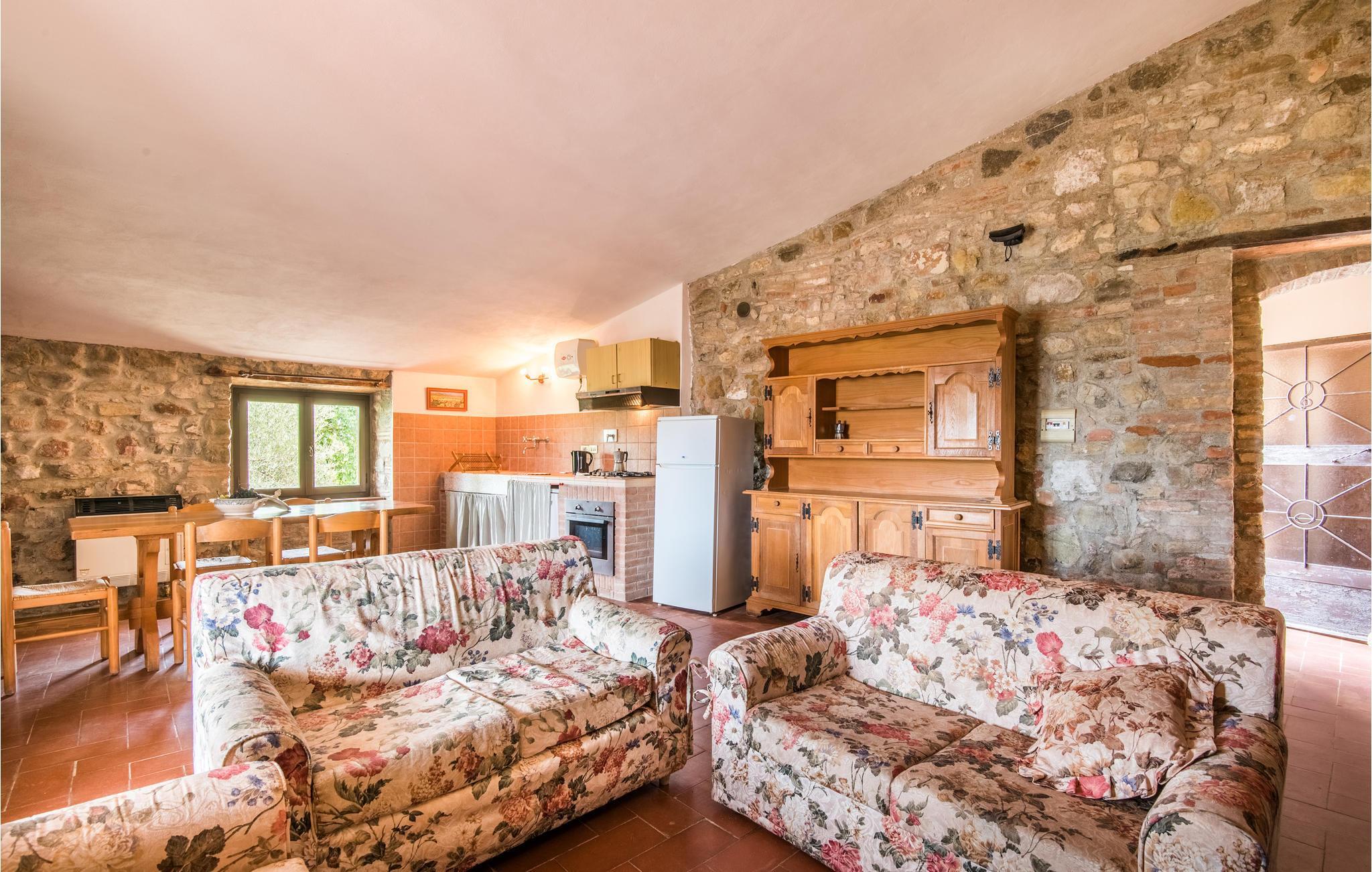 In weiter und ruhiger Hügellandschaft liegt dieser Gutshof. Im Hauptgebäude (1. St.) befinden sich 4 großzügige Ferienwohnungen (insgesamt 6. Siehe auch ITS161-162-163.). Der parkähnliche Garten bietet verschiedene Sitzplätze im Schatten alter Bäume. Ein kleiner Spielplatz und Tischtennis stehen allen Gästen gemeinsam zur Verfügung, ebenso wie der sonnige Pool mit seinen Panorama-Terrassen. Der richtige Ort für Gäste, die sich in erster Linie in Ruhe ausspannen möchten und vielleicht bei einem guten Gläschen Wein den Sonnenuntergang genießen möchten. Für Kinder gleichzeitig ein ideales Gelände zum Spielen und zum Erkunden der üppigen Natur des Landes. Doch es locken ebenso verschiedene reizvolle Städte der Umgebung wie Siena, San Gimignano oder Volterra. Kinderbett auf Anfrage. Unasphaltierte Zufahrt, nicht für niedrige PKW oder Sportwagen geeignet (2 km). Beach Volley Feld zur gemeinschaftlichen Nutzung. Kostenloser WLAN-Empfang in den Gemeinschaftsbereichen, gemeinsame überdachte Terrasse (300 m²).