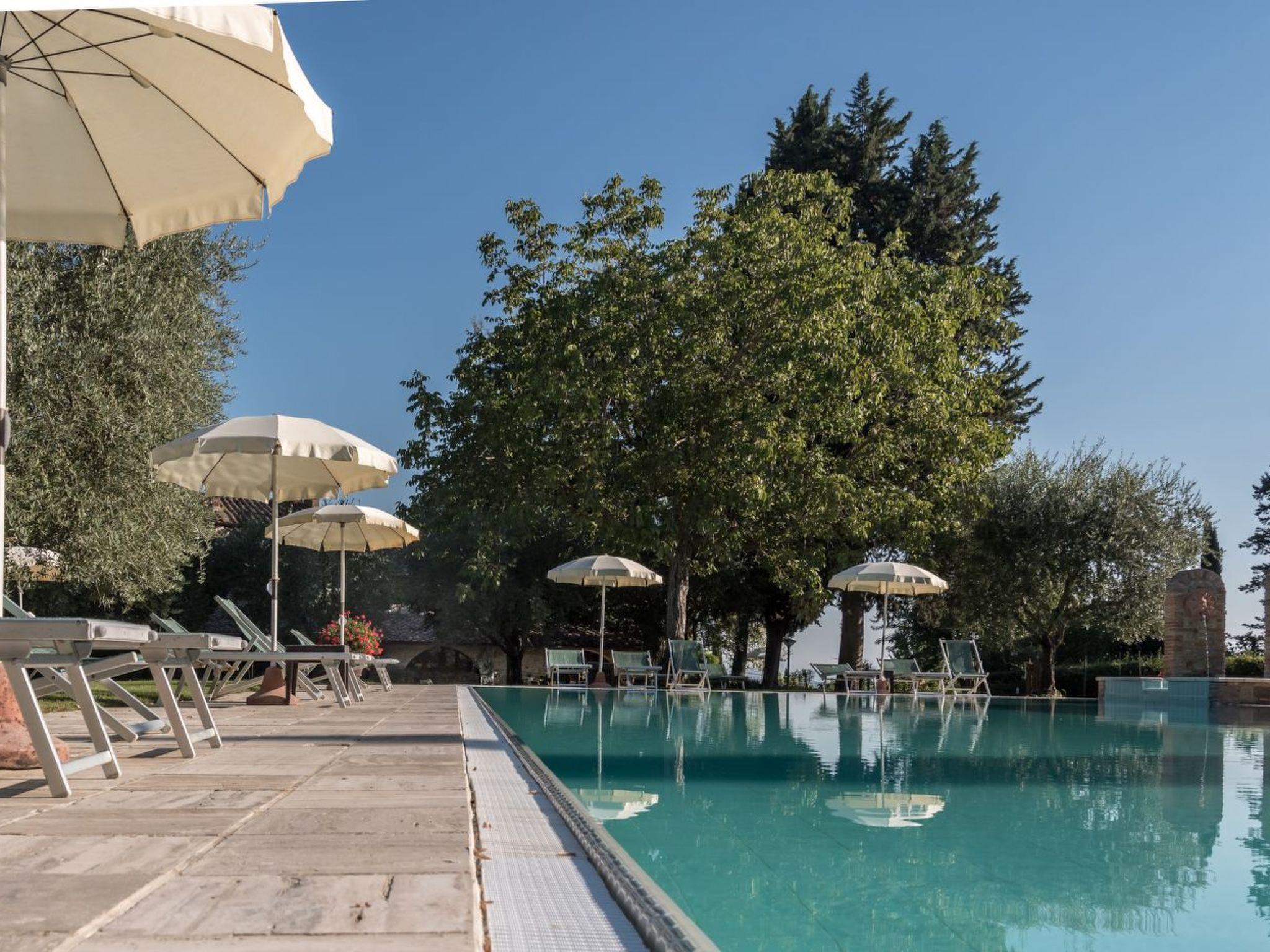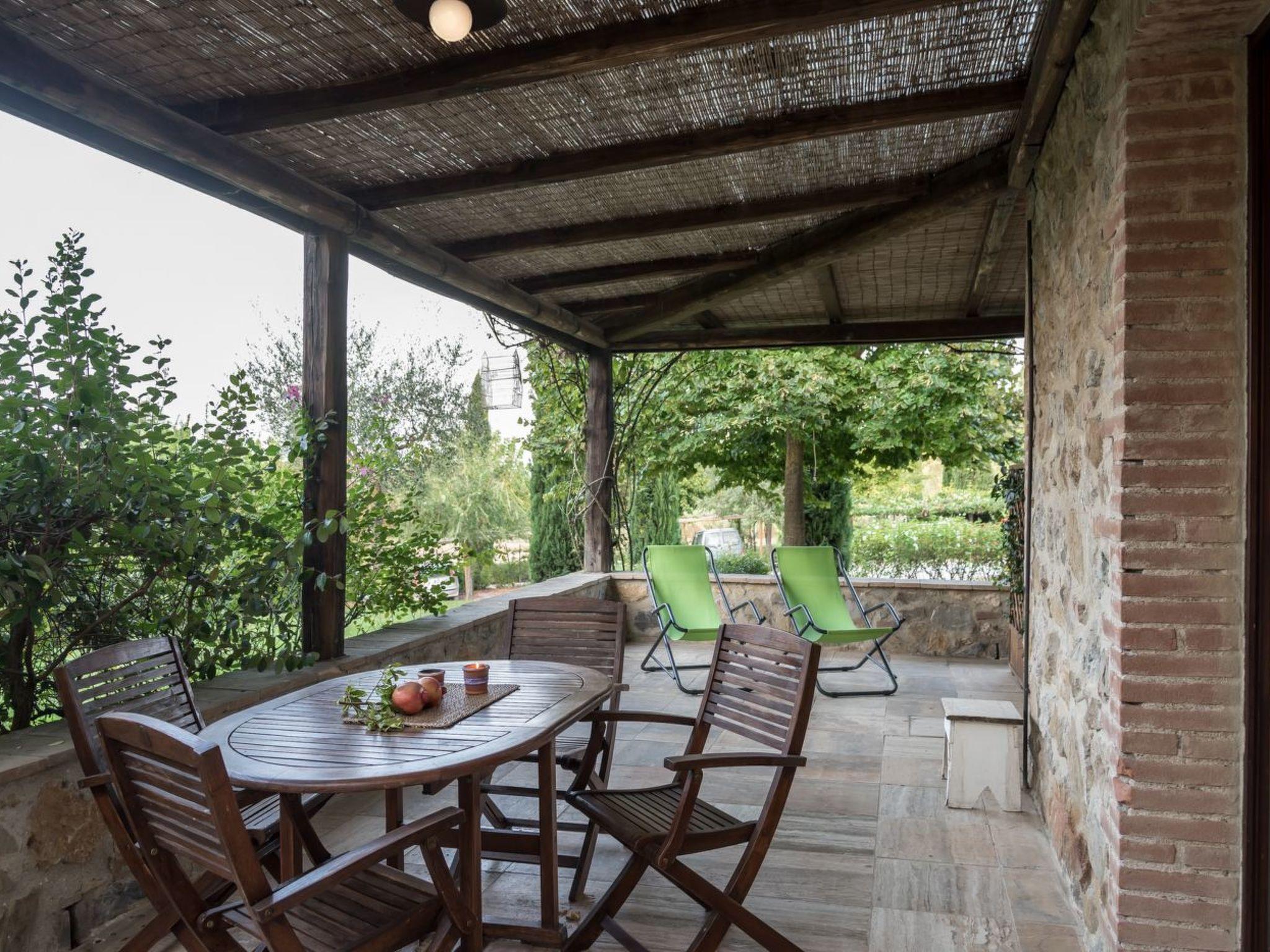 Die Wohnung verfügt über eine private Terrasse, die mit Tisch und Stühlen ausgestattet ist und als Erweiterung des Hauses im Freien dient. Hier können die Gäste im Freien essen, ein Buch lesen oder einfach an der frischen Luft entspannen. Das Anwesen verfügt auch über einen großzügigen Gemeinschaftspool, der von einer idyllischen Landschaft umgeben ist und an heißen Sommertagen zum Sonnenbaden oder zu einem erfrischenden Bad einlädt.