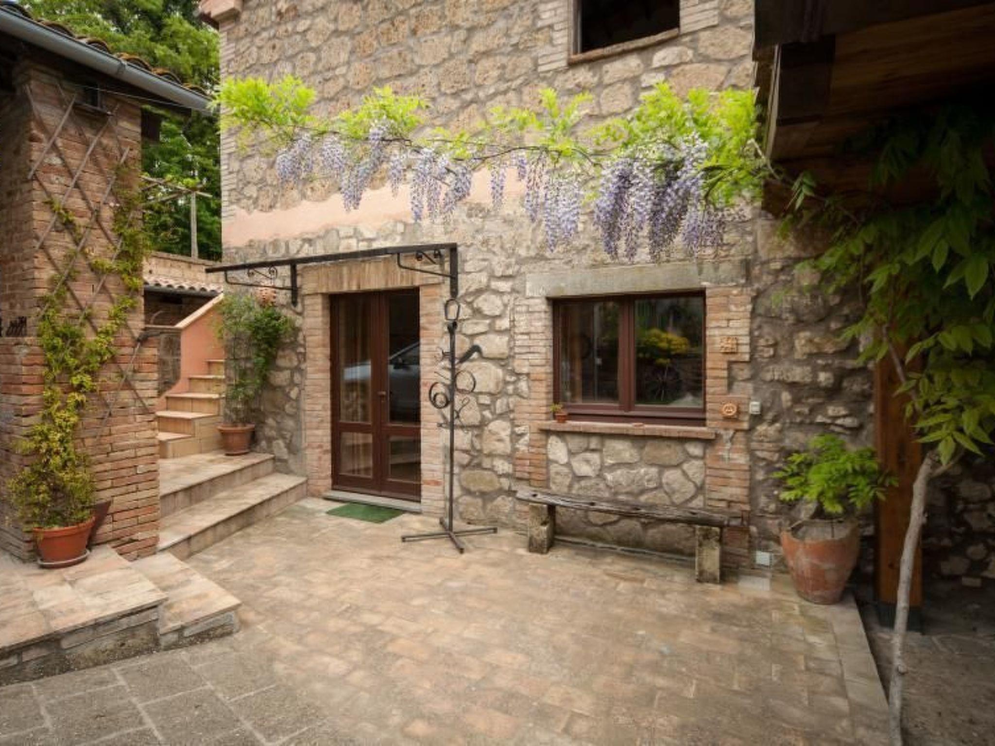 Wir haben zwei liebevoll restaurierte Ferienwohnungen, architektonisch ins Haus integriert, mit separaten Eingängen. Sie sind ausgestattet mit je 2 Zimmern, Küche und Bad und bieten Platz für jeweils 2 - 4 Personen und ein Loft von ca. 60 m² mit Kochinsel und Badezimmer. Das Haus ist umgeben von verschiedenen Terrassenebenen, drei geräumigen Pergolen, Olivenhainen und schattenspendenden Bäumen. Ringsum Natur und als Besonderheit öffnet sich nach Osten hin der Blick über die hügelige Landschaft des Lazio und auf die grossartige Kulisse von Castiglione in Teverina, 5 km entfernt, auf einem Hügel tronend, im Tibertal. Die Wohnung liegt abseits vom Alltagslärm, aber doch sind wichtige kulturelle Sehenswürdigkeiten und aktive Erholungsmöglichkeiten leicht zu erreichen. Ganz in der Nähe lädt der Bolsener See zum Baden ein, im Umkreis von 50 km gibt es viele pittoreske Städtchen, berühmte Parks, Etruskerausgrabungsstätten, oder die Thermalquellen der Päpste in Viterbo. Rom erreicht man in einer Stunde mit dem Zug, oder man fährt an die Küste der Maremma, um im Meer zu baden. Wer die nähere Umgebung per Rad erkundigen möchte, kann sich bei uns Fahrräder leihen. Wer sich noch keinen festen Plan gemacht hat, wie er seinen Urlaub gestalten möchte, findet Hilfe und Unterstützung bei Maria, die gerne ihr Wissen zur Verfügung stellt, um lohnende Ausflugsziele, gute Esslokale, kulturelle Veranstaltungen etc. zu finden.