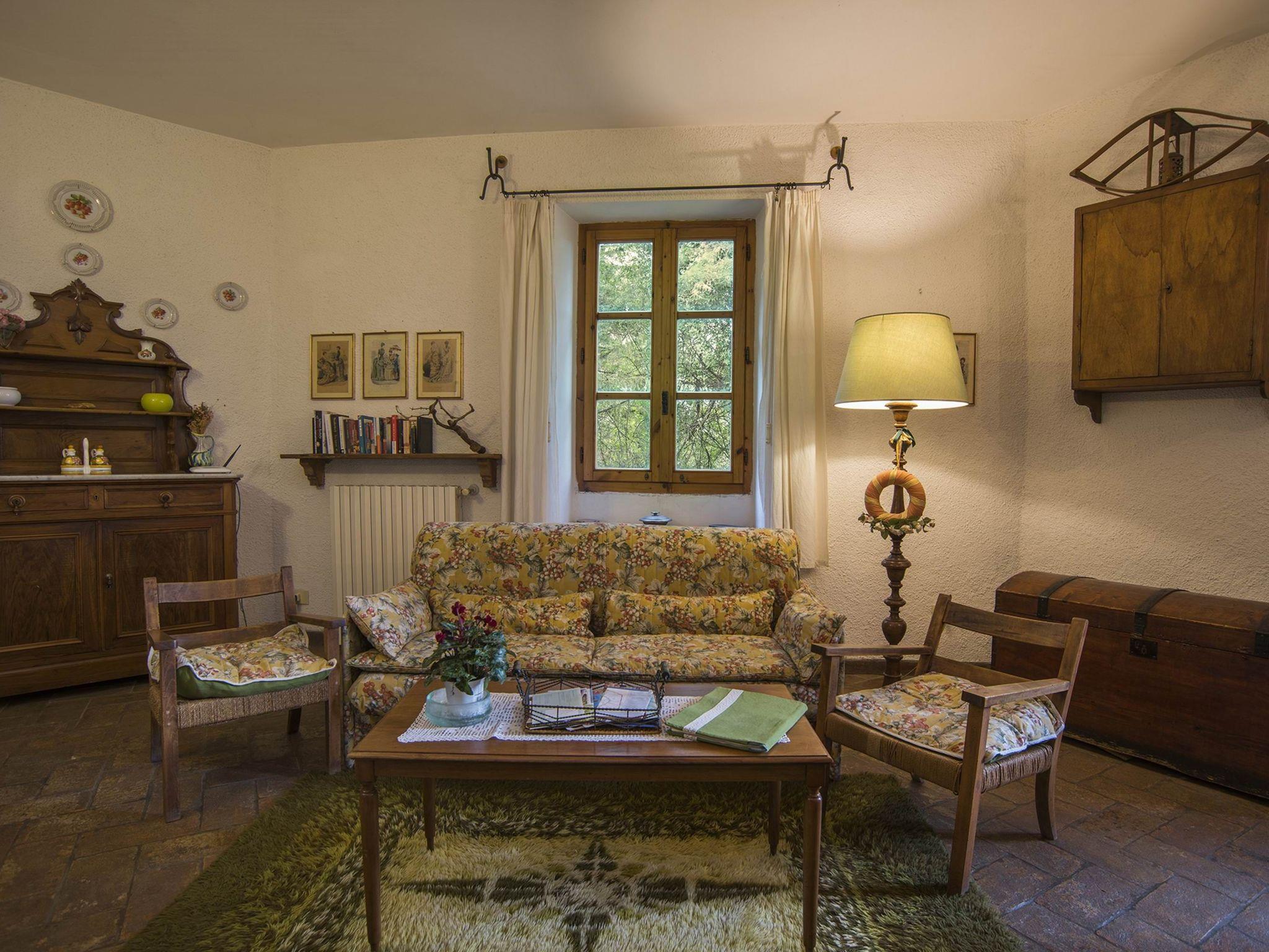 All'Interieur, die'appartamento vanta un'sorgfältige Raumaufteilung mit einem hellen und geräumigen Hauptschlafzimmer, das einen bezaubernden Blick auf die umliegende Landschaft bietet. Die'area giorno è sapientemente suddivisa con una parete a forma di L che separa la cucina, equipaggiata con fornello a gas, forno e frigorifero, dalla zona pranzo e dal soggiorno accogliente con camino e divano letto. La camera da letto matrimoniale con bagno privato e la camera doppia con un ulteriore bagno offrono flessibilità e privacy, rendendolo il rifugio ideale per famiglie o gruppi di amici.
