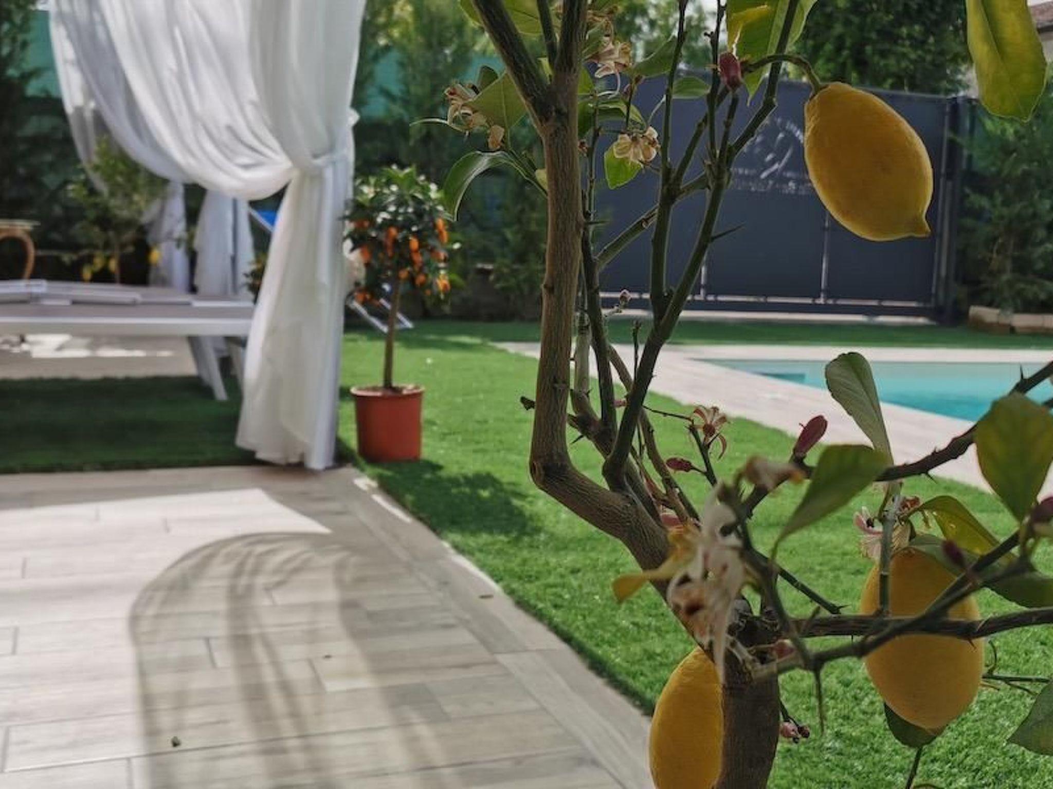 Im Außenbereich lädt der bezaubernde Swimmingpool, umgeben von einem gepflegten Garten mit Grill, zu unvergesslichen Abenden unter dem Sternenhimmel ein. Pergolen und Entspannungsbereiche mit Jacuzzi bereichern die Außenbereiche, die Momente der Entspannung und Intimität in einer atemberaubenden natürlichen Umgebung bieten sollen.