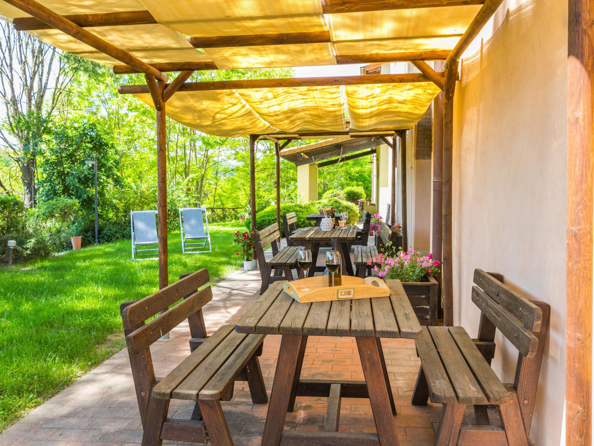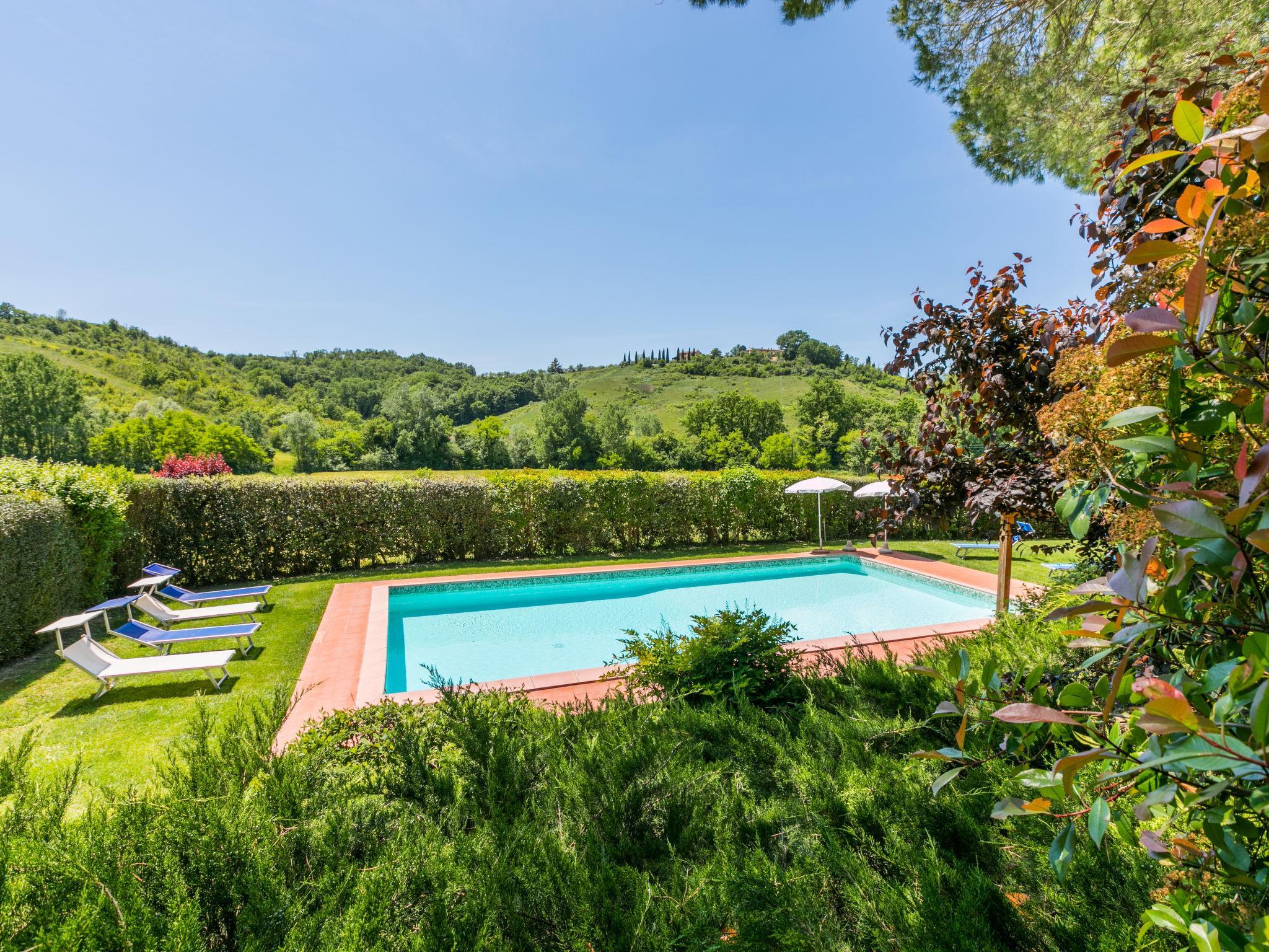 Gemütlicher, freistehender Landsitz "Casolare Bretulla", umgeben von Bäumen und Feldern. 3 Wohnungen im Ferienhaus. 6.5 km vom Zentrum von Castelfiorentino, 8 km vom Zentrum von Certaldo, 30 km vom Zentrum von Firenze, alleinstehende, sonnige Lage. Zur Mitbenutzung: Grundstück 10'000 m2 (eingezäunt), Garten mit Pflanzen und Bäumen, Wiese, Schwimmbad (12 x 6 m, 120 - 150 cm tief, saisonale Verfügbarkeit: 10.Mai. - 05.Okt.). Aussendusche, Grill, Grillhaus, Poolpflege durch den Besitzer/Gärtner. In der Anlage: Wireless LAN, Waschmaschine (extra) (zur Mitbenutzung). 1.2 km lange Zufahrt (Naturweg). Parkplatz (überdacht) auf dem Grundstück. Lebensmittelgeschäft 6 km, Supermarkt 6.5 km, Restaurant 6 km, Fahrradverleih 6.5 km, Bushaltestelle 7 km, Bahnstation "Castelfiorentino" 6.5 km, Sandstrand "Tirrenia" 83 km, Hallenbad 7.5 km, Thermalbad "Gambassi Terme" 16 km. Golfplatz (9 Loch) 23 km, Tennis 7.5 km, Wanderwege ab Haus 100 m. Nahe gelegene Sehenswürdigkeiten: San Gimignano 21 km, Volterra 42 km, Siena 56 km, Pisa 76 km. Bitte beachten: Fahrzeug empfohlen. Geeignet für Familien, Babyausstattung (inkl.). Jugendgruppen nur auf Anfrage. Die Residenz wird durch elektrische Tore geschlossen. Der Besitzer wohnt im selben Haus. Eigentümer hat einen Hund. Alle Häuser/Wohnungen sind individuell eingerichtet. ,Dieses Angebot setzt sich zusammen aus den Wohnungen CTF 170/171.
