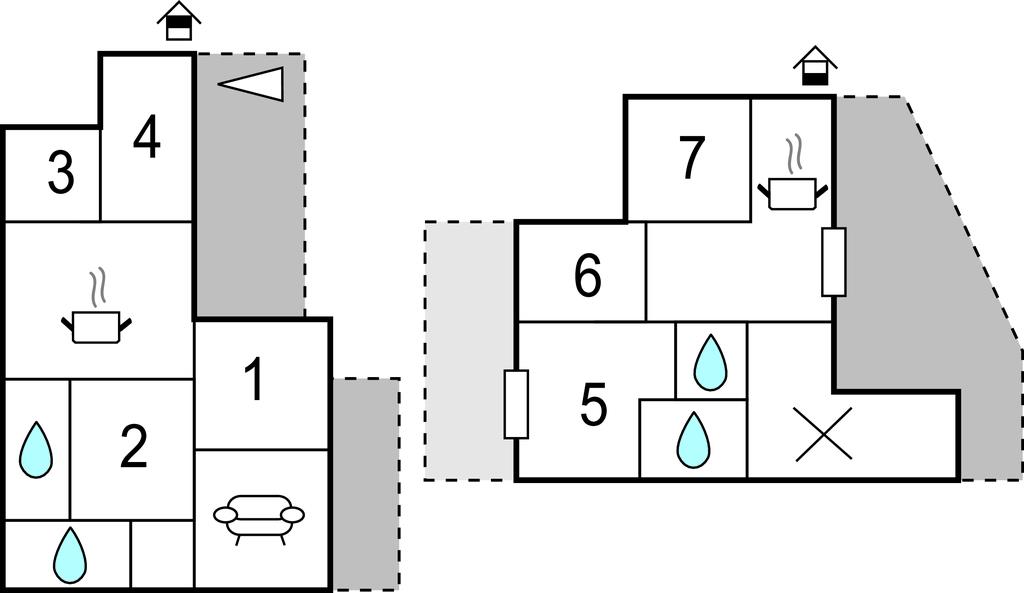 Die Unterkunft besteht aus drei voll ausgestatteten Wohnungen, die nicht intern, sondern über eine Außentreppe miteinander verbunden sind.