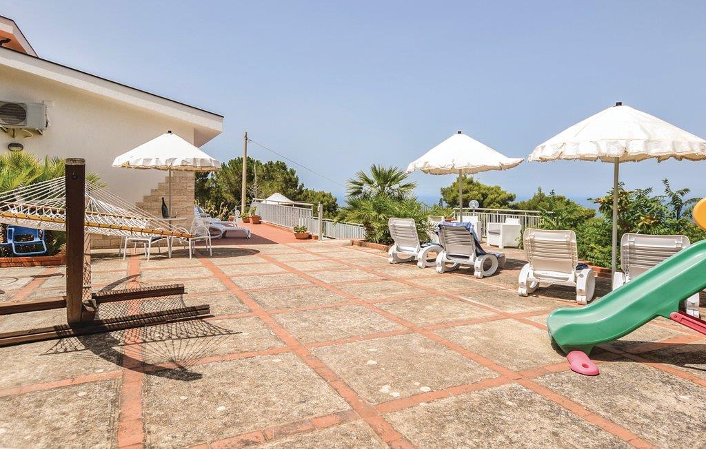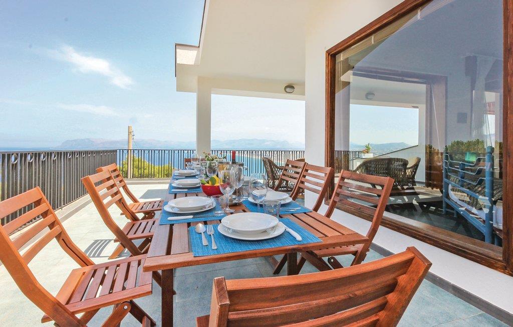 In Castellamare, im Golf von Sizilien, befindet sich dieses unabhängige Ferienhaus mit Pool. Es hat große überdachte Terrassen und Außenbereiche, die für Mahlzeiten im Freien ausgestattet sind. Hier kann man die heißen Tage im kühlen Schatten angenehm verbringen. Das Haus ist der ideale Ort für Liebhaber des Meeres, die von hier aus gut die vielen Strände der Umgebung besuchen können, die für ihre smaragdgrüne Farbe berühmt sind. Empfehlenswert ist ein Besuch der „Riserva dello Zingaro“ (etwa 10 km), der älteste Naturpark Siziliens mit einem 7 km langen Abschnitt des Küstenweges, der von Castellamare del Golfo nach San Vito lo Capo führt. Im Naturpark kann man die großartige Grotte von Uzzo besuchen, eine der ersten prähistorischen Siedlungen Siziliens. In etwa 8 km Entfernung erwartet Sie eine Thermalanlage. Sehenswert ist das Fischersdorf Scopello mit seinen typischen Leuchttürmen. Kulturelle Sehenswürdigkeiten wie die Burg der Normannen, die Kirche „Madre Chiesa“ und die Kirche von Sankt Joseph sind ein Muss für Interessierte an Kunst und Geschichte. Es gibt viele Restaurants, wo man die typischen Gerichte der sizilianischen Küche genießen kann.