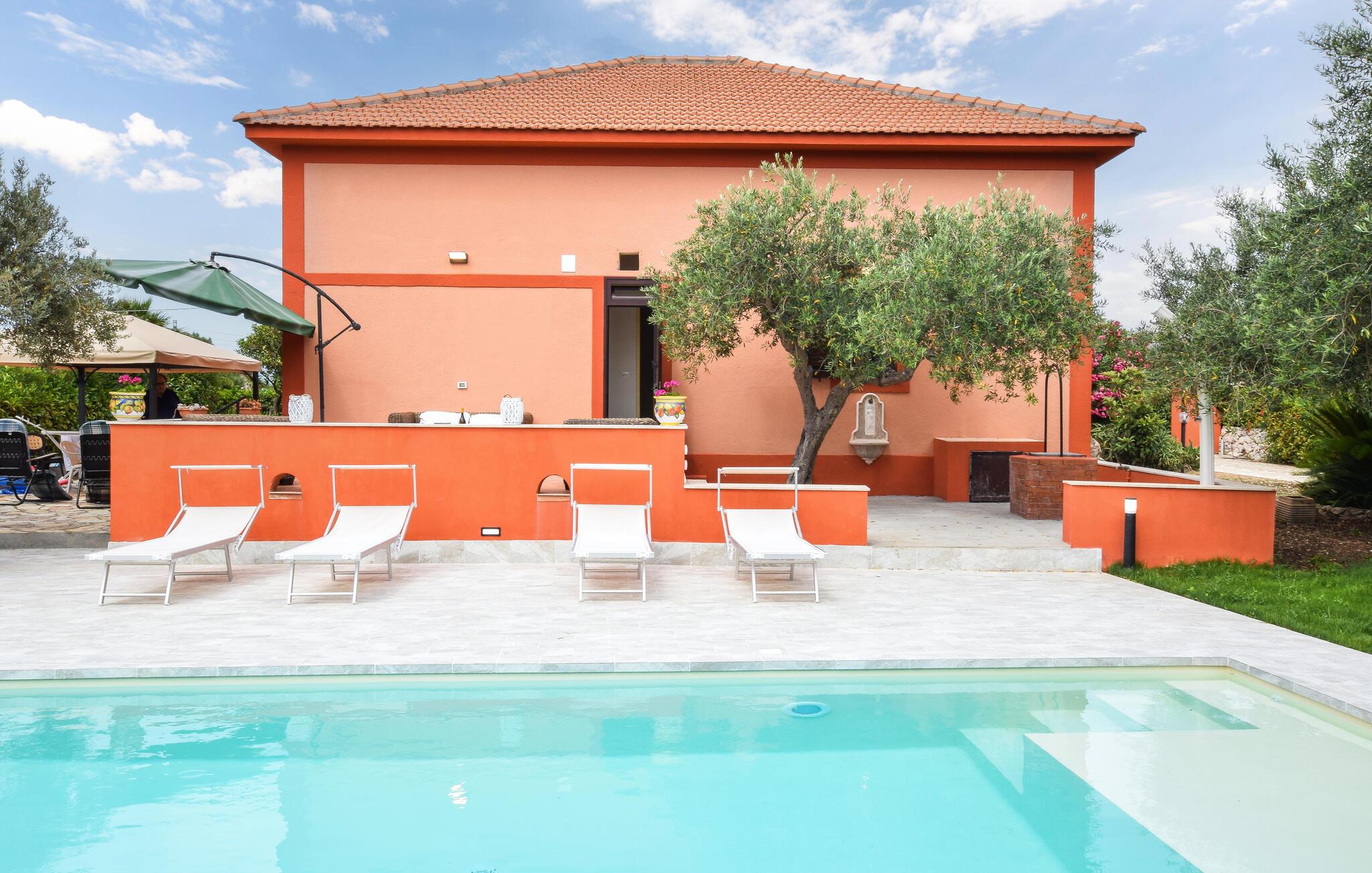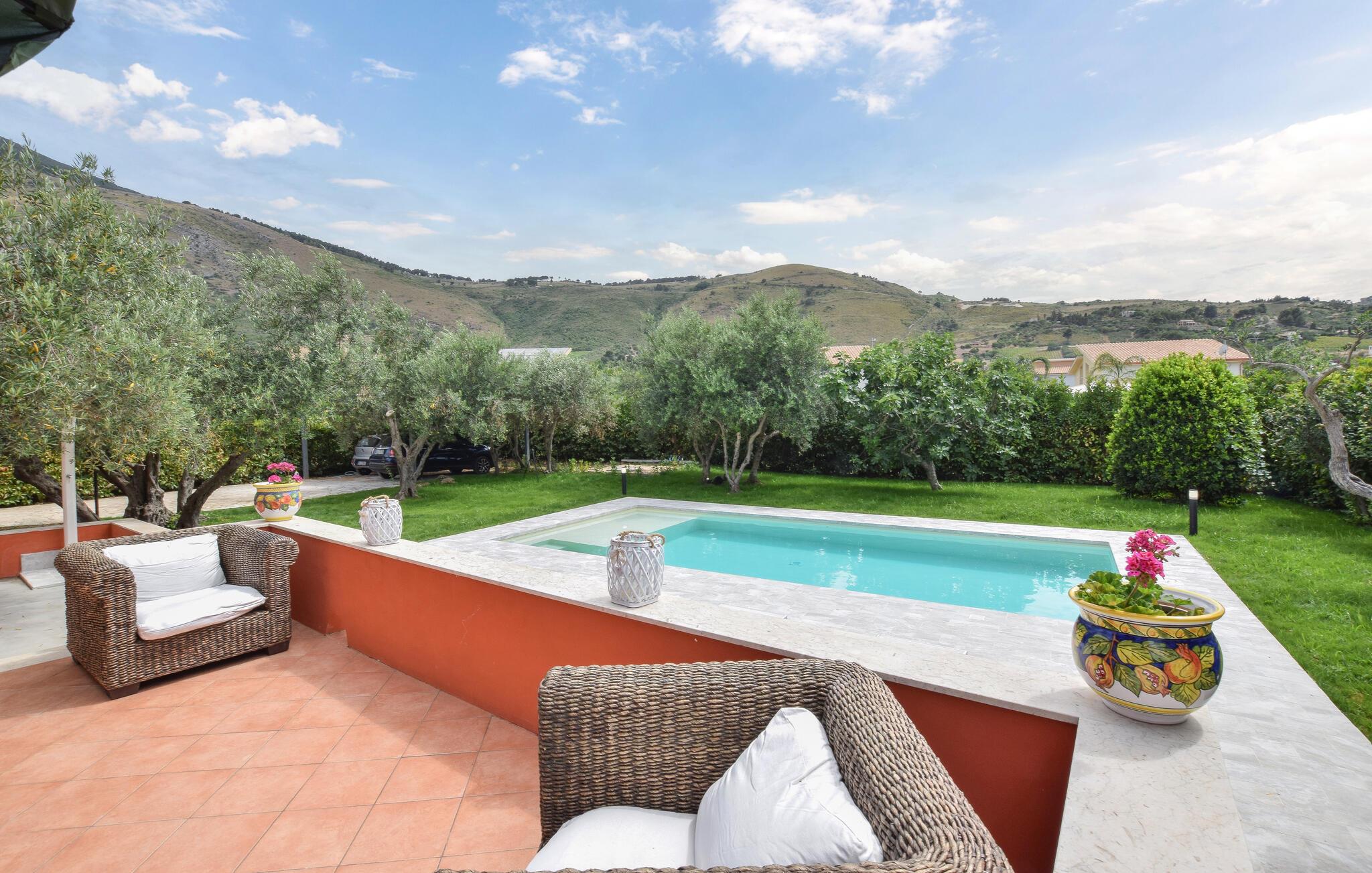 Willkommen in diesem stilvollen Ferienhaus in Castellammare del Golfo – ein Ort, der modernen Luxus und entspannende Atmosphäre vereint. Die geschmackvolle Einrichtung und das stilvolle Design schaffen eine Wohlfühloase. Die lichtdurchfluteten Innenräume bieten Ihnen Komfort und Eleganz, während die Terrassen und der Garten mit privatem Pool zum Verweilen einladen. Genießen Sie sonnige Tage am Swimmingpool oder entspannen Sie bei einem Glas Wein auf der Terrasse. Dieses Ferienhaus ist der perfekte Rückzugsort für erholsame Tage unter der sizilianischen Sonne.