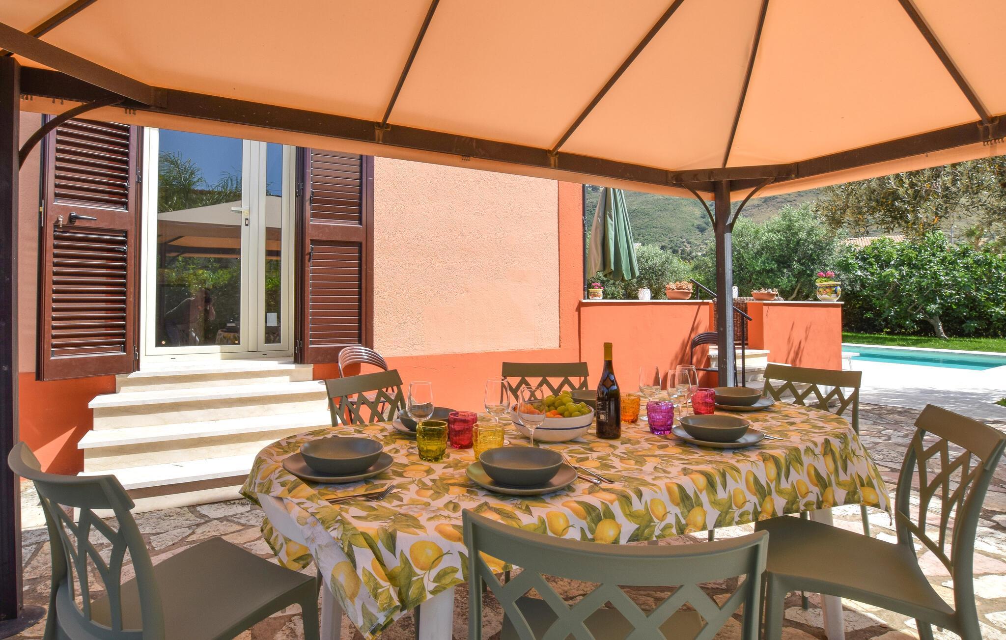 Umgeben von den Hügeln der sizilianischen Nordküste empfängt Sie dieses wunderschöne Ferienhaus mit Swimmingpool.