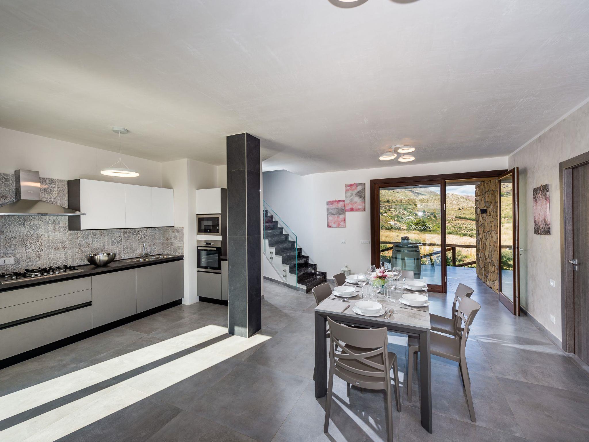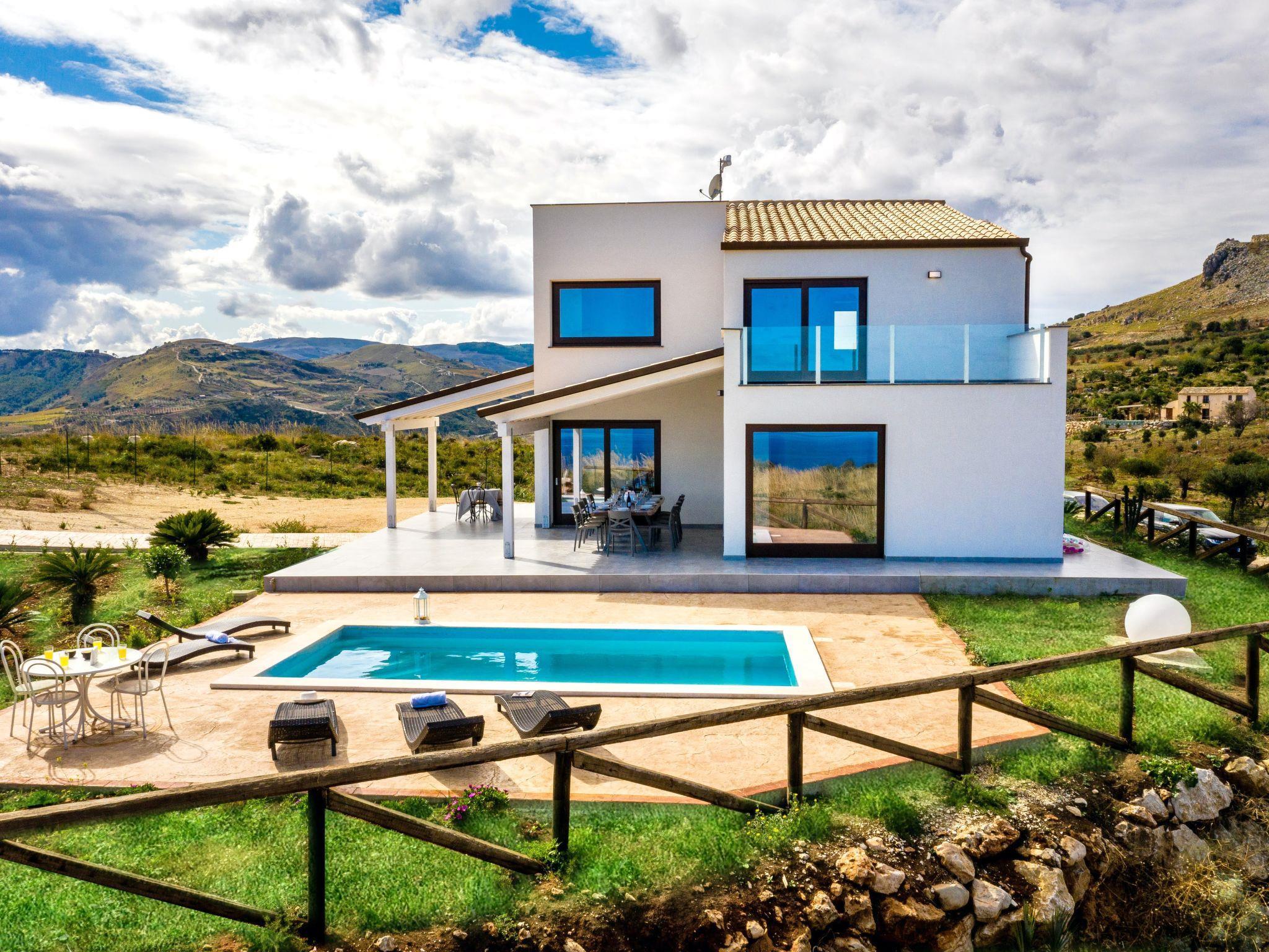 Villa "Rocchi Livreri", Baujahr 2020. Im Weiler Scopello, 8 km vom Zentrum von Castellammare del Golfo, alleinstehende, ruhige, sonnige Lage auf einem Hügel, 5 km vom Meer, Richtung Nordosten. Zur Alleinbenutzung: Grundstück 1'500 m2 (eingezäunt), Schwimmbad (6 x 3 m, 140 cm tief, saisonale Verfügbarkeit: 01.Apr. - 31.Okt.). Aussendusche, Gartenmöbel, Grill, Poolpflege durch den Besitzer/Gärtner. Heizung nur verfügbar von 01.Dez. - 31.Mar.. Parkplatz auf dem Grundstück. Lebensmittelgeschäft 3 km, Supermarkt 7 km, Bar 3 km, Bushaltestelle 13 km, Bahnstation "Castellammare del Golfo" 12 km, Sandstrand "Castellammare del Golfo" 11 km, Steinstrand "Guidaloca" 5 km. Nahe gelegene Sehenswürdigkeiten: Parco Archeologico Segesta 28 km, Trapani Porto Aliscafi per Isole Egadi 35 km, Erice 35 km, San Vito lo Capo 42 km, Saline di Marsala 58 km, Palermo 70 km. Bitte beachten: Fahrzeug empfohlen. Das Anwesen ist mit einem Videoüberwachungssystem ausgestattet.