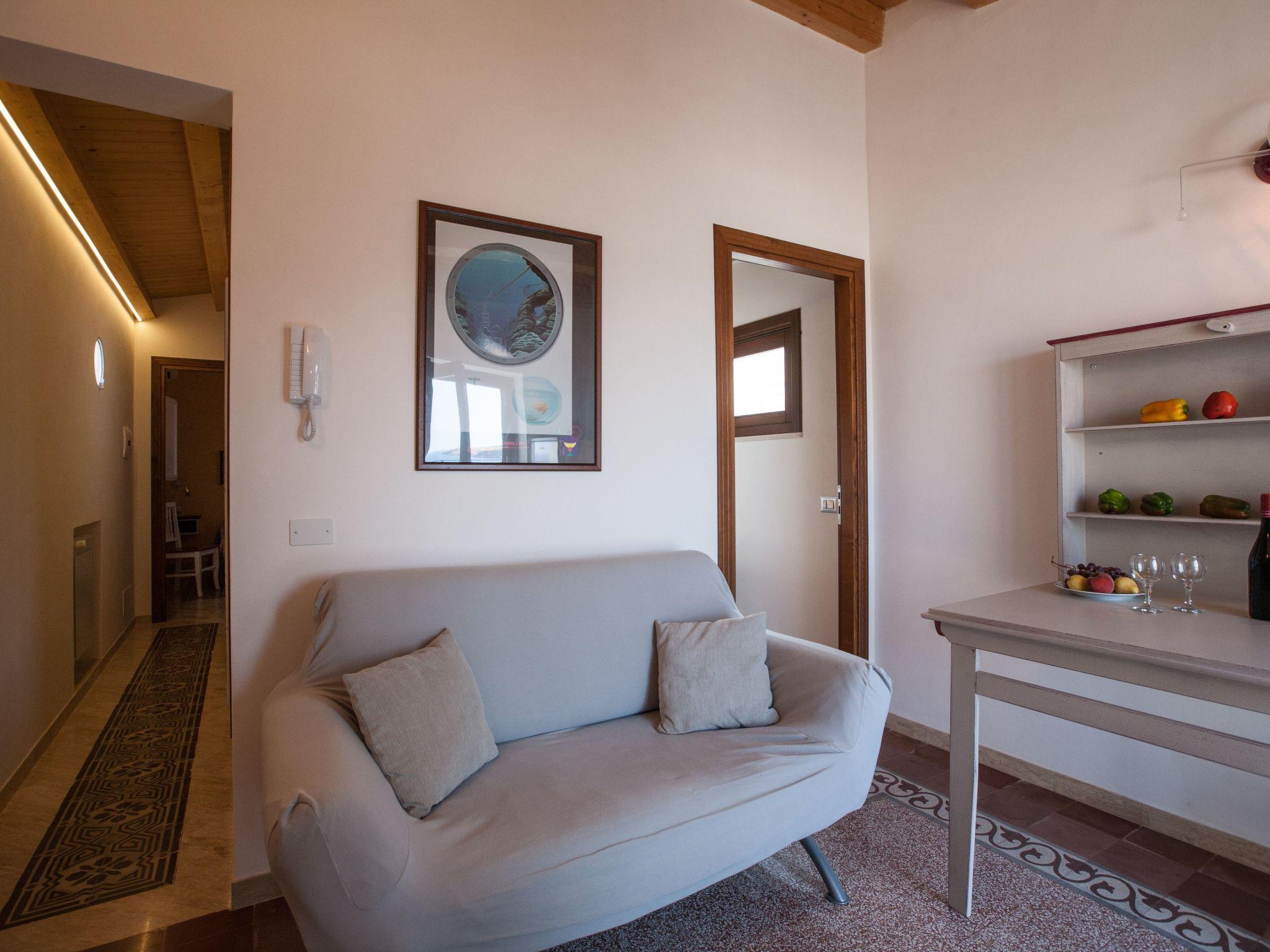 Sie hat eine Wohnfläche von 45 Quadratmetern. In der Standardausführung bietet sie Platz für 2 Personen, zusammen mit einer zweiten Wohnung kann sie bis zu sechs Personen beherbergen. Sie ist mit viel Liebe zum Detail eingerichtet und besteht aus einem Schlafzimmer mit Doppelbett, einem Esszimmer mit LED-Fernseher und Schlafsofa sowie einer Küchenzeile, die mit Geräten wie Kühlschrank, Gefrierschrank, Elektroherd und Zubehör ausgestattet ist. Die Wohnung wird durch ein Badezimmer mit Dusche und eine reizvolle und funktionale Terrasse mit Tisch, Stühlen und Solarium mit Blick auf das Meer ergänzt.