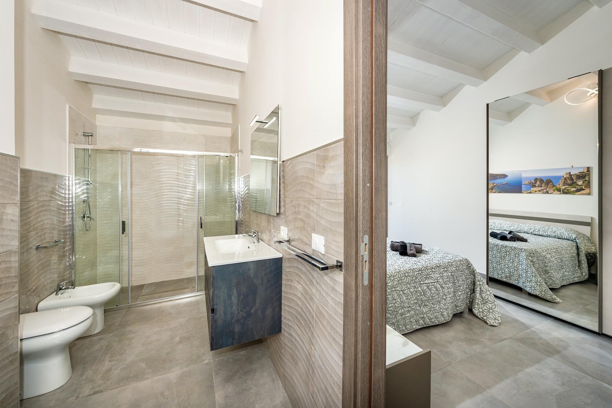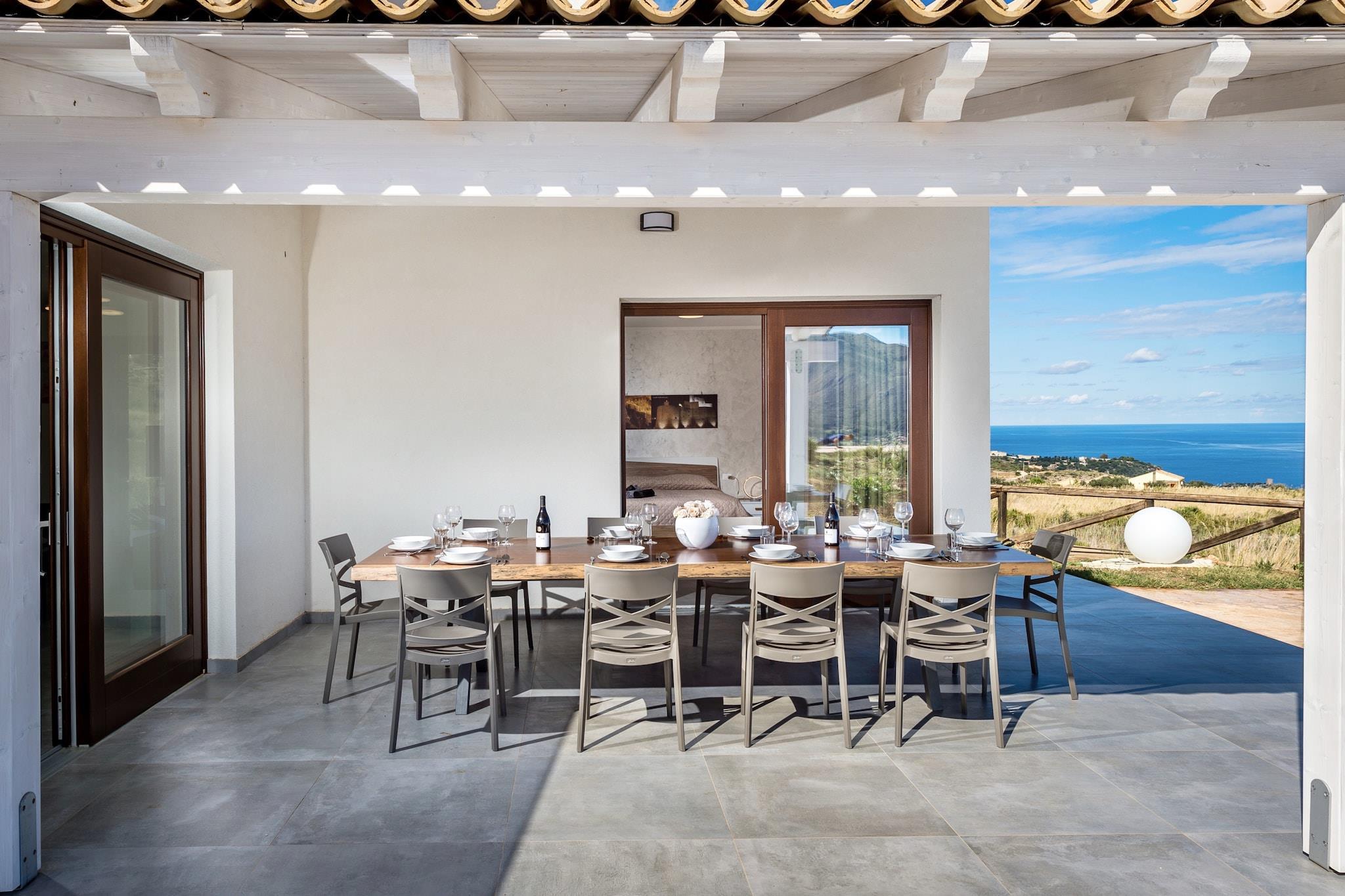 In privilegierter Lage nahe Scopello bietet die Villa Rocchi Livreri einen ruhigen Rückzugsort mit atemberaubendem Blick auf den Golf von Castellammare und die Bucht von Scopello. Diese moderne Villa verfügt über einen großzügigen Wohn- und Essbereich mit einladenden Veranden, die zum Entspannen und Genießen der Küstenlandschaft einladen. Der private Pool und der weitläufige Garten, eingerahmt von natürlichen weißen Felsen, bieten eine idyllische Kulisse zum Entspannen. Die durchdachte Gestaltung mit anspruchsvoller und zugleich schlichter Einrichtung vereint Komfort mit Eleganz und macht sie zu einem ruhigen Rückzugsort für Gäste. Die Villa liegt in einem ausgewiesenen Gebiet von gemeinschaftlicher Bedeutung und besonderem Schutz und ist ein Tor zu Siziliens spektakulären Landschaften. Nur wenige Kilometer entfernt lädt die charmante mittelalterliche Stadt Castellammare del Golfo mit ihrem malerischen Hafen und den lebhaften Märkten zum Erkunden ein. Geschichtsinteressierte werden den antiken Charme des nahegelegenen Erice zu schätzen wissen, während Naturliebhaber die Salinen von Trapani und Marsala besuchen oder Bootsausflüge zu den atemberaubenden Ägadischen Inseln unternehmen können. Auch die griechischen Ausgrabungsstätten von Segesta und Selinunt bieten faszinierende Einblicke in Siziliens reiche Vergangenheit. Die Region rund um die Villa ist für ihre köstliche sizilianische Küche bekannt. Besucher können in Restaurants in Castellammare del Golfo oder Scopello frische Meeresfrüchte und traditionelle Gerichte genießen. Zu den beliebtesten Adressen zählen urige Trattorien entlang der Küste, die Spezialitäten vom Fang des Tages servieren, und rustikale Lokale, in denen Sie lokale Weine zusammen mit herzhaften sizilianischen Gerichten genießen können.