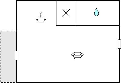 Wohnraum/Küche 35m2 - 2 Schlafmöglichkeiten. (Doppelbett(en)). 2 Schlafmöglichkeiten. (Schlafsofa,Matratze,Sonstiges).